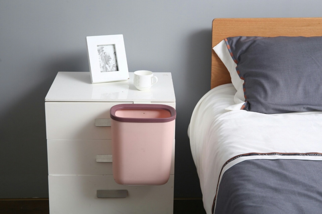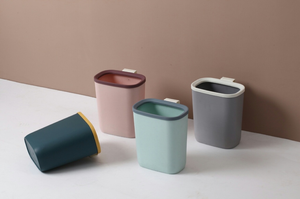 J06 - 6310 simple cocina pared colgante bote de basura Gabinete puerta colgante cubo de plástico sin tapa junto a la cama cubo de almacenamiento