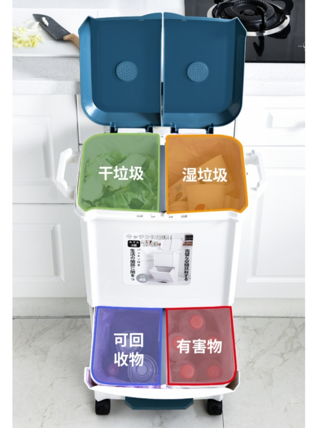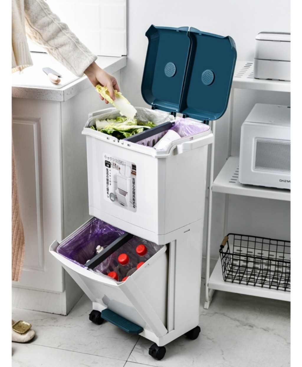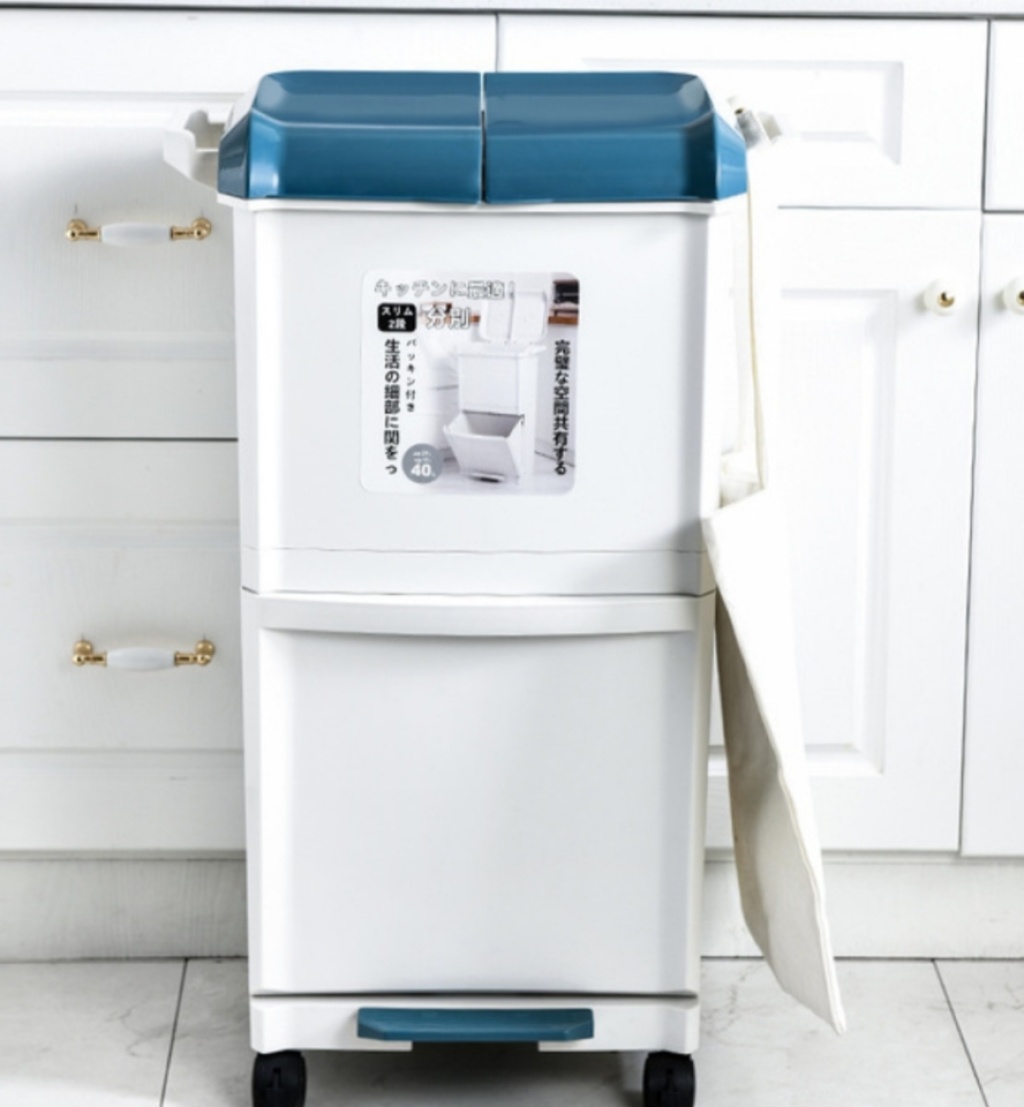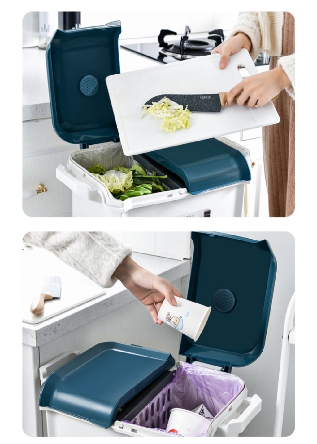 Y59 - 1012 cocina japonesa de doble capa con tapa de bote de basura clasificación grande contenedor de basura con poleas cubo de plástico doméstico