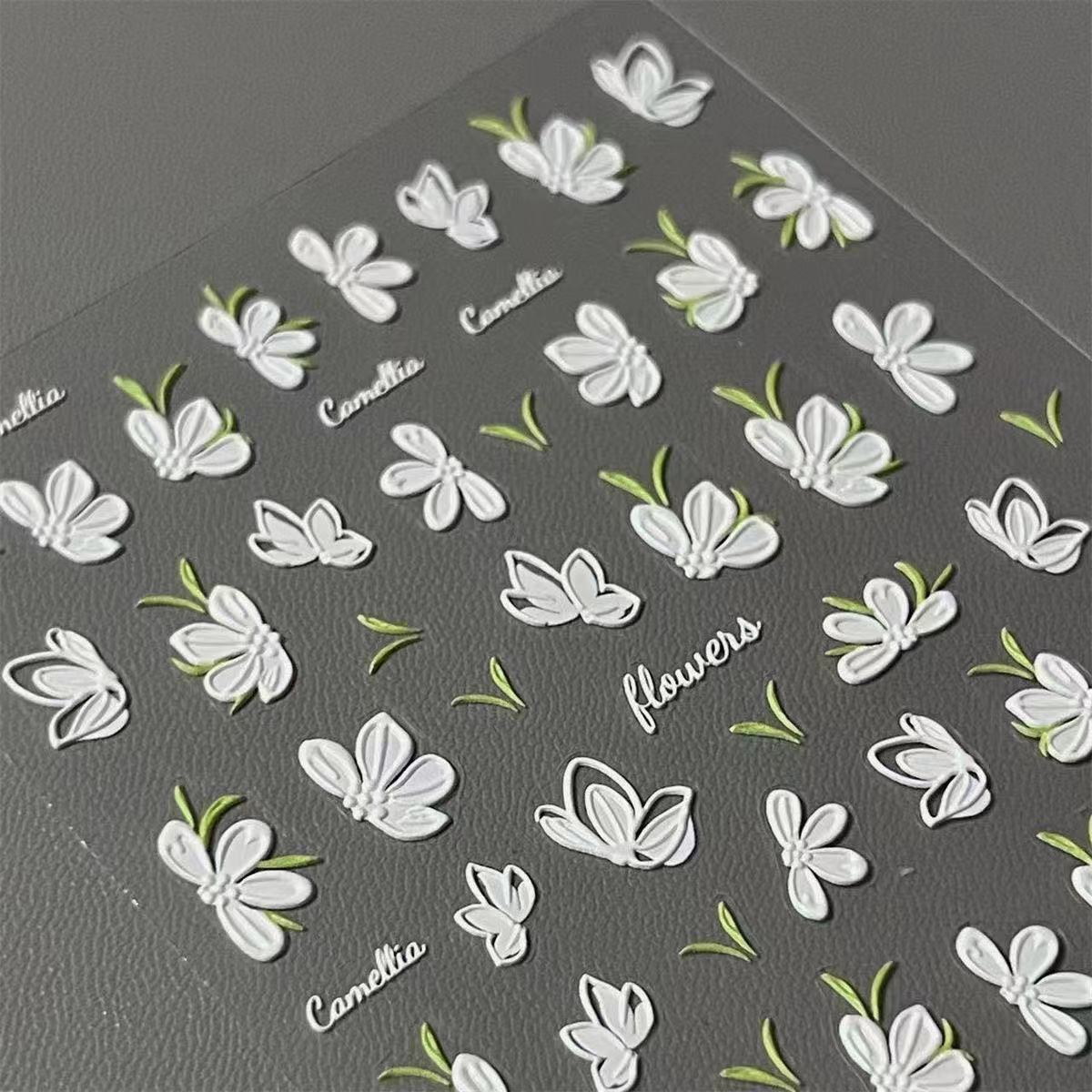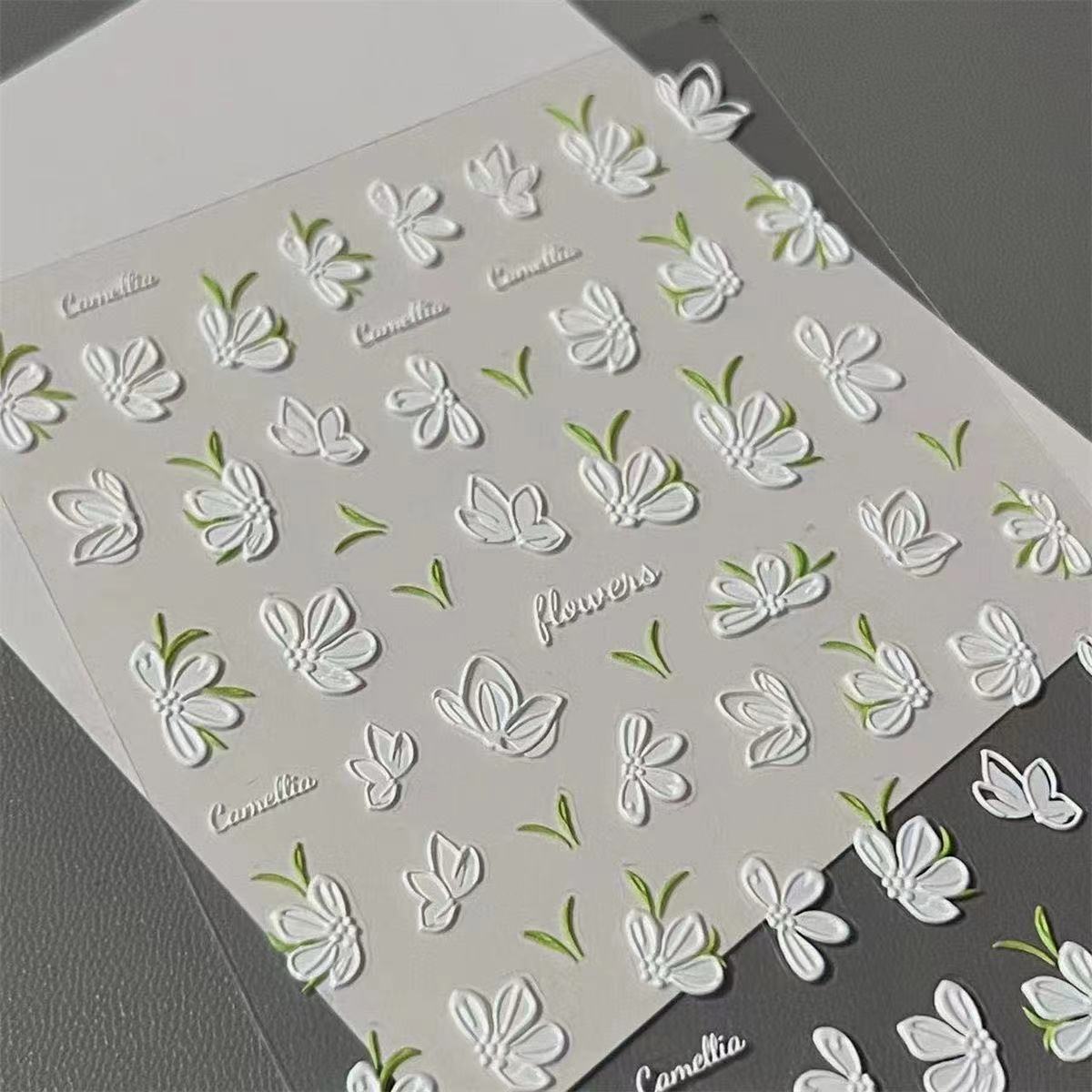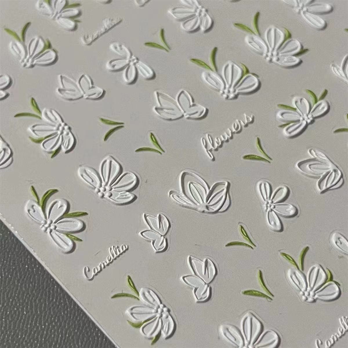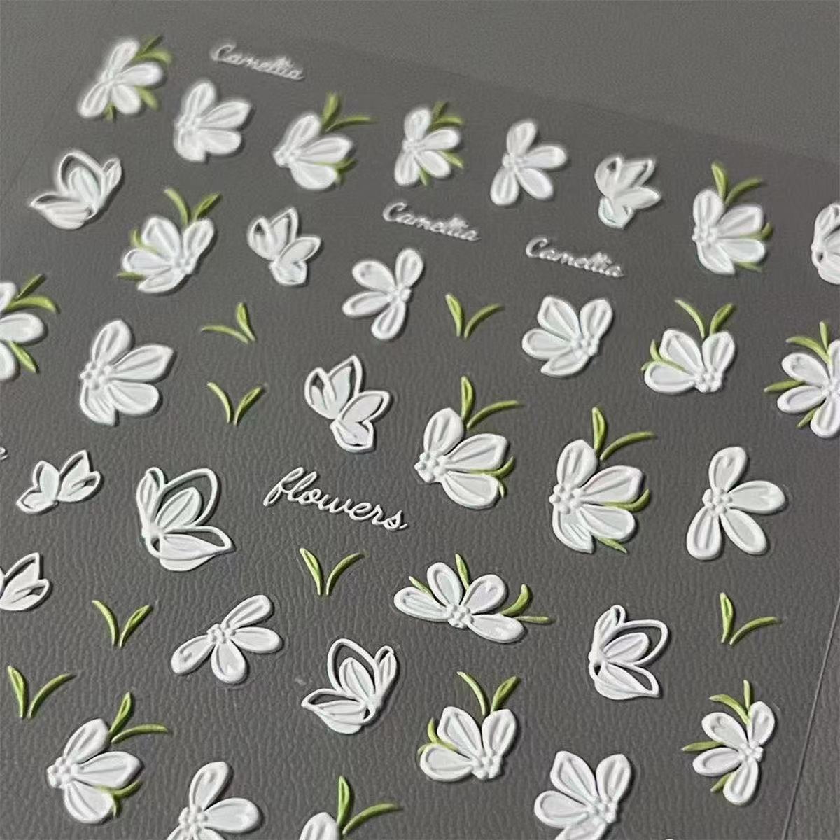 Pegatinas de manicura tridimensionales en relieve de camelia fresca estudiantes coreanos 3D lindos DIY pegatinas de manicura impermeables pegatinas decorativas