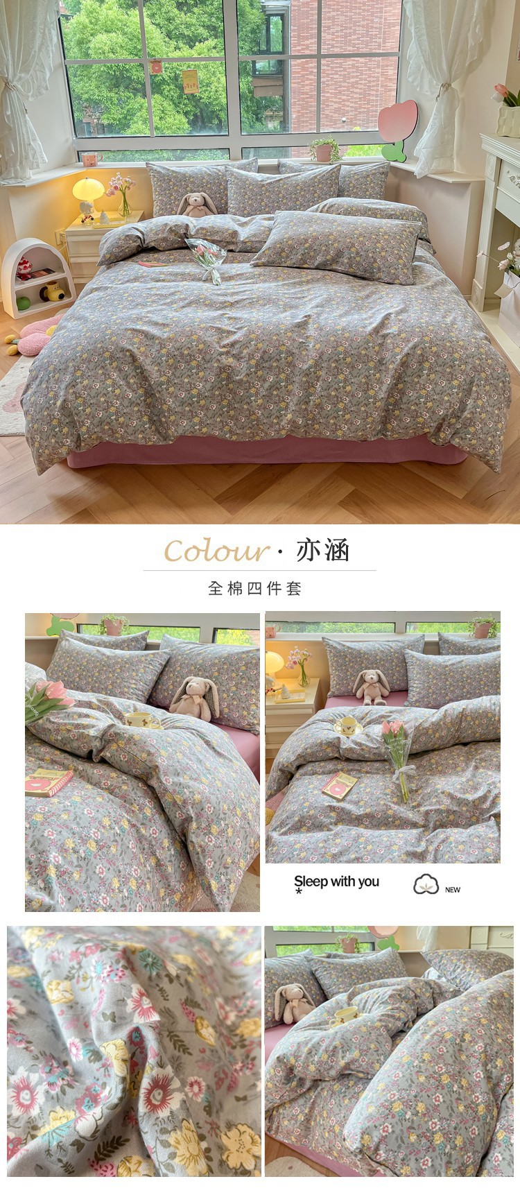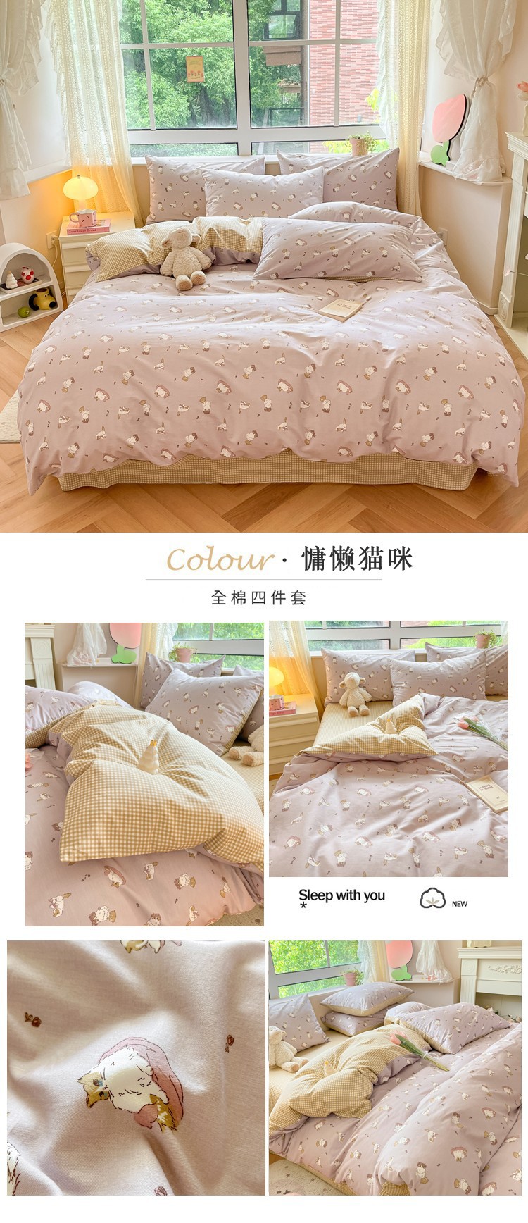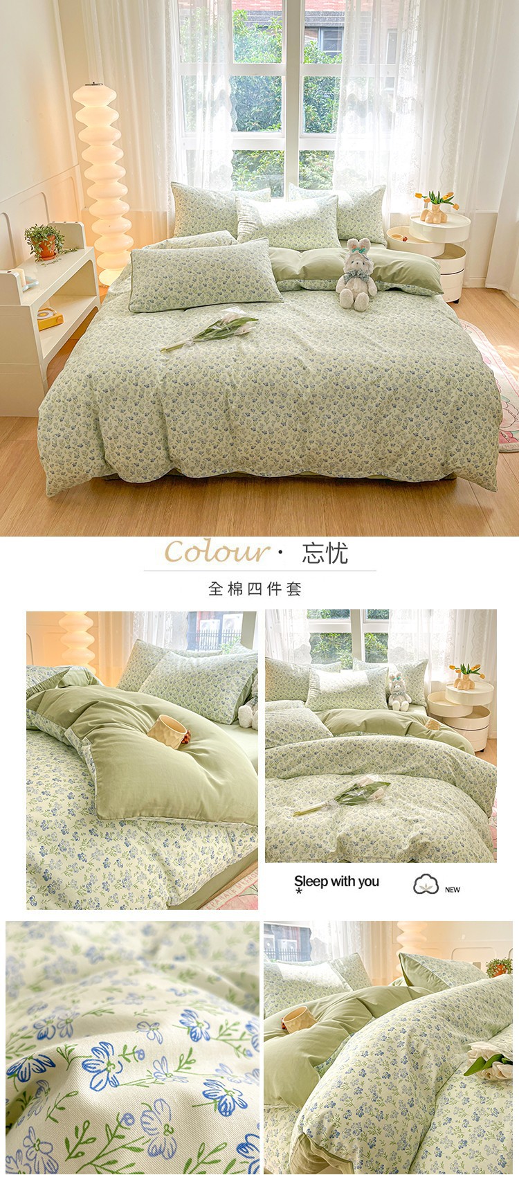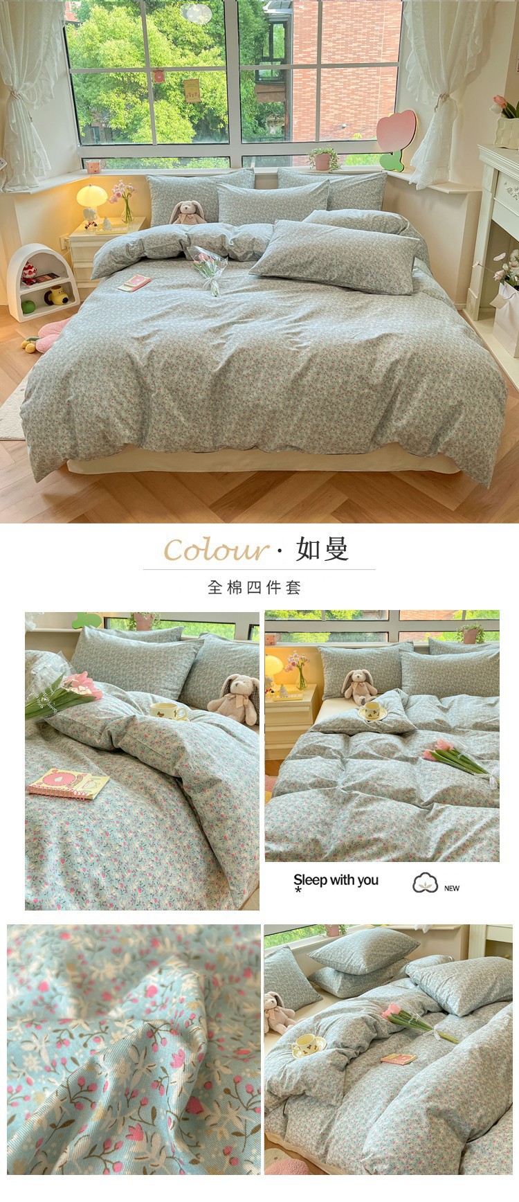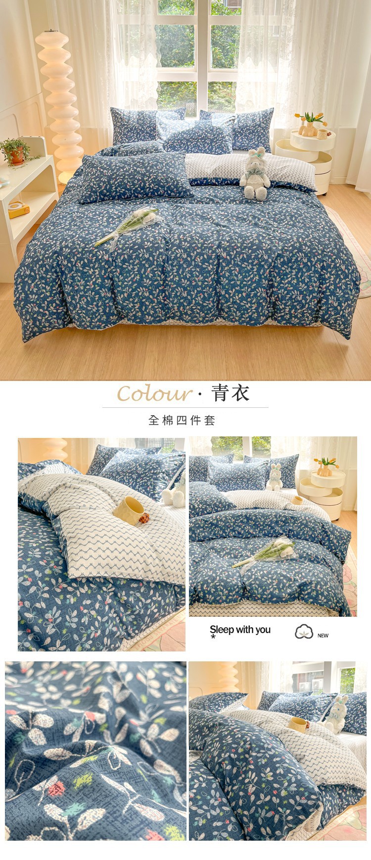 Pequeños juegos de algodón puro fresco de cuatro piezas 60 juegos de algodón puro de tres piezas juegos de ropa de cama de hoja de bambú en el dormitorio estudiantil de otoño e invierno