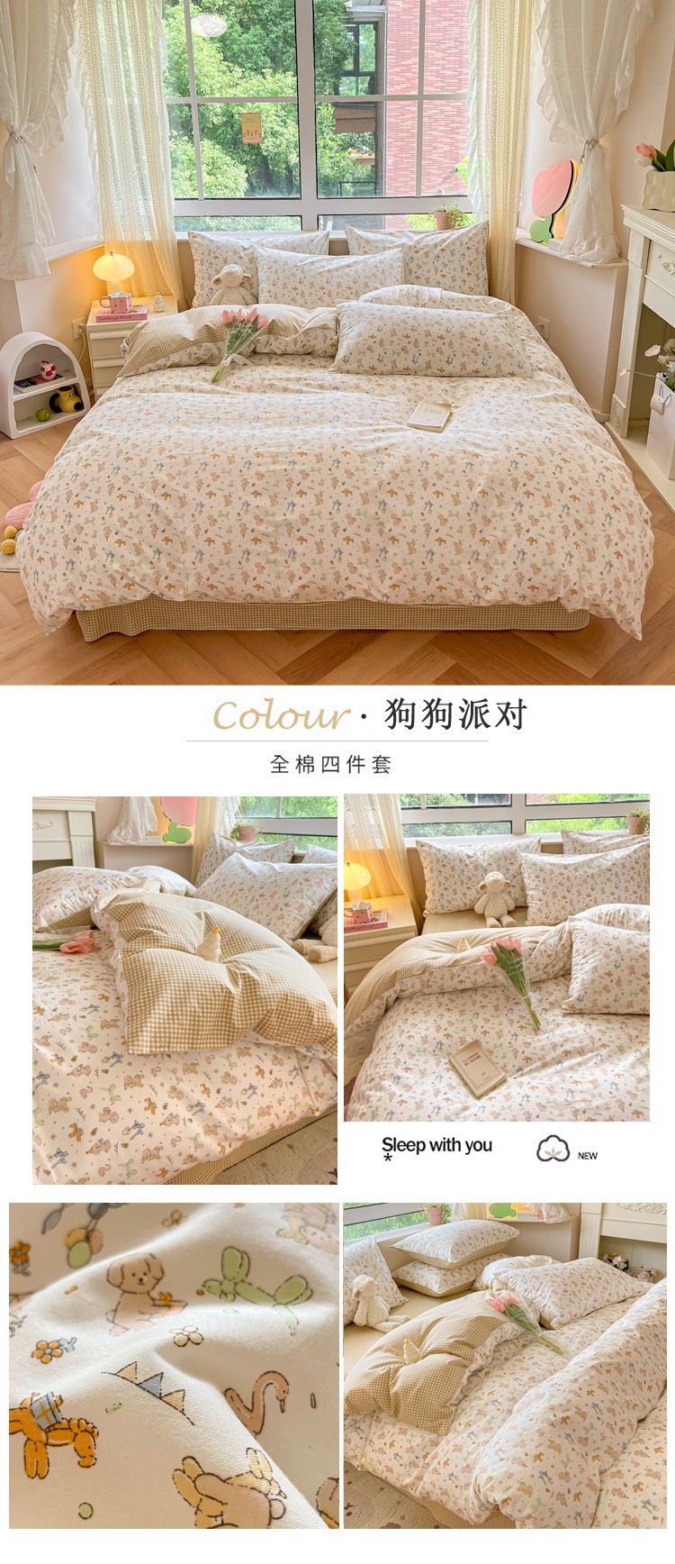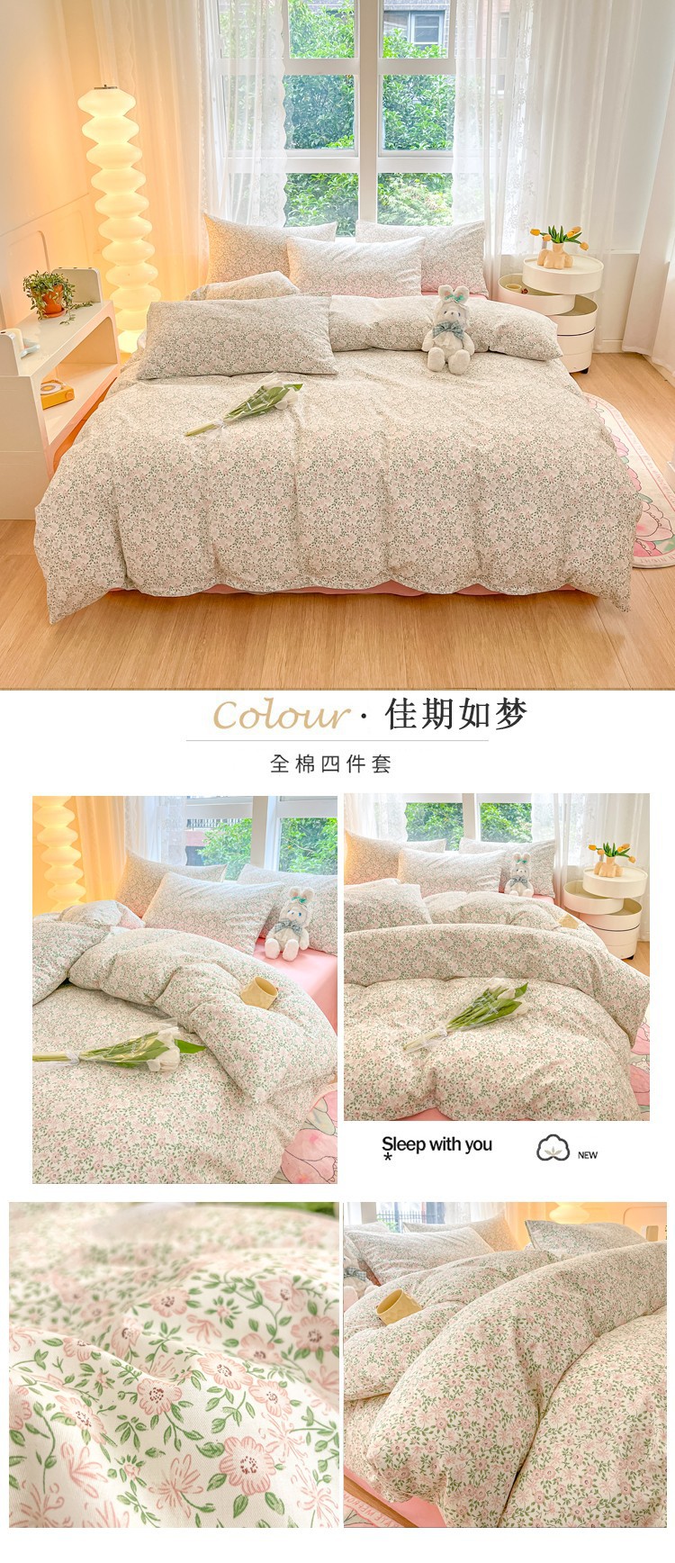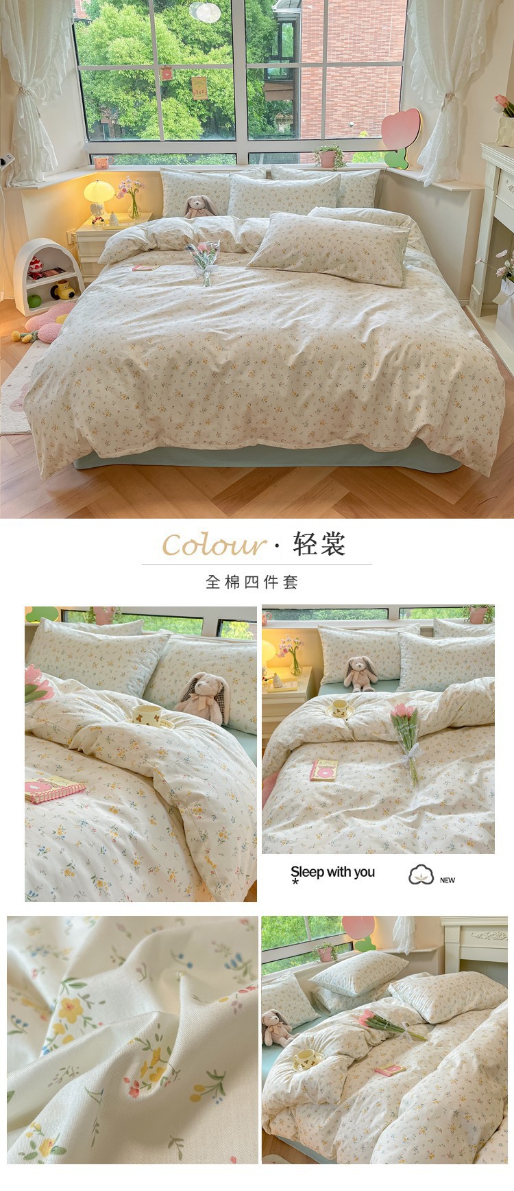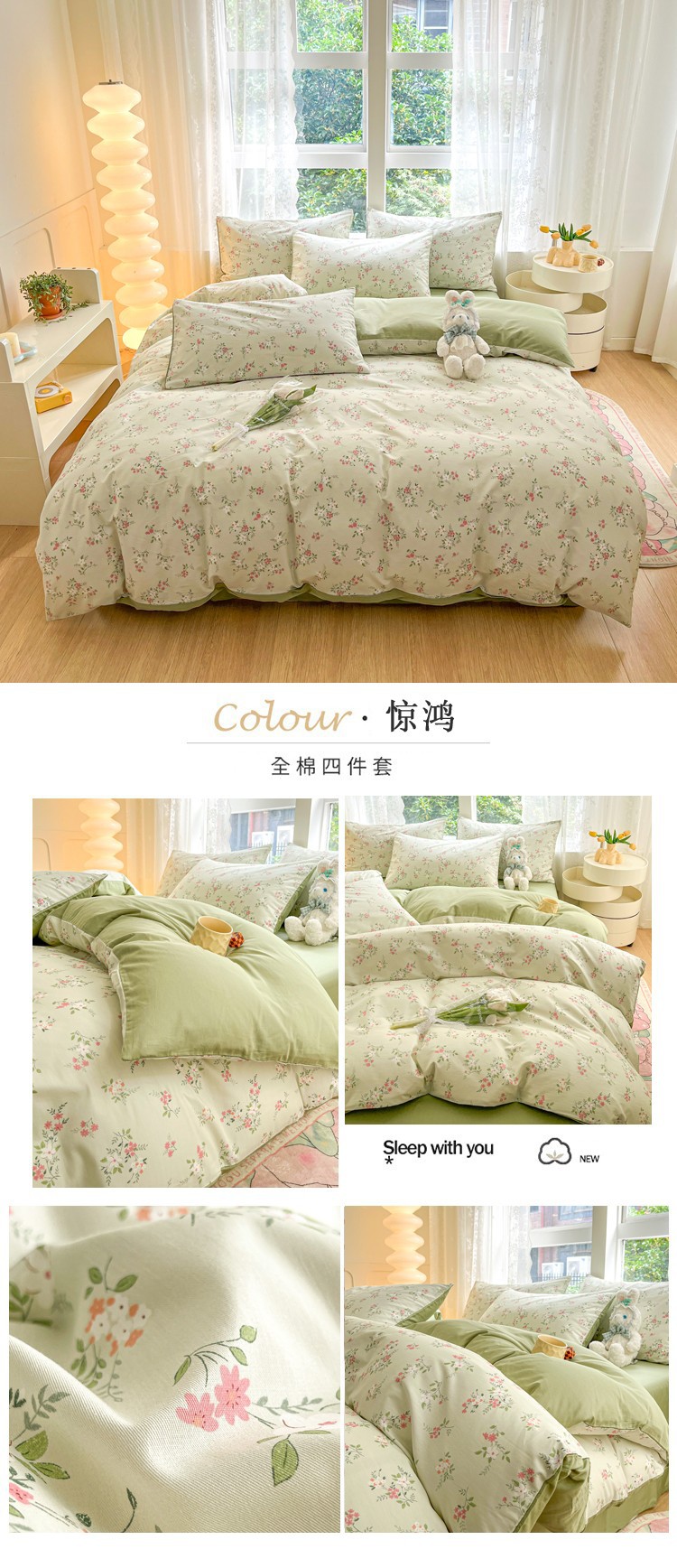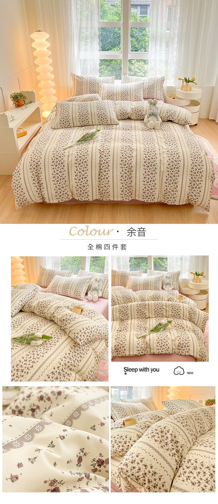 Pequeños juegos de algodón puro fresco de cuatro piezas 60 juegos de algodón puro de tres piezas juegos de ropa de cama de hoja de bambú en el dormitorio estudiantil de otoño e invierno