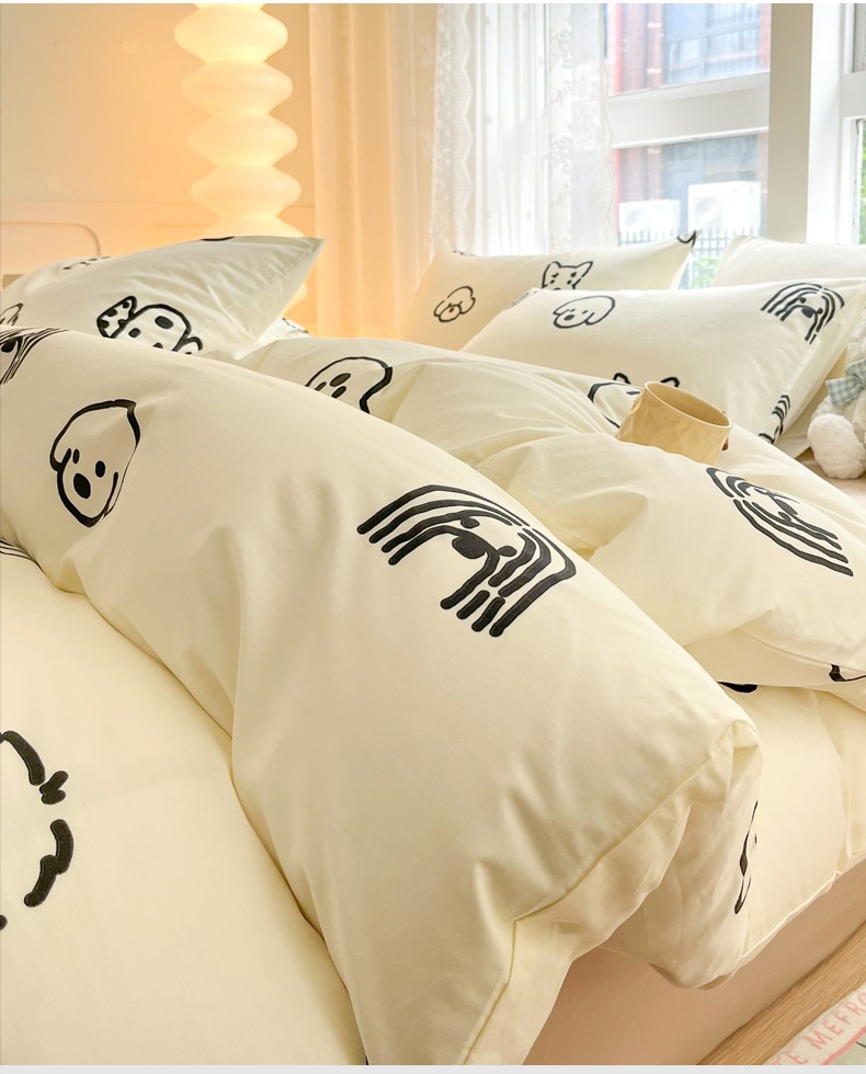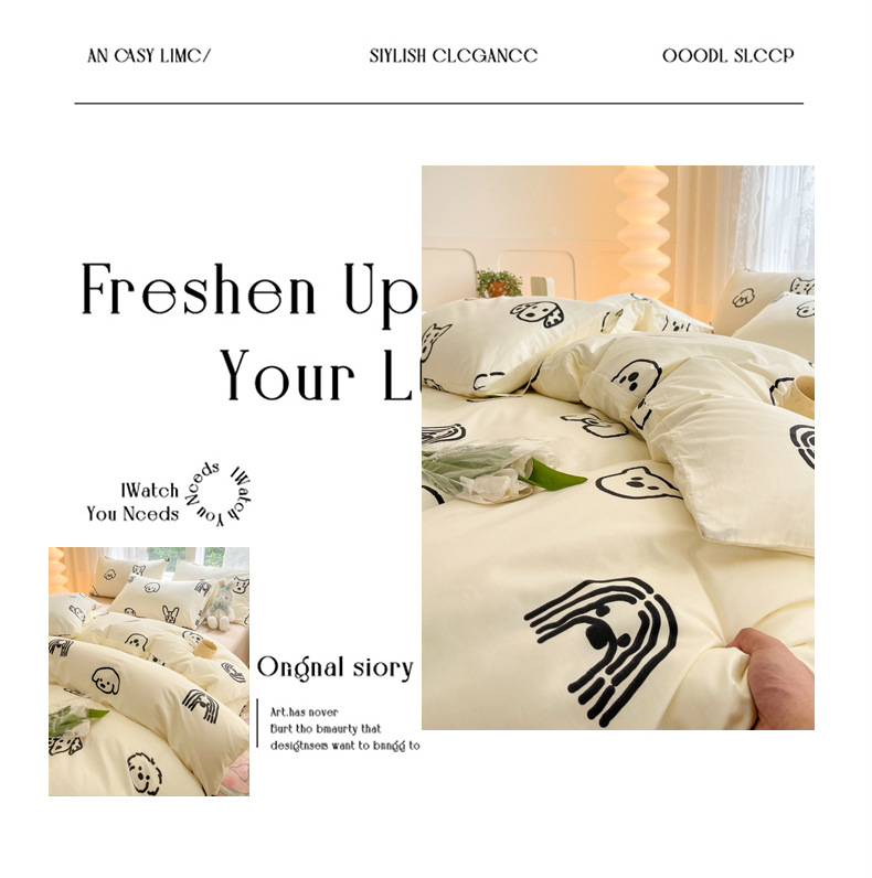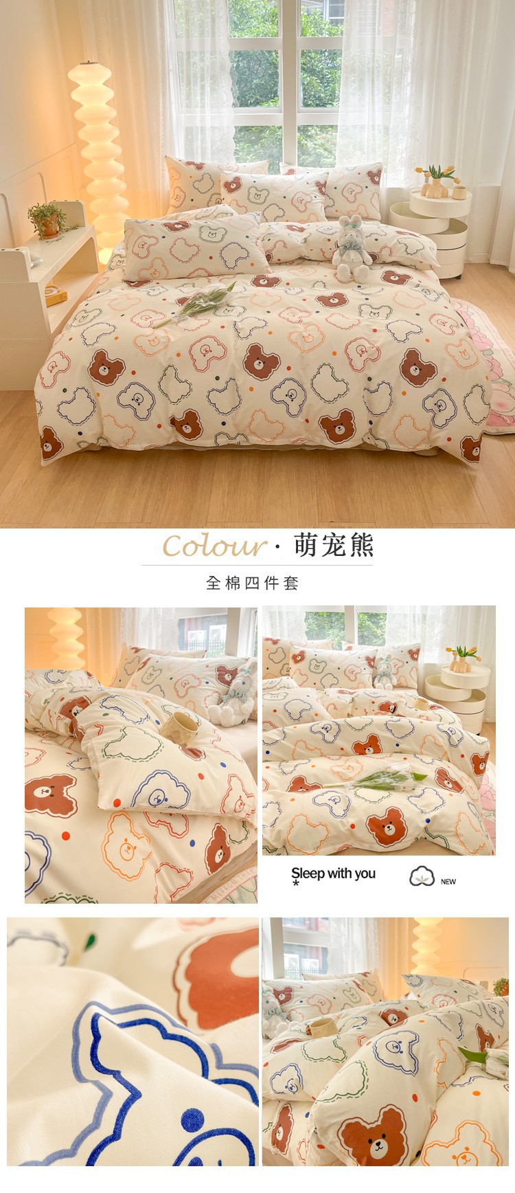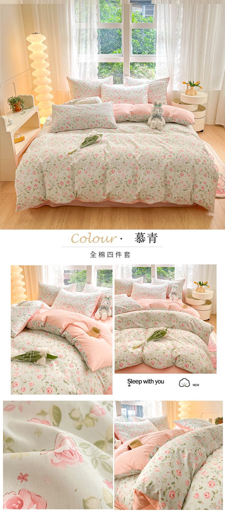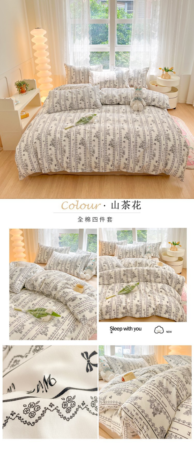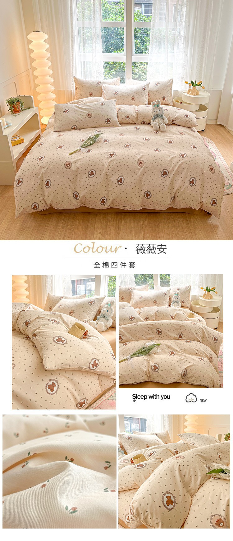 Pequeños juegos de algodón puro fresco de cuatro piezas 60 juegos de algodón puro de tres piezas juegos de ropa de cama de hoja de bambú en el dormitorio estudiantil de otoño e invierno