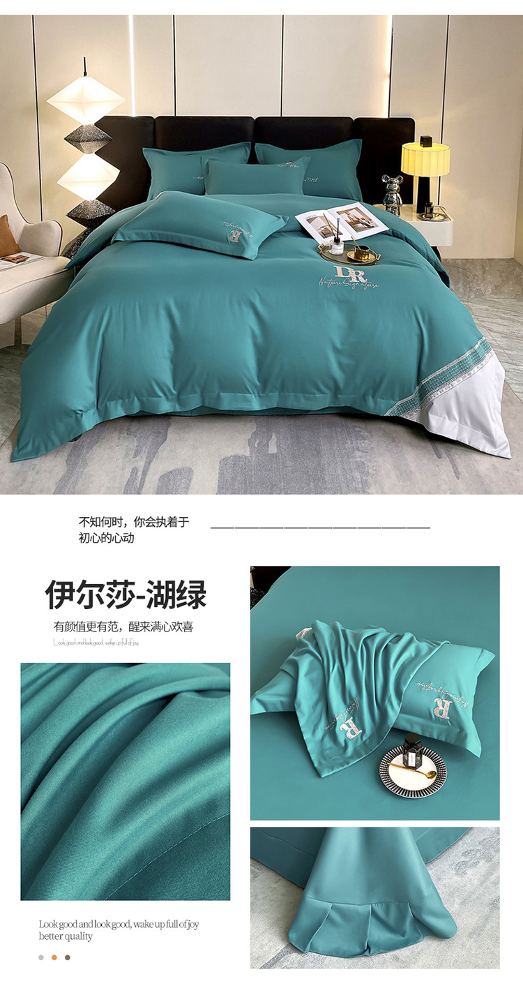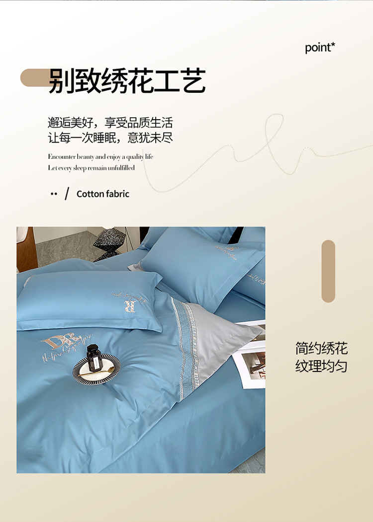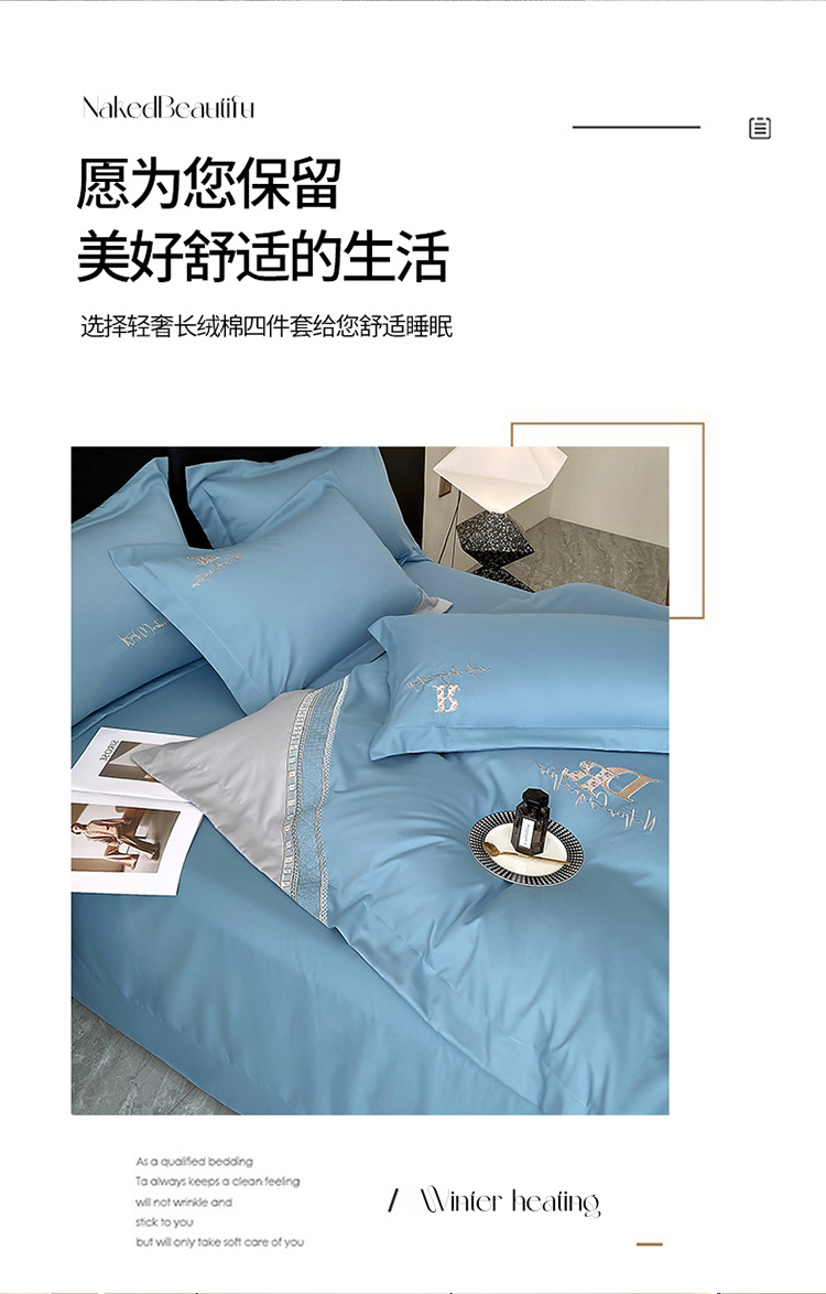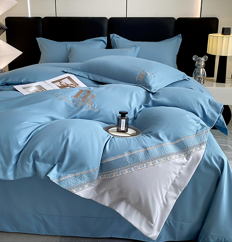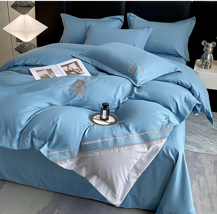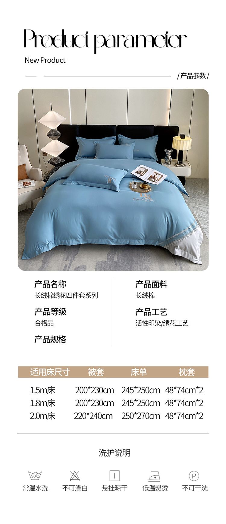 Nuevo conjunto de cuatro piezas de bordado de doble pincelada de algodón de lana larga, ropa de cama simple de lujo ligero al por mayor