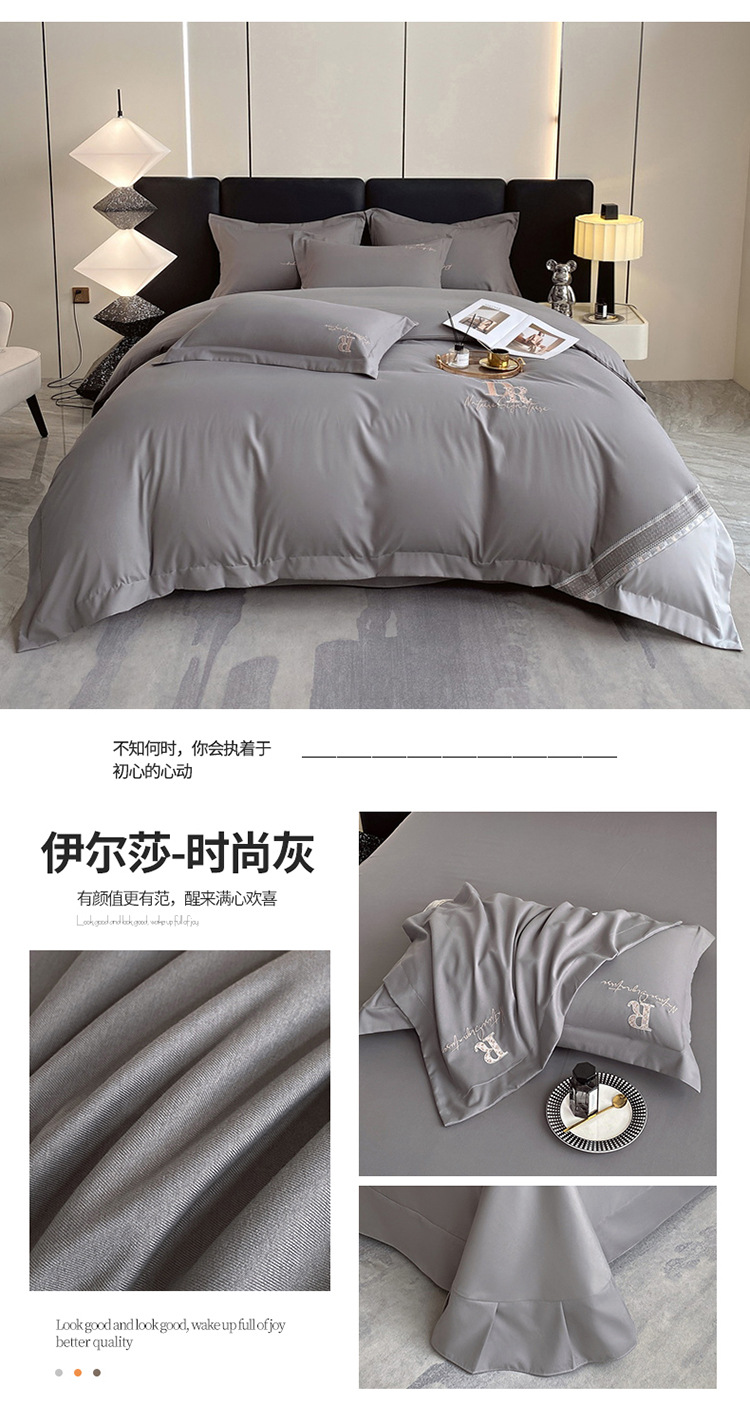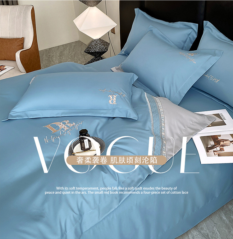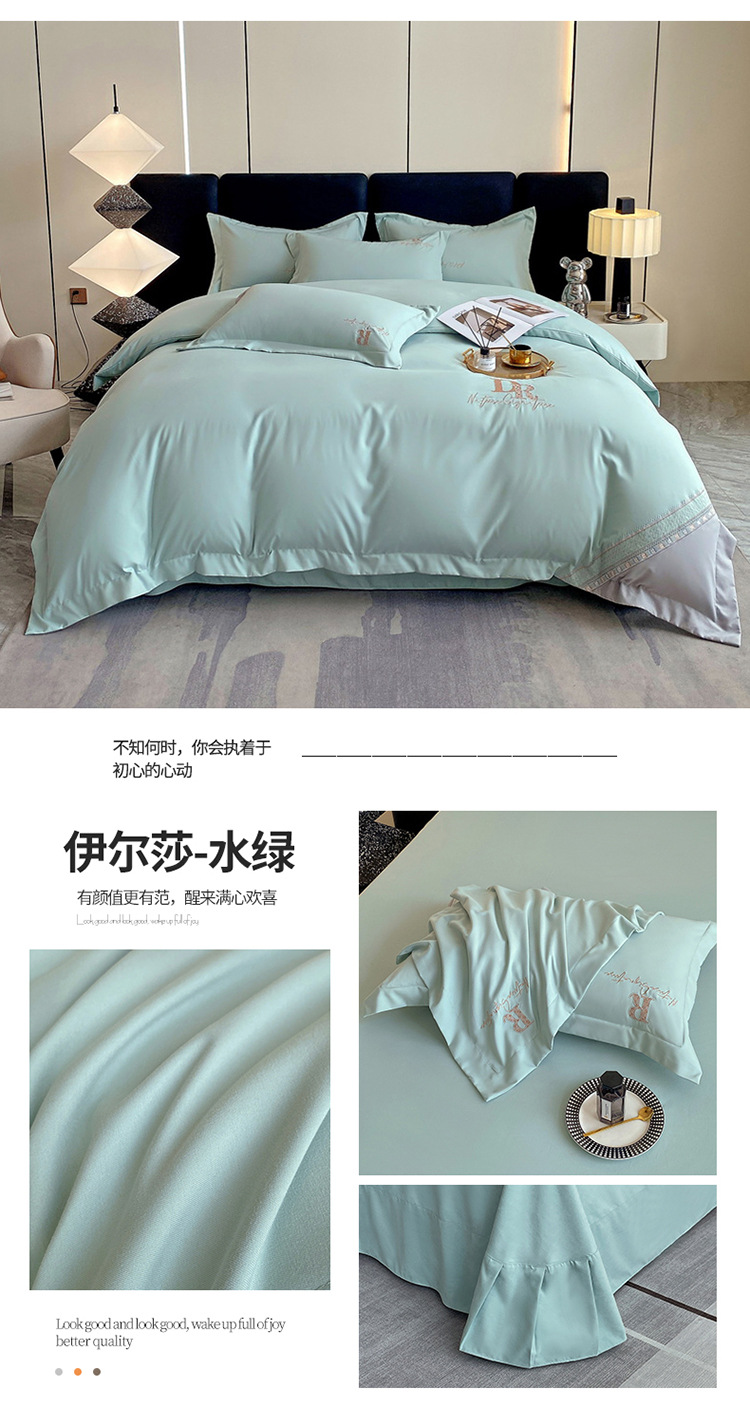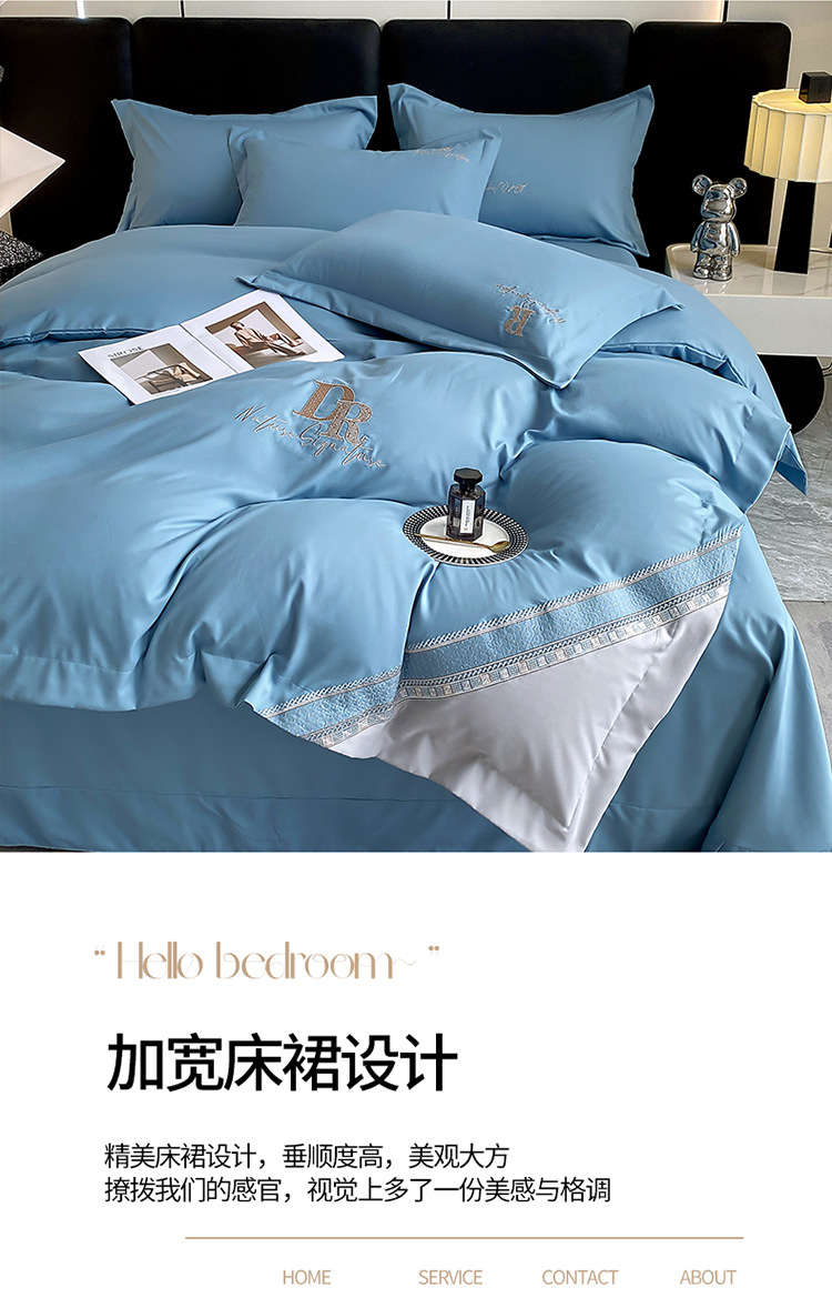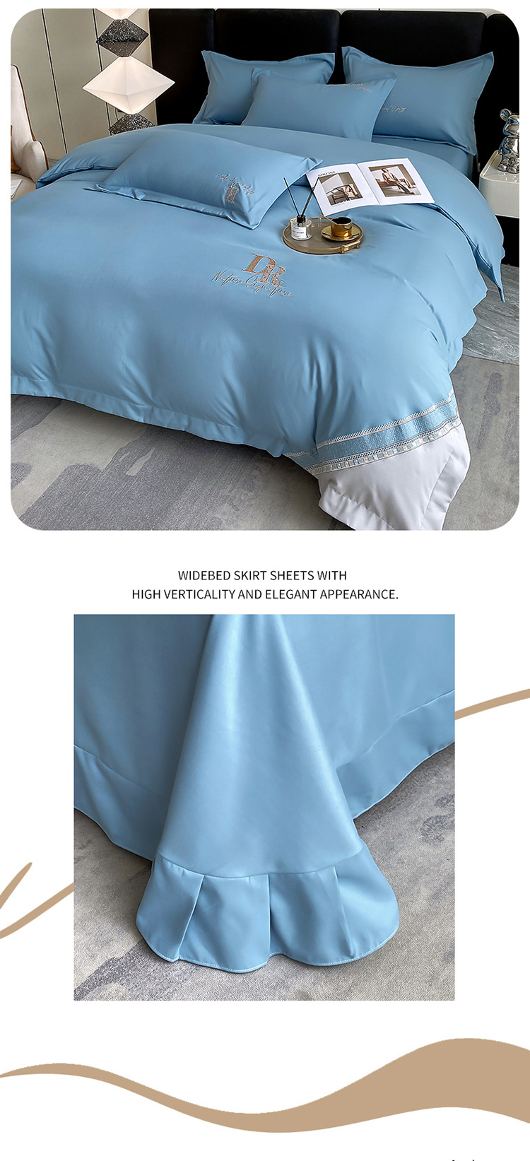 Nuevo conjunto de cuatro piezas de bordado de doble pincelada de algodón de lana larga, ropa de cama simple de lujo ligero al por mayor