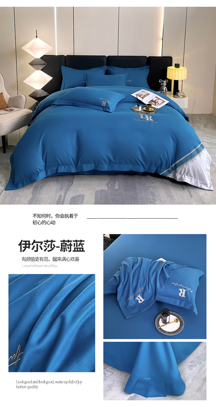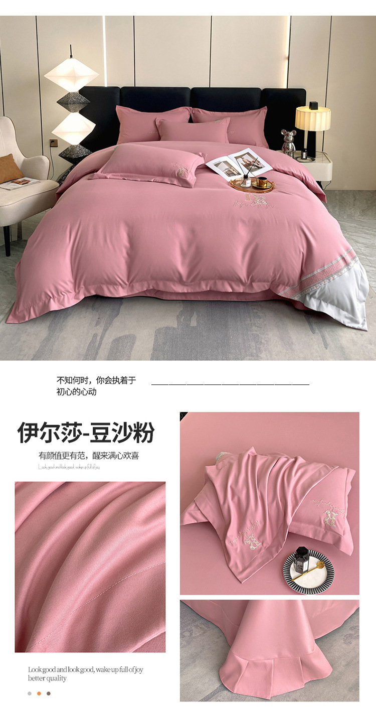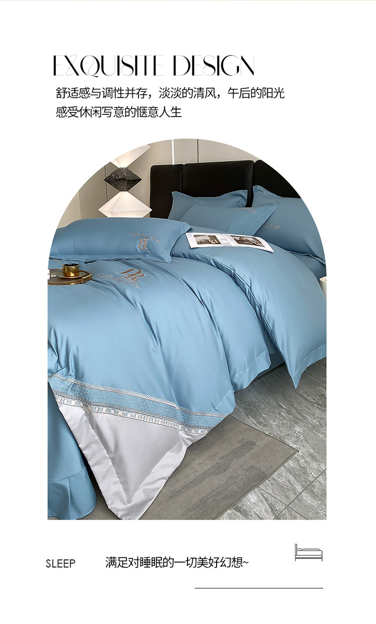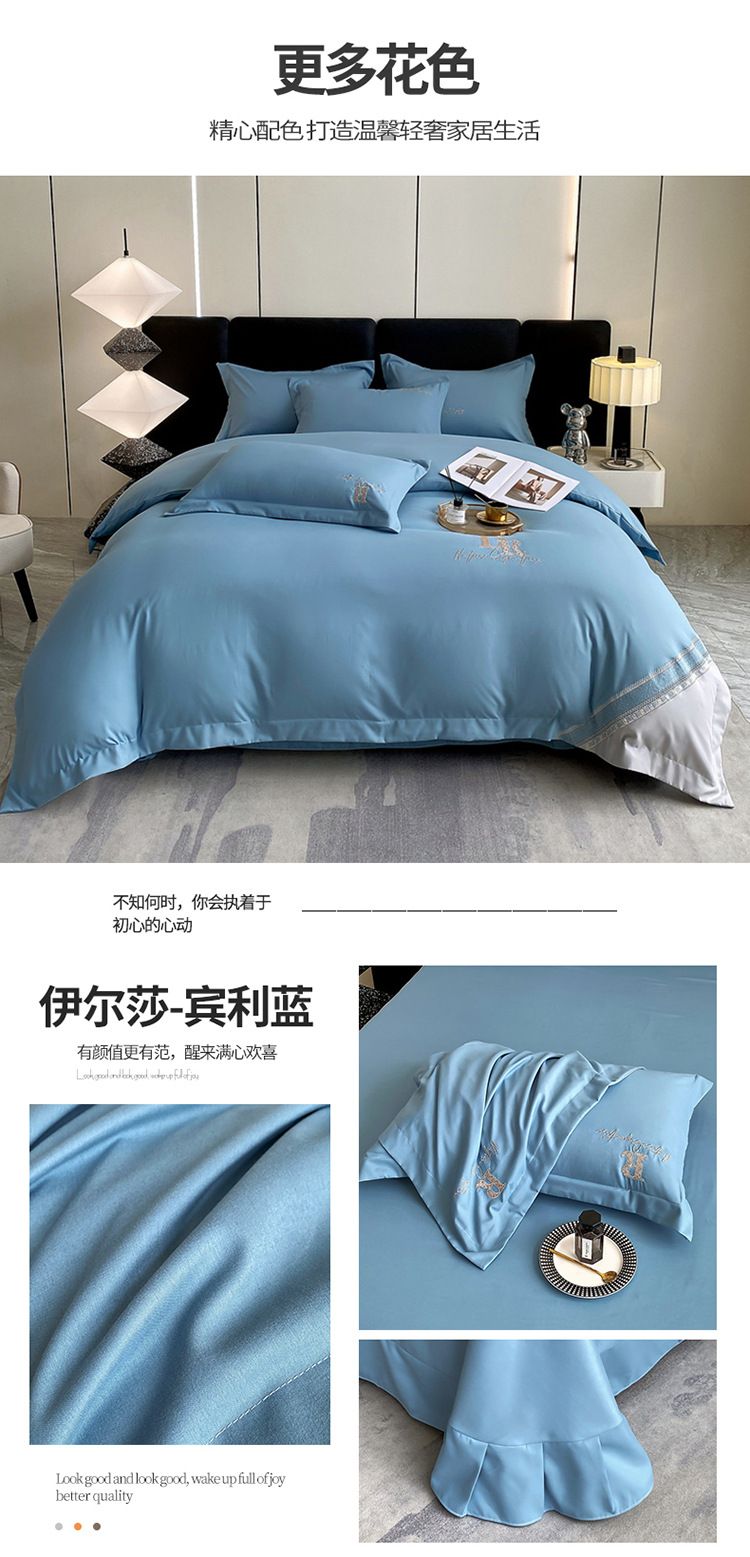 Nuevo conjunto de cuatro piezas de bordado de doble pincelada de algodón de lana larga, ropa de cama simple de lujo ligero al por mayor