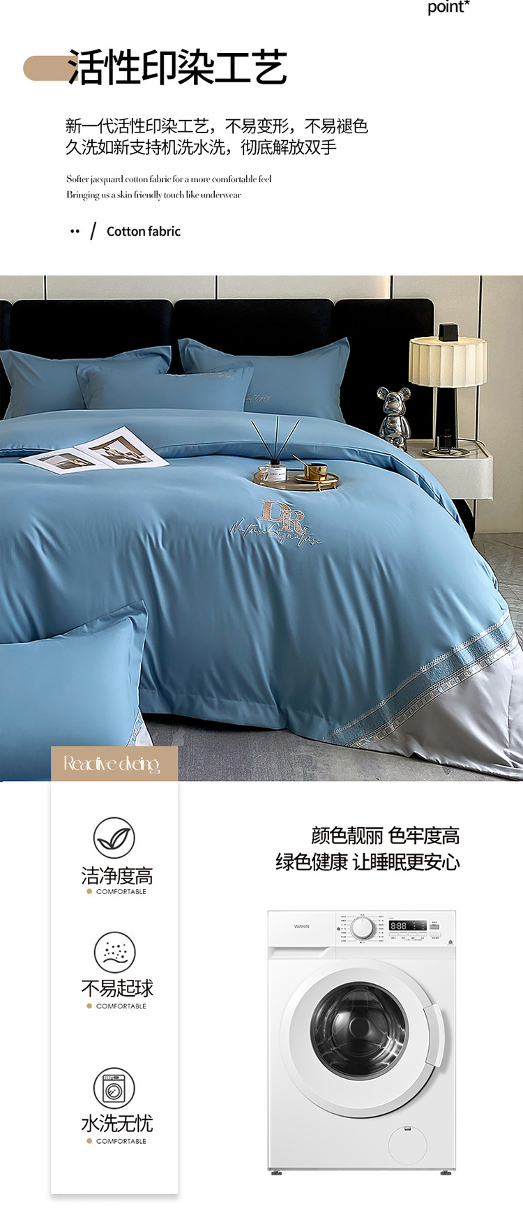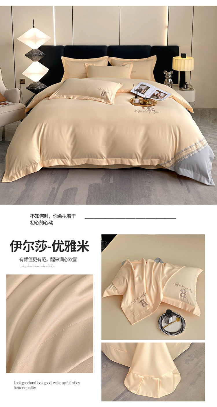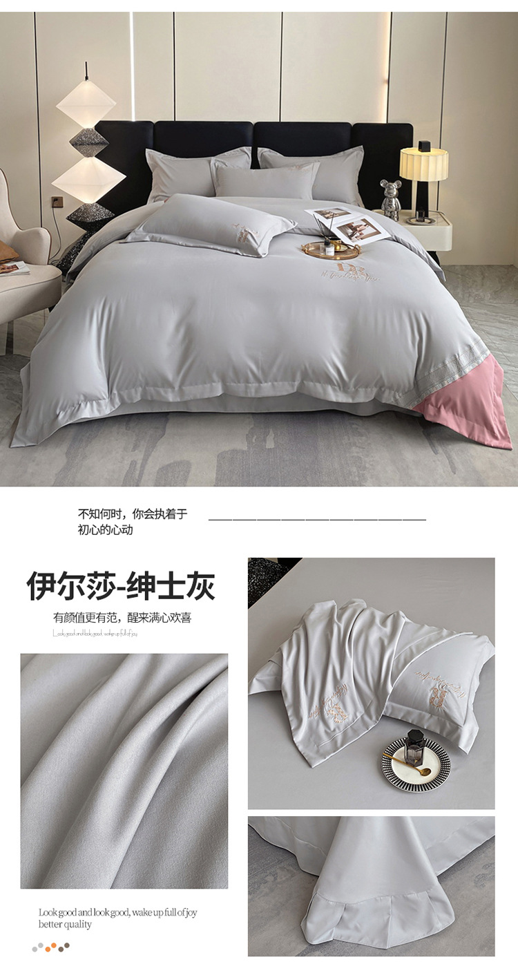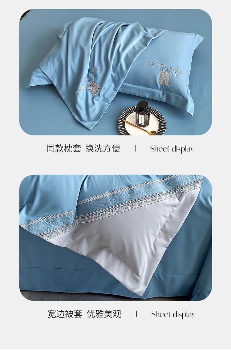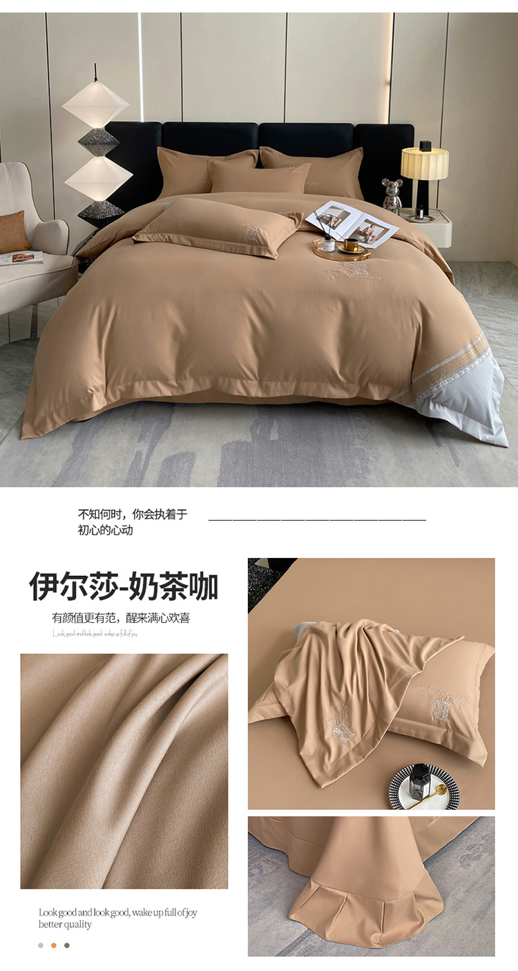 Nuevo conjunto de cuatro piezas de bordado de doble pincelada de algodón de lana larga, ropa de cama simple de lujo ligero al por mayor