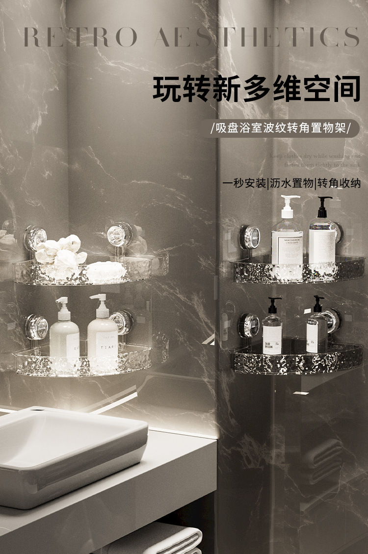 Estante de almacenamiento de ventosas corrugadas lavamanos del baño, lavabo, colgante de pared de ventosas sin perforación, estante de almacenamiento del baño