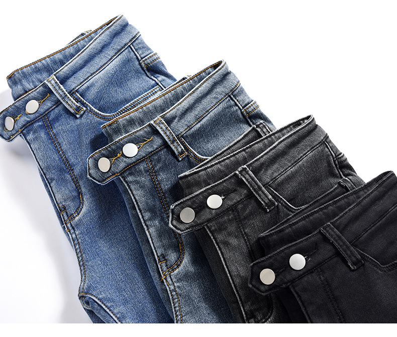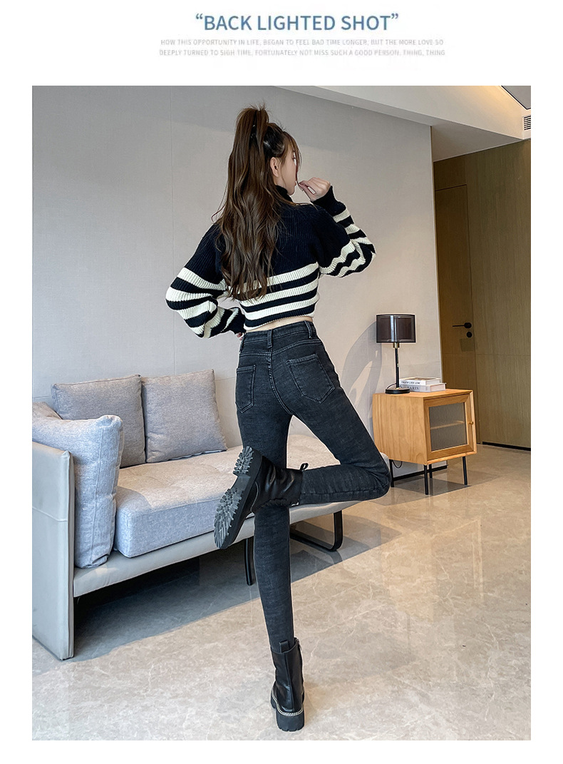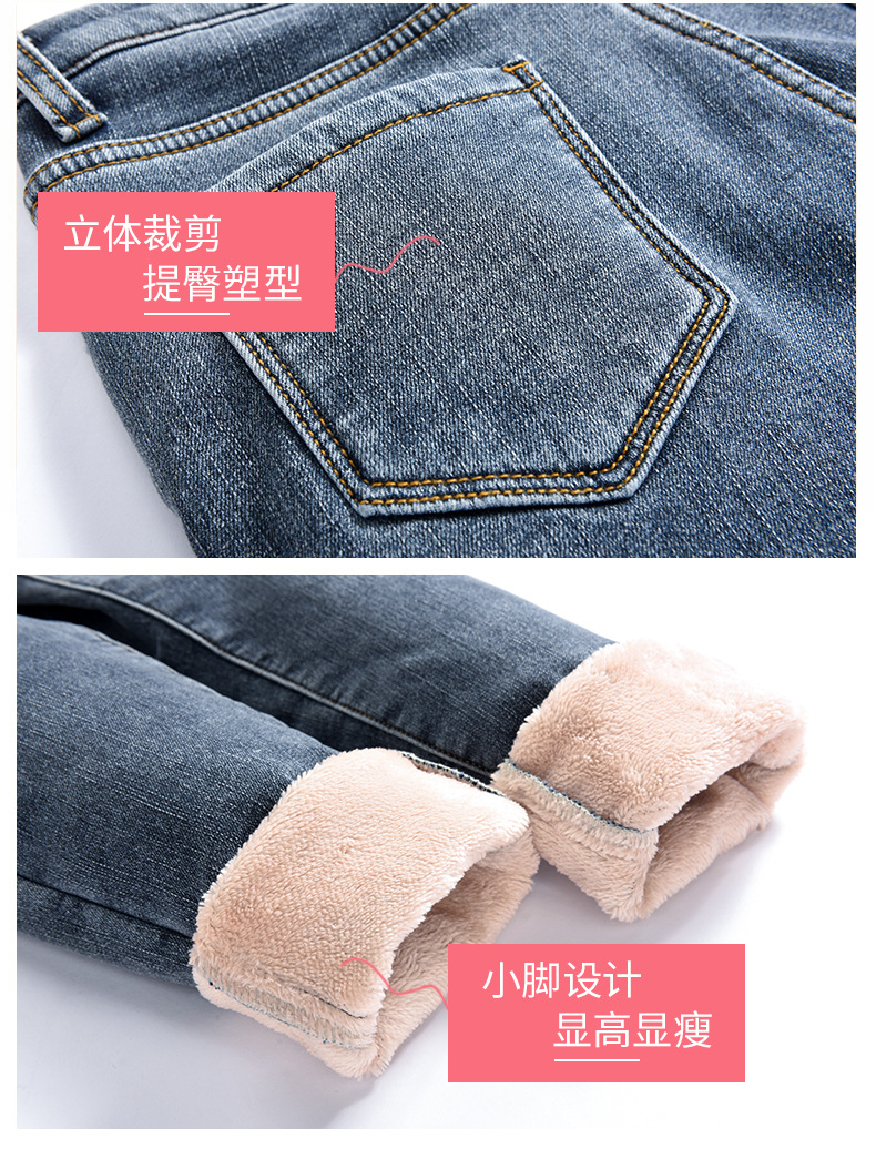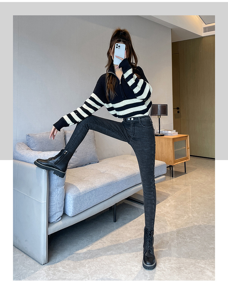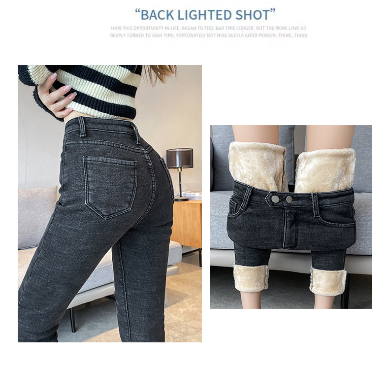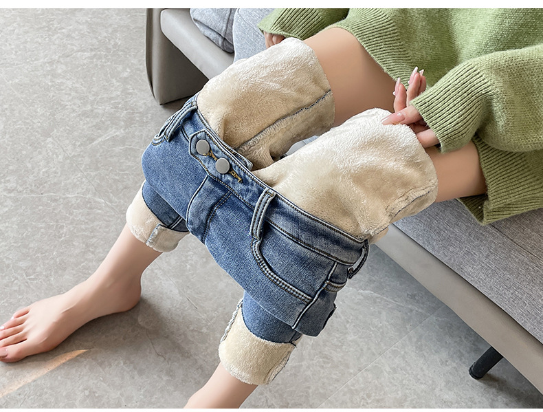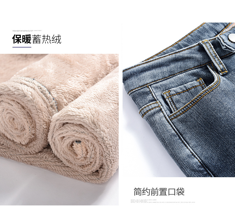 Jeans elásticos de cintura alta para mujeres en otoño e invierno de 2023 más terciopelo engrosado nuevo adelgazamiento, pantalones de lápiz y pantalones de pies pequeños