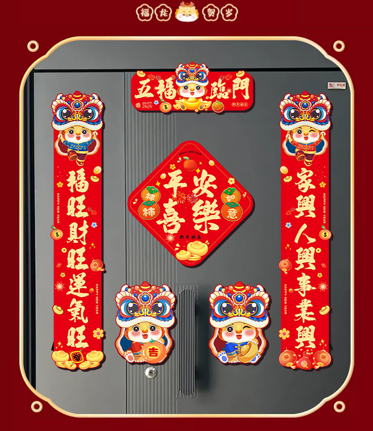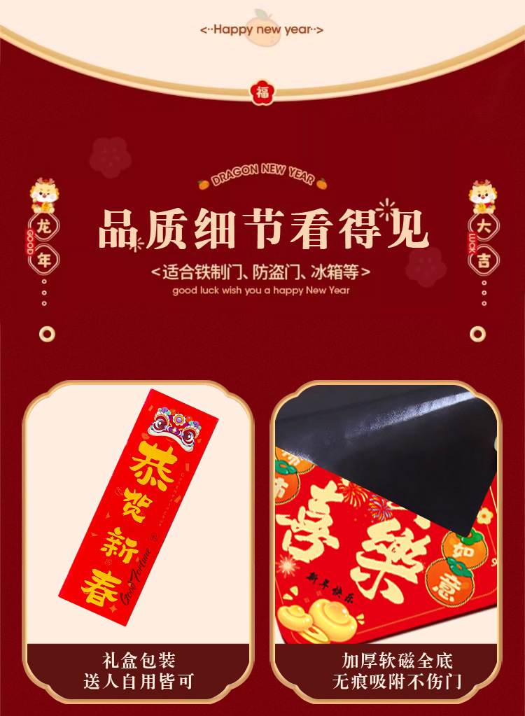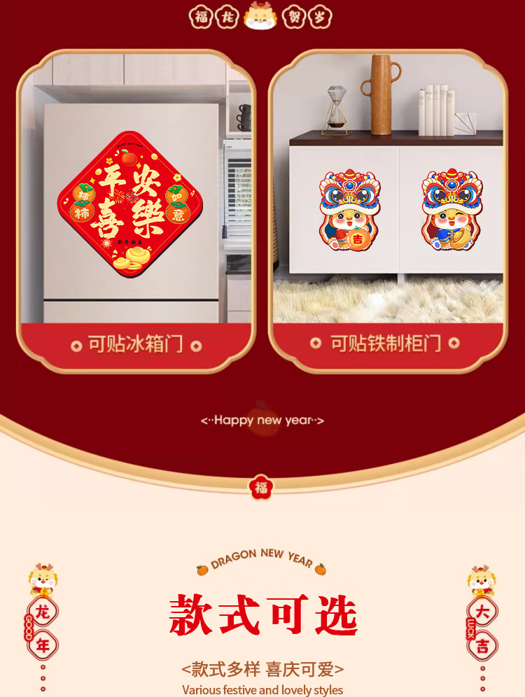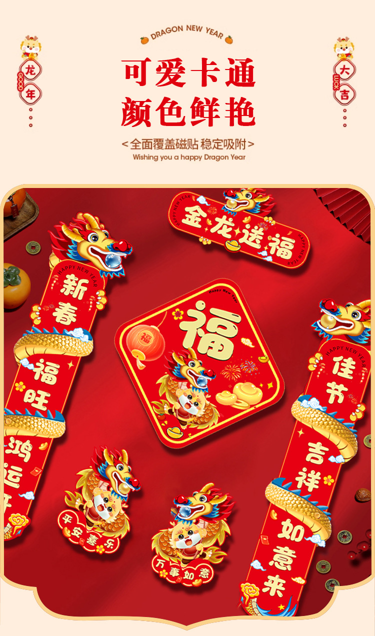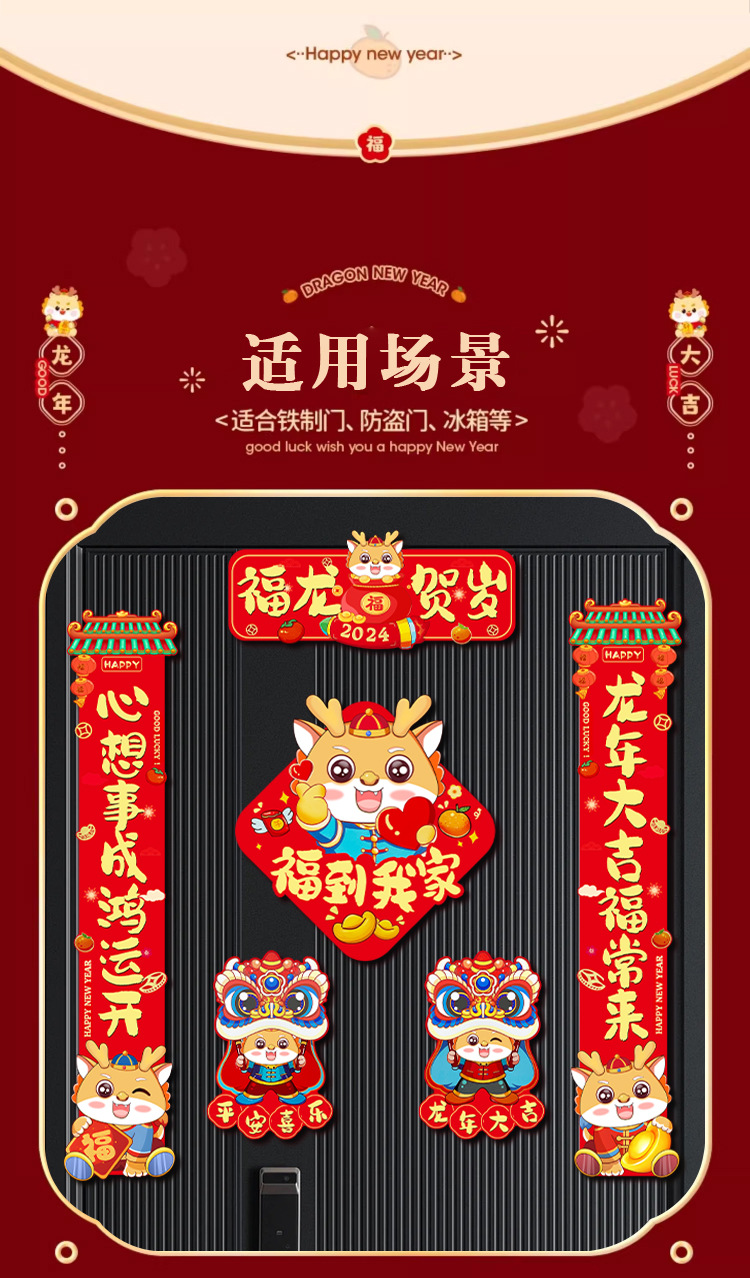 En 2024, el par de absorción magnética del año del dragón entró en el hogar, el Festival de primavera se mudó y se mudó a la puerta de su nueva casa, y el Festival de primavera decoró la pegatina de la puerta magnética fuzi.