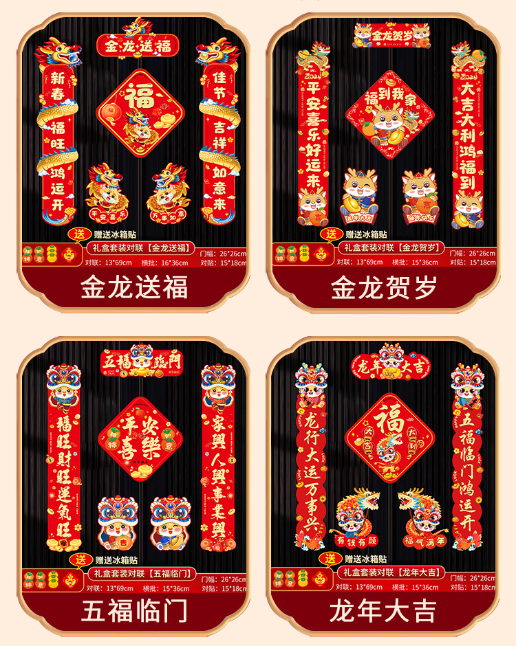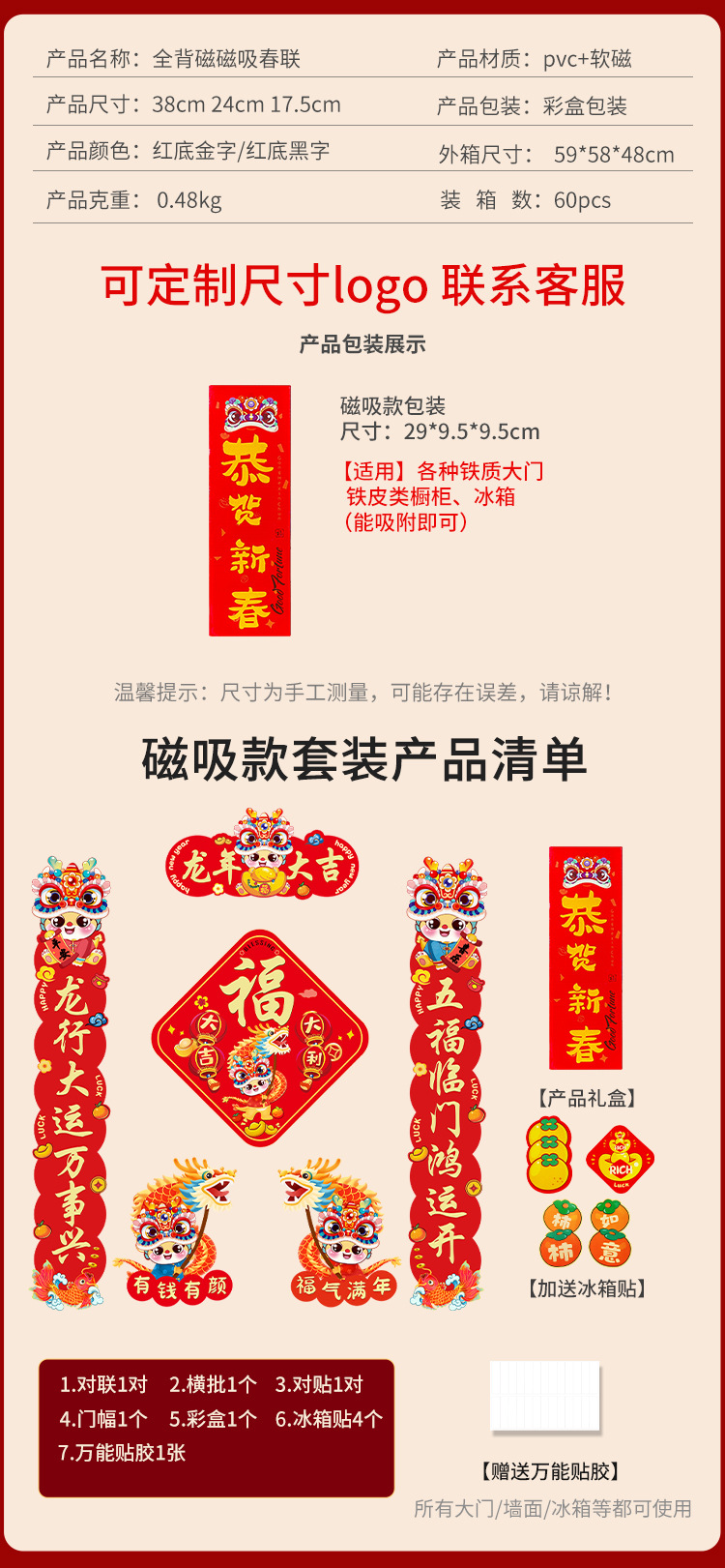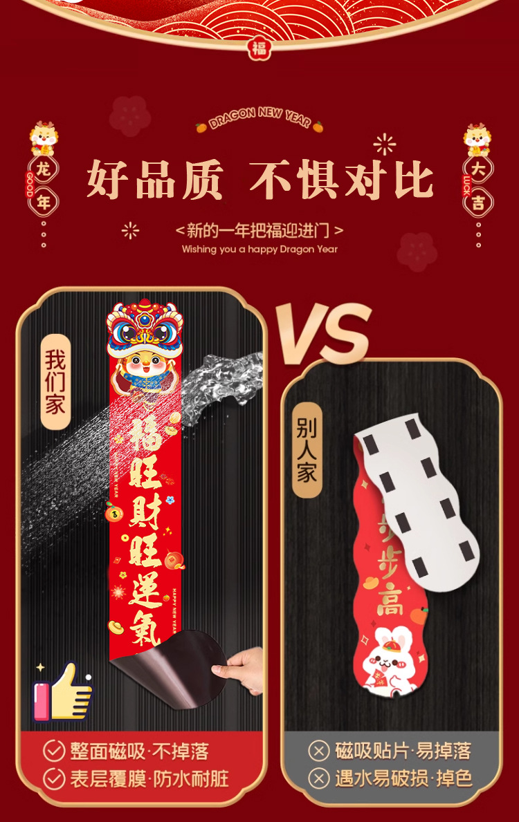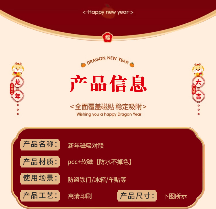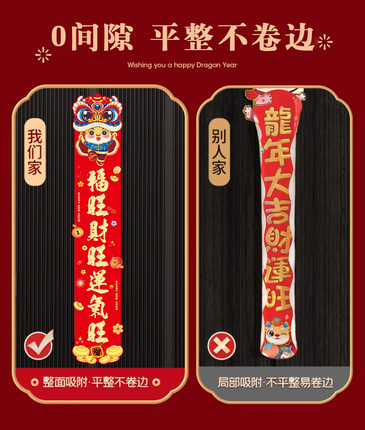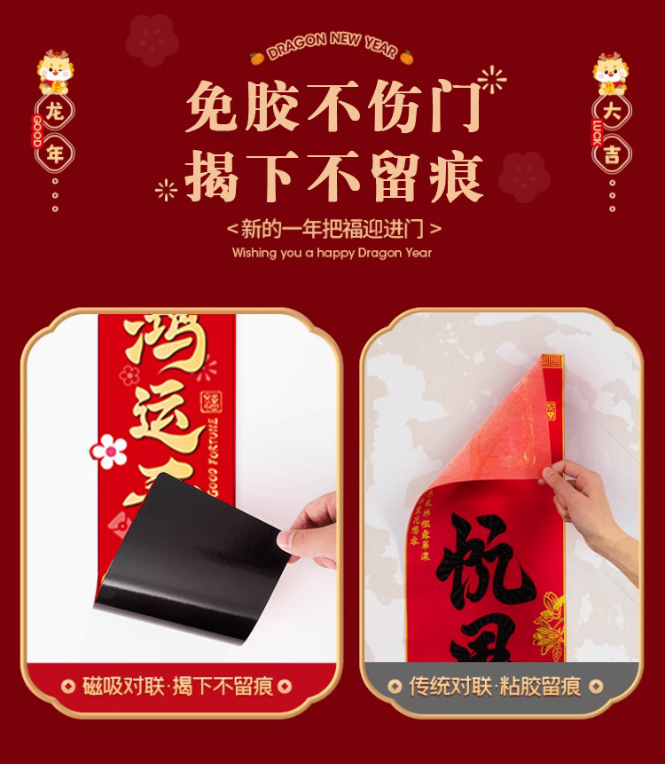 En 2024, el par de absorción magnética del año del dragón entró en el hogar, el Festival de primavera se mudó y se mudó a la puerta de su nueva casa, y el Festival de primavera decoró la pegatina de la puerta magnética fuzi.