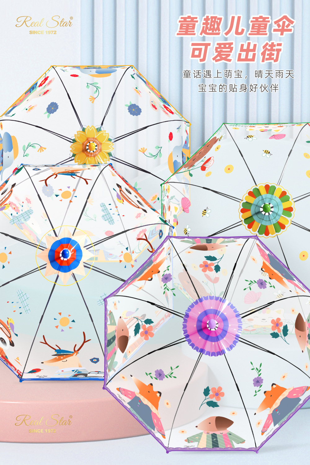 24 años nuevo paraguas transparente para niños de dibujos animados autodiseñado paraguas ilustrados de 19 pulgadas paraguas abiertos automáticamente en stock