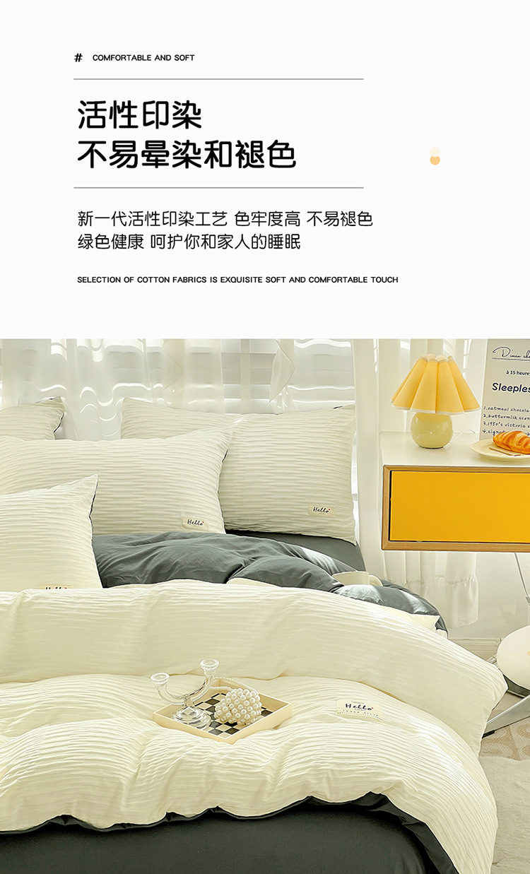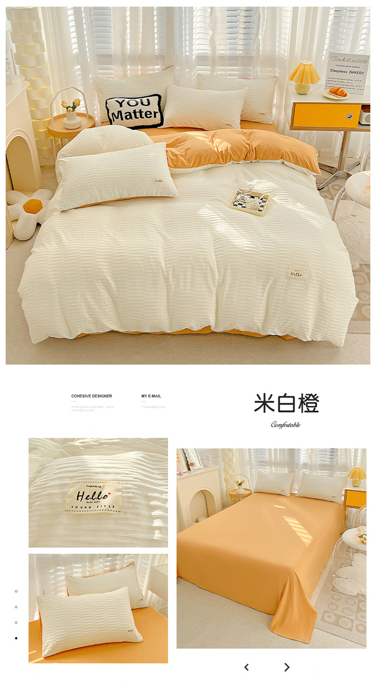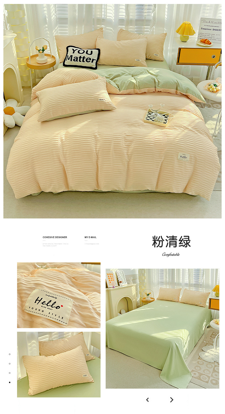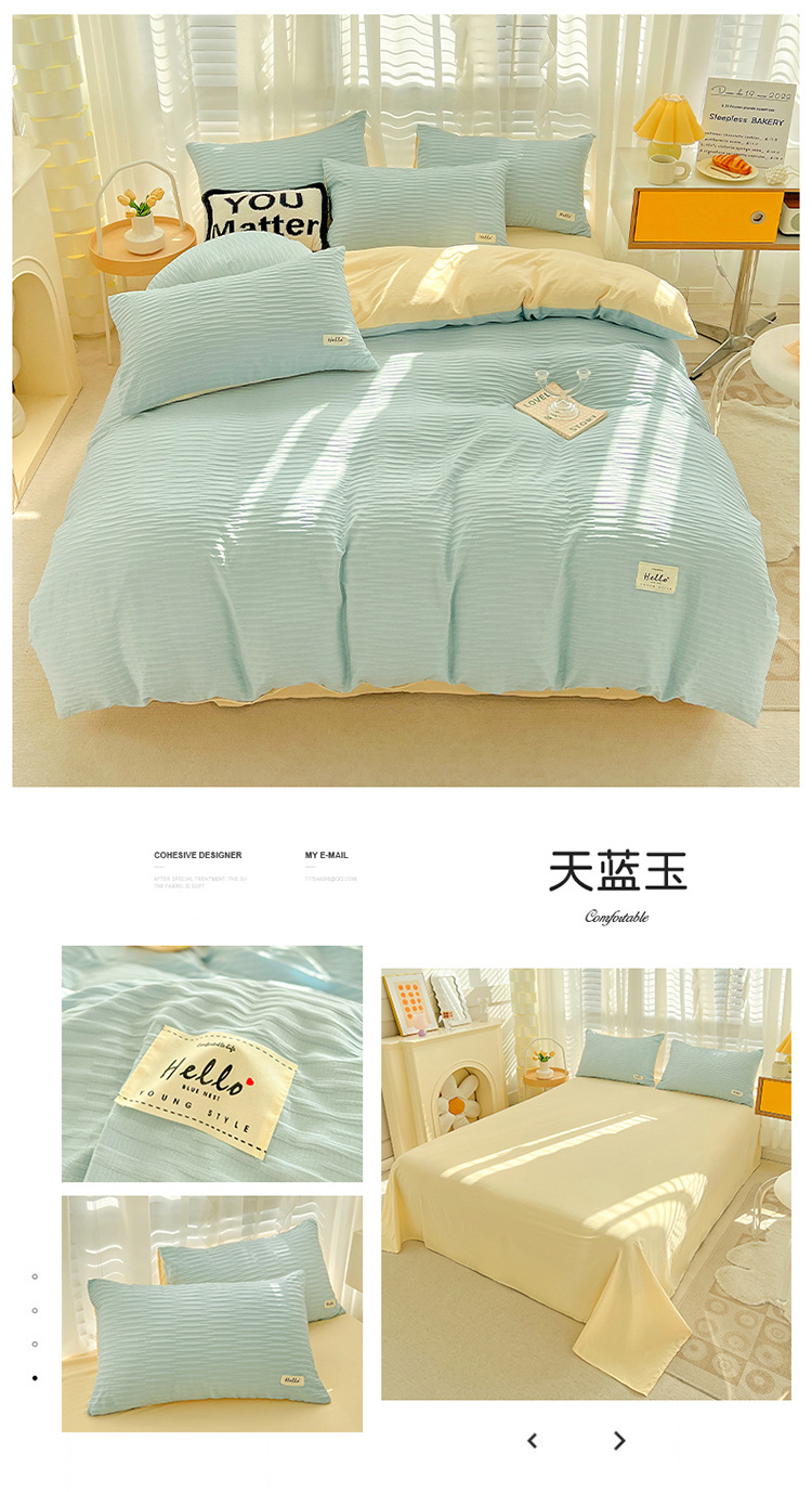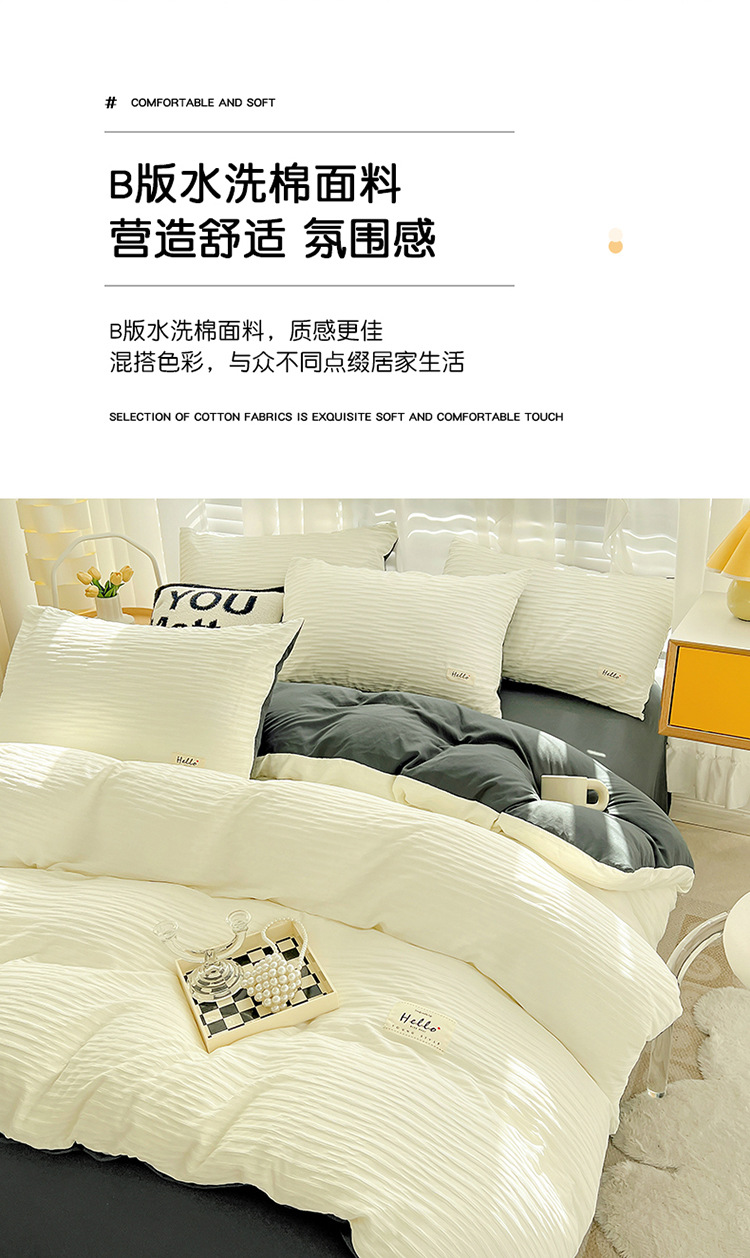 Cuatro juegos de algodón lavado de agua INS pueden dormir desnudos, sábanas y edredones sólidos, tres juegos de ropa de cama y edredones en el dormitorio de estudiantes.