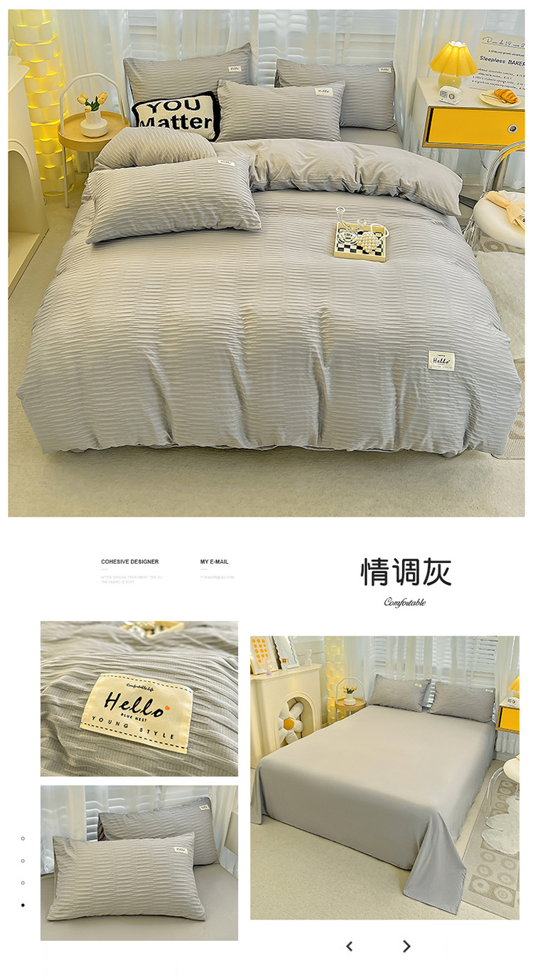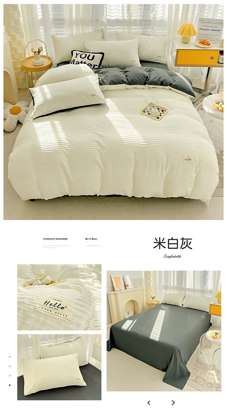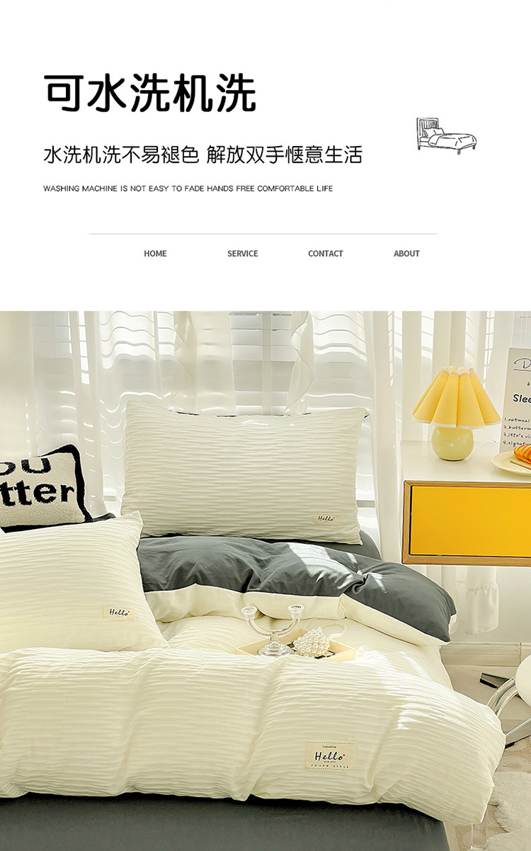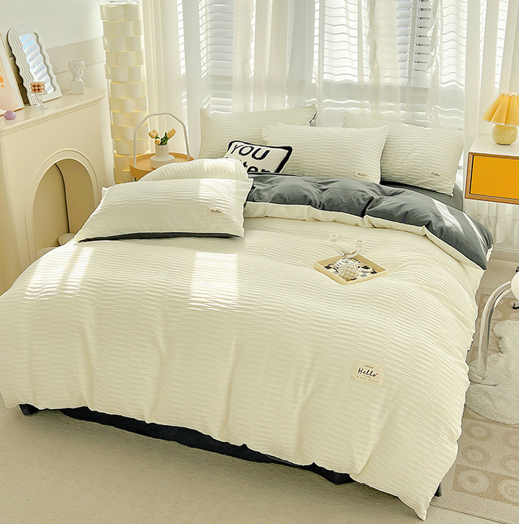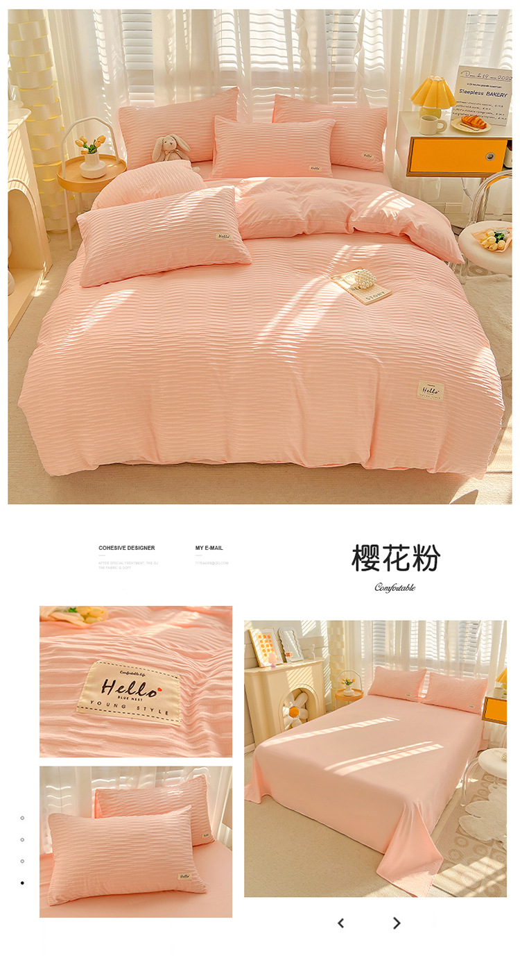 Cuatro juegos de algodón lavado de agua INS pueden dormir desnudos, sábanas y edredones sólidos, tres juegos de ropa de cama y edredones en el dormitorio de estudiantes.