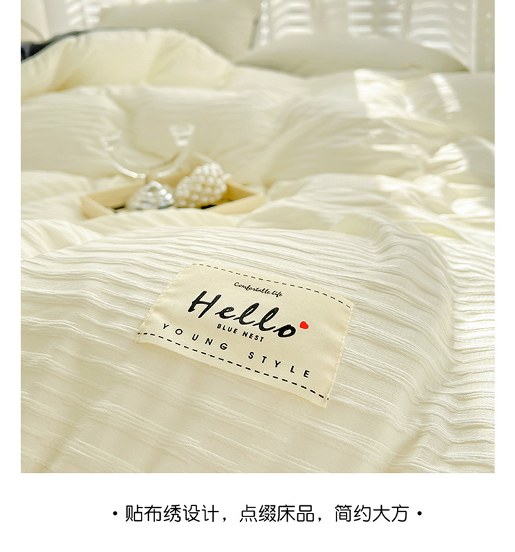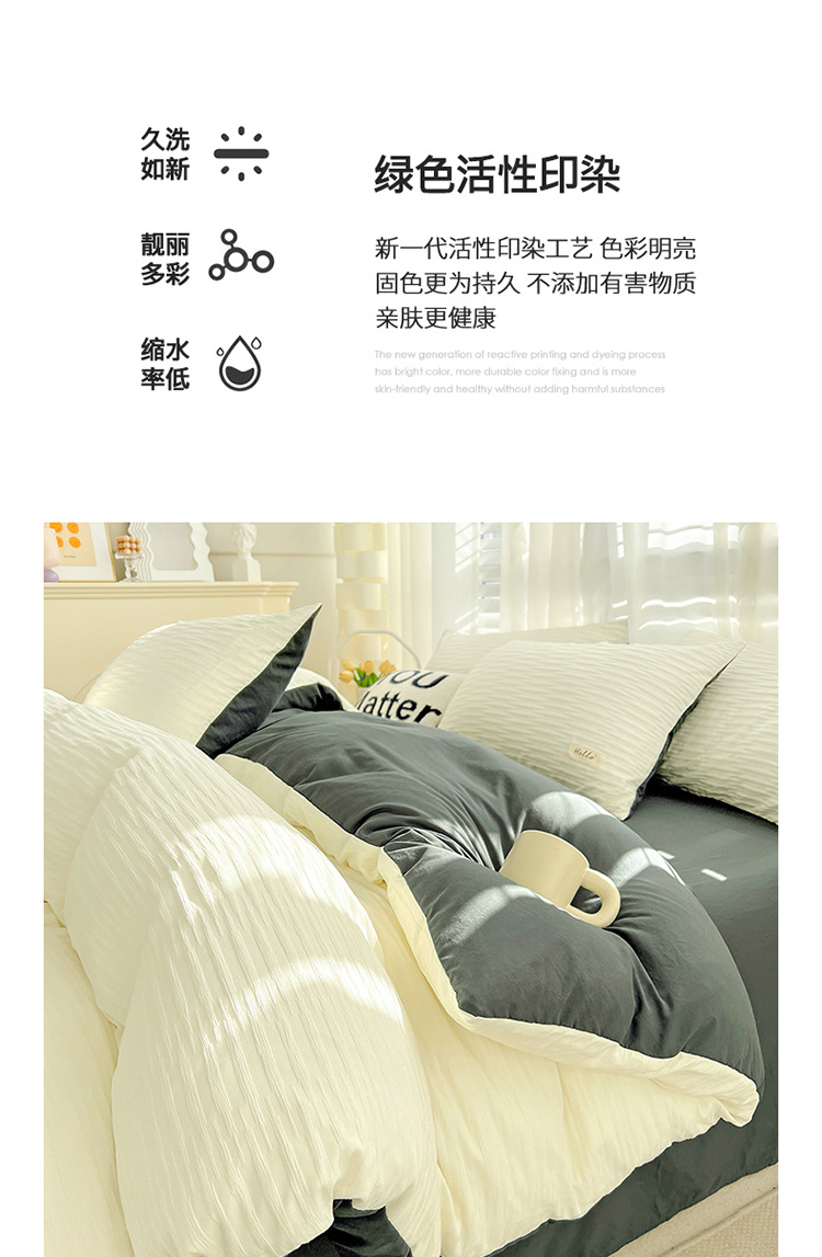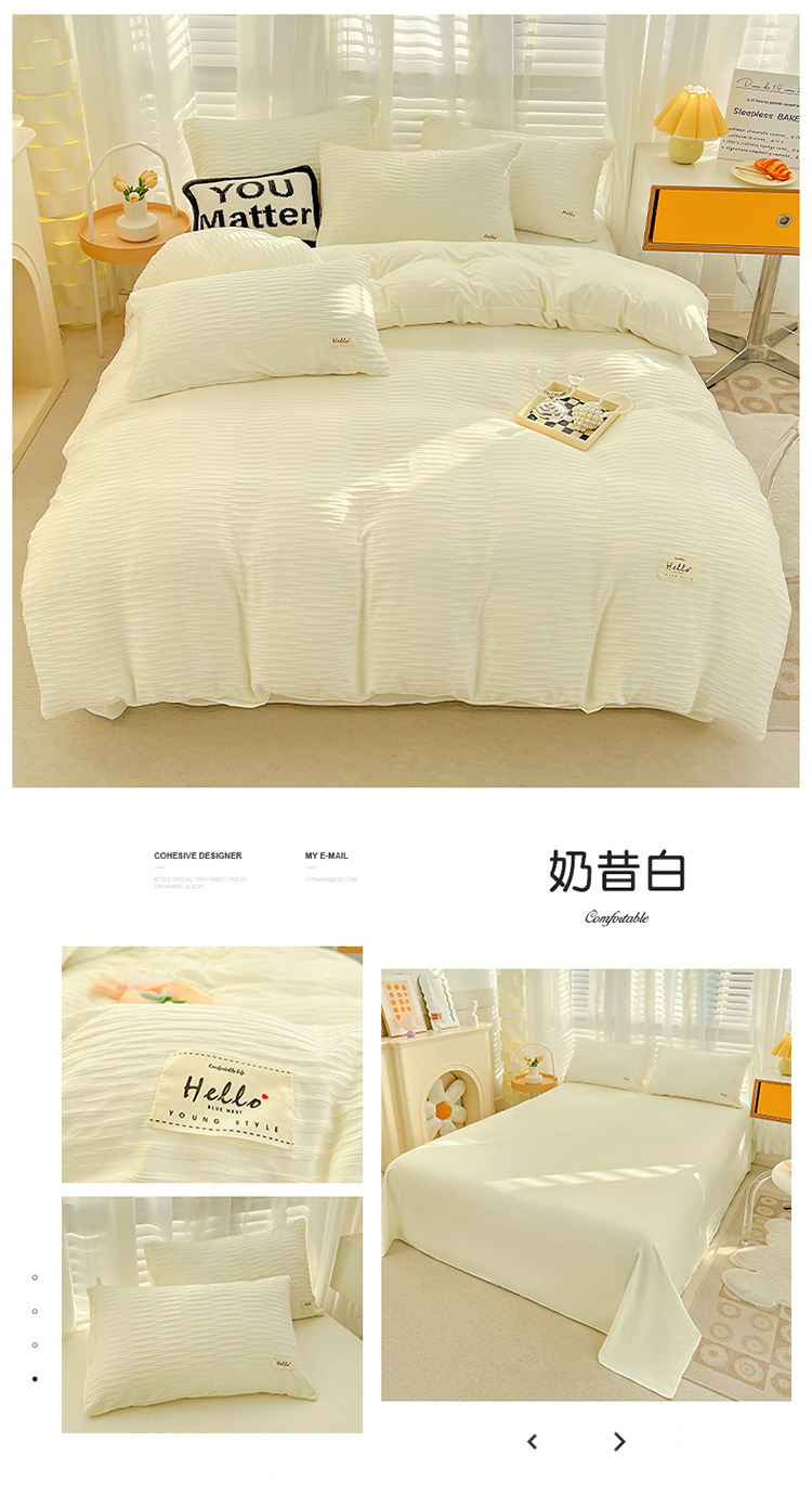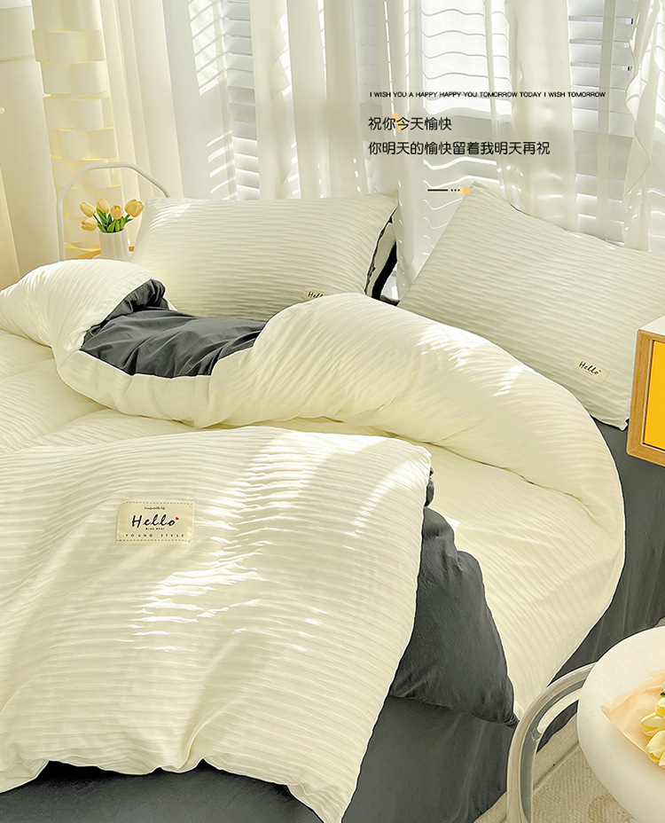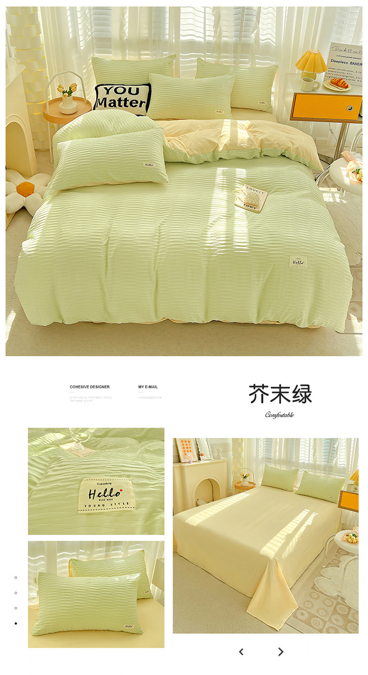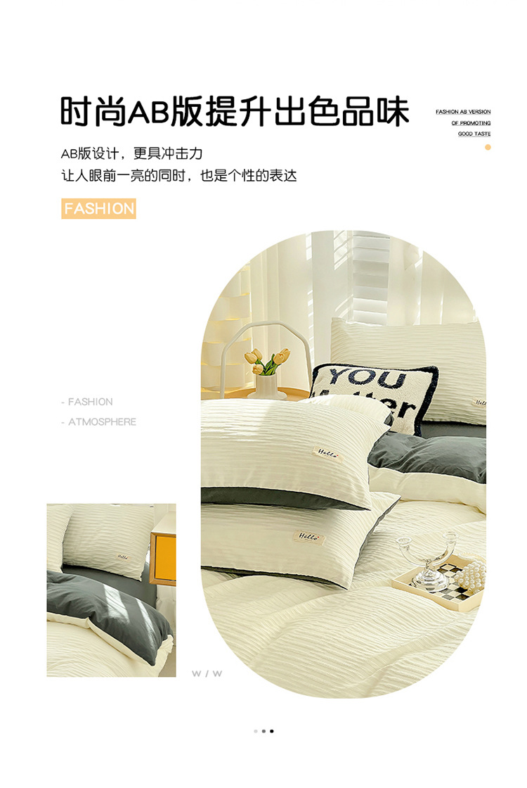 Cuatro juegos de algodón lavado de agua INS pueden dormir desnudos, sábanas y edredones sólidos, tres juegos de ropa de cama y edredones en el dormitorio de estudiantes.