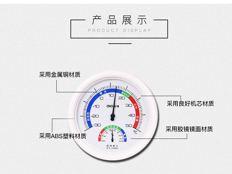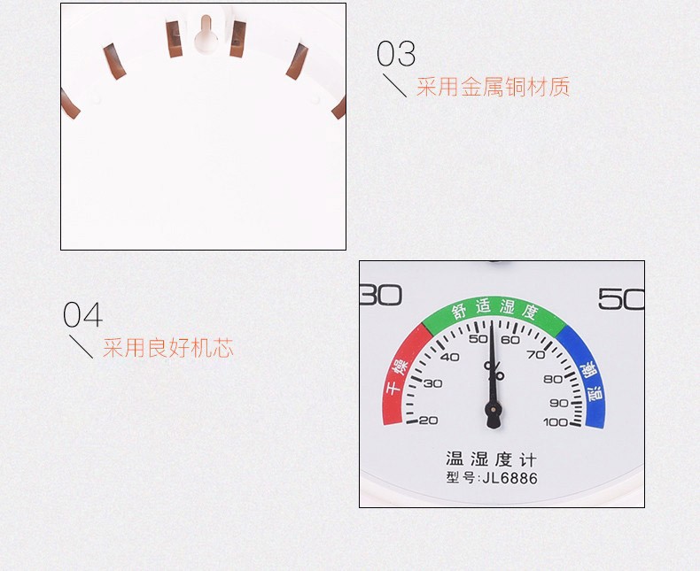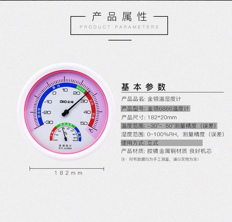 Termómetro de cuello dorado 6886 termómetro de oficina familiar, termómetro de gran tamaño interior y exterior colgado en la escuela