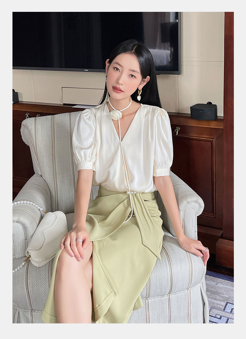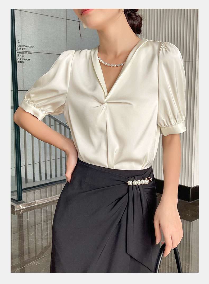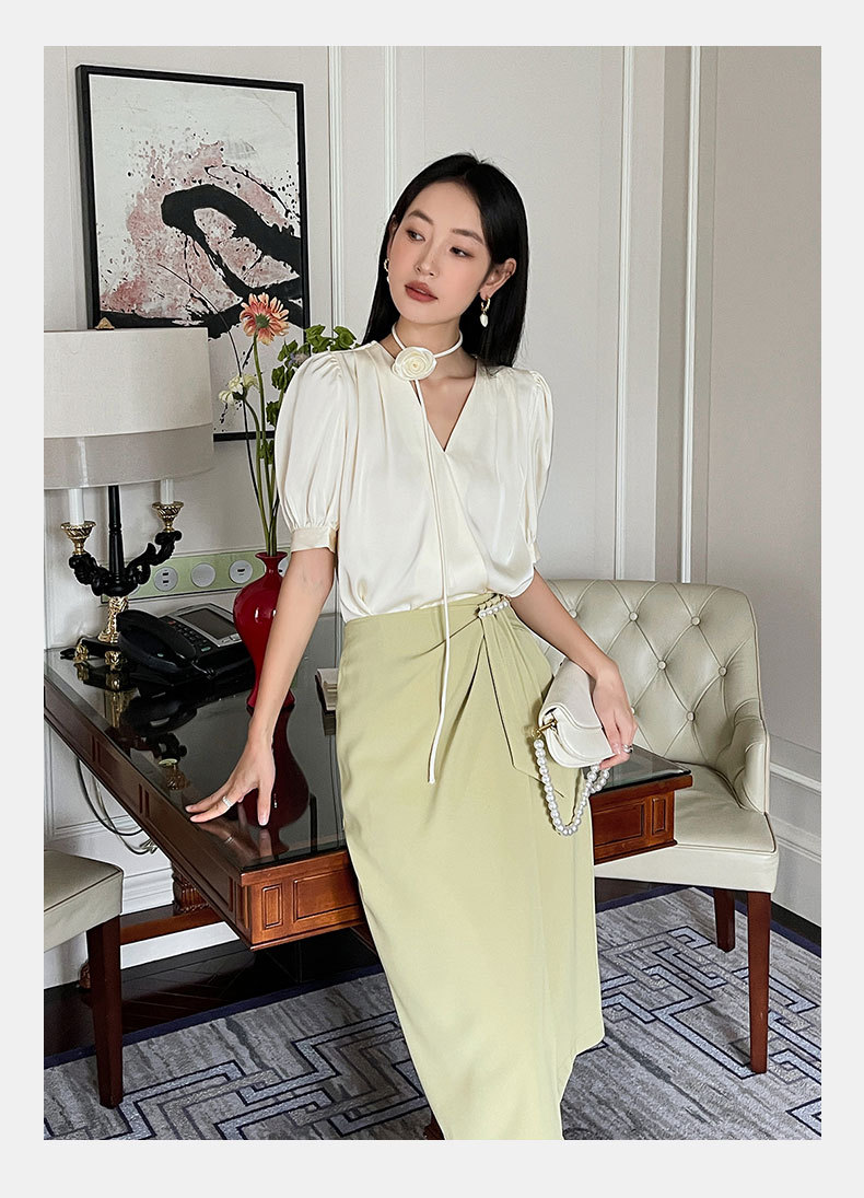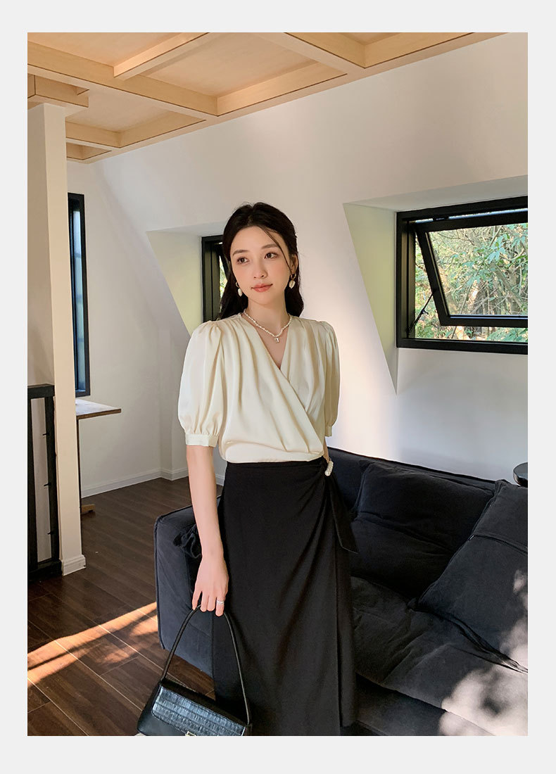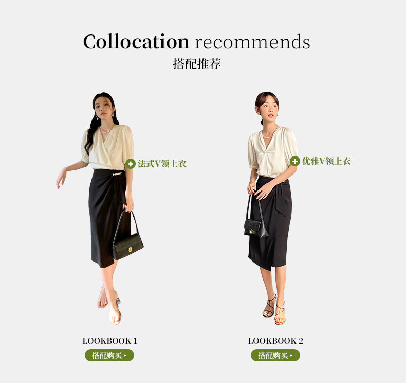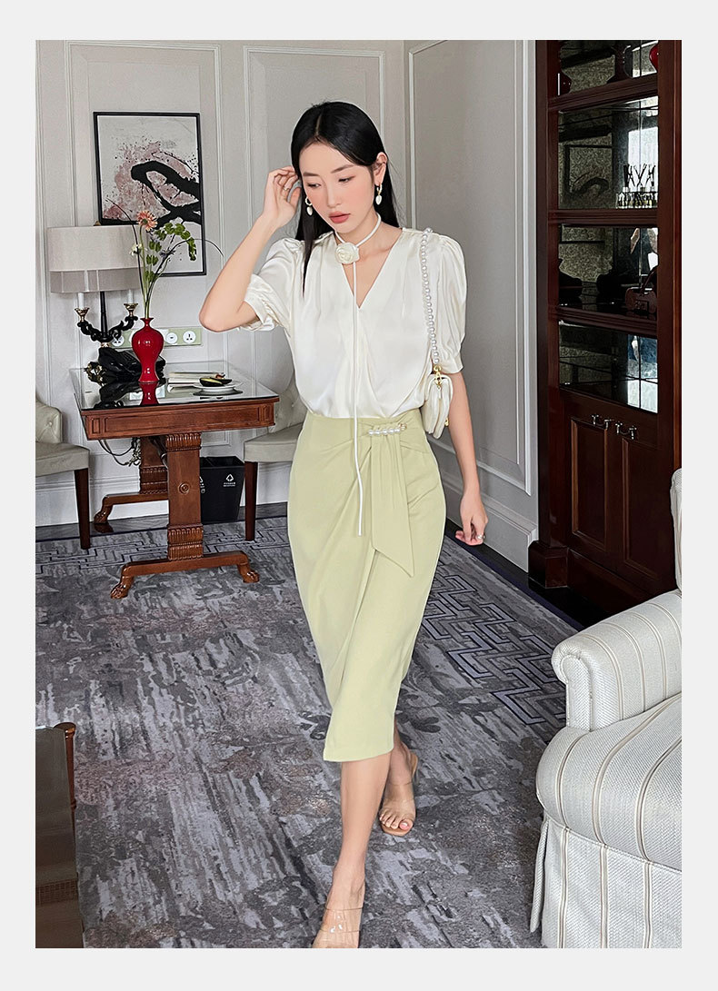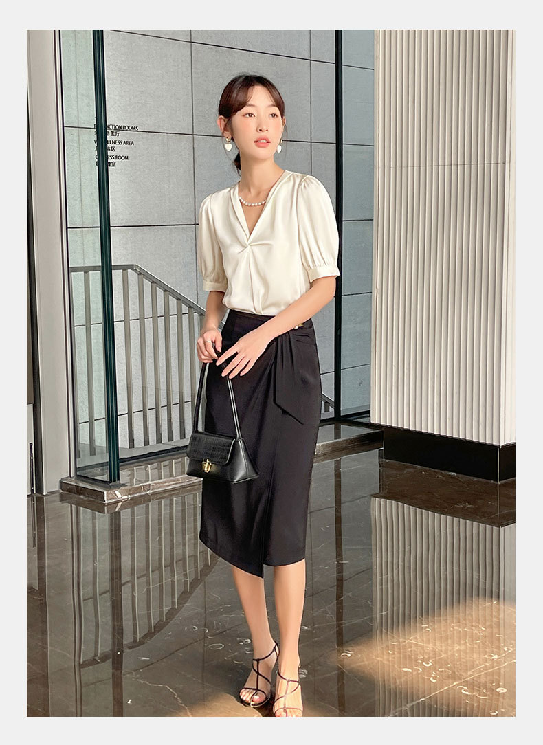 QiFan Summer Black half skirt elegant Travel half skirt Pearl Pins cut off show slender half skirt 80978