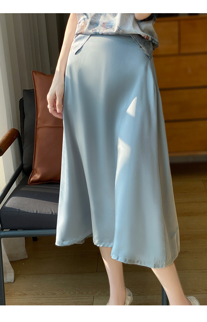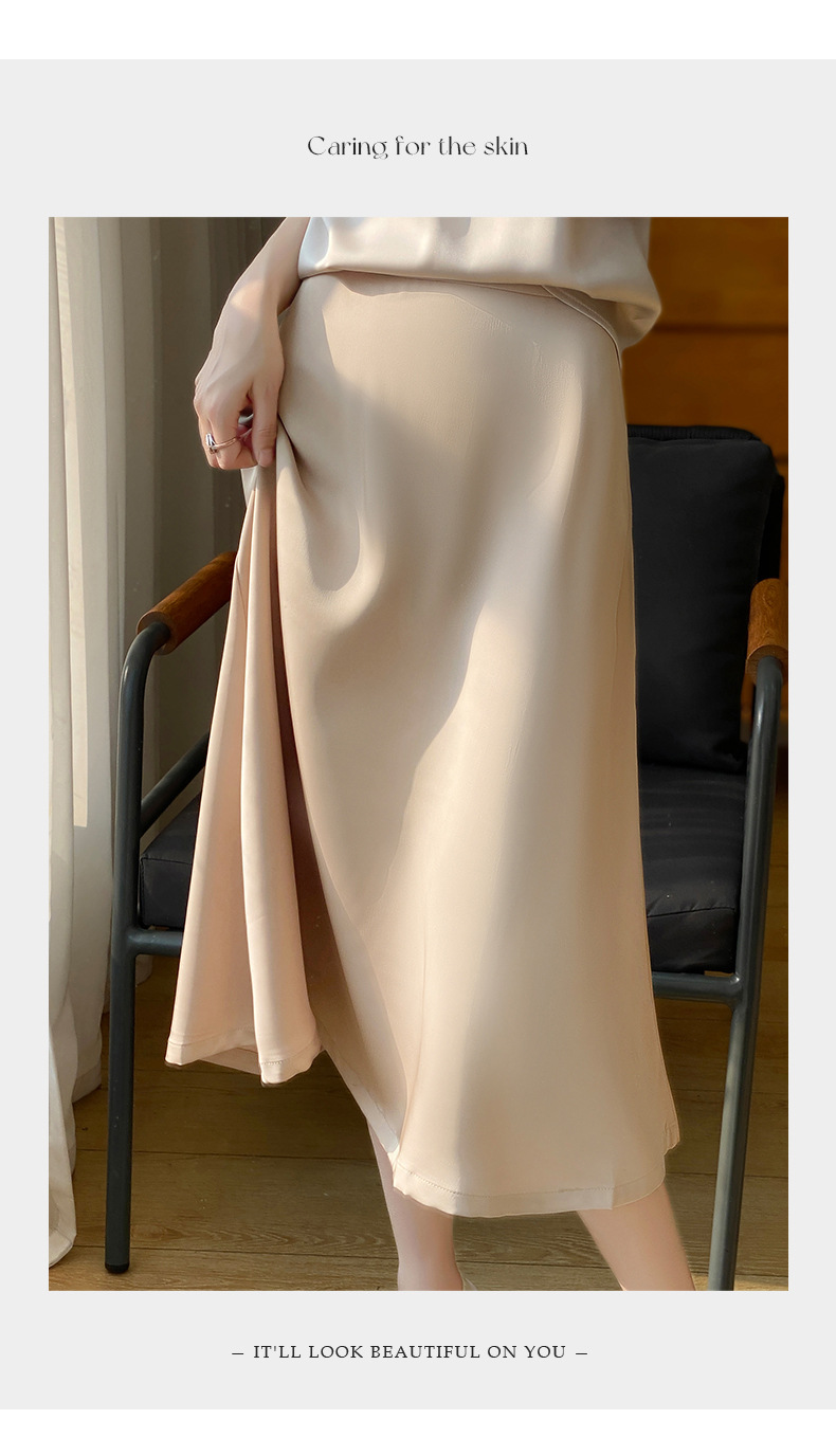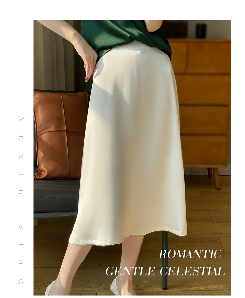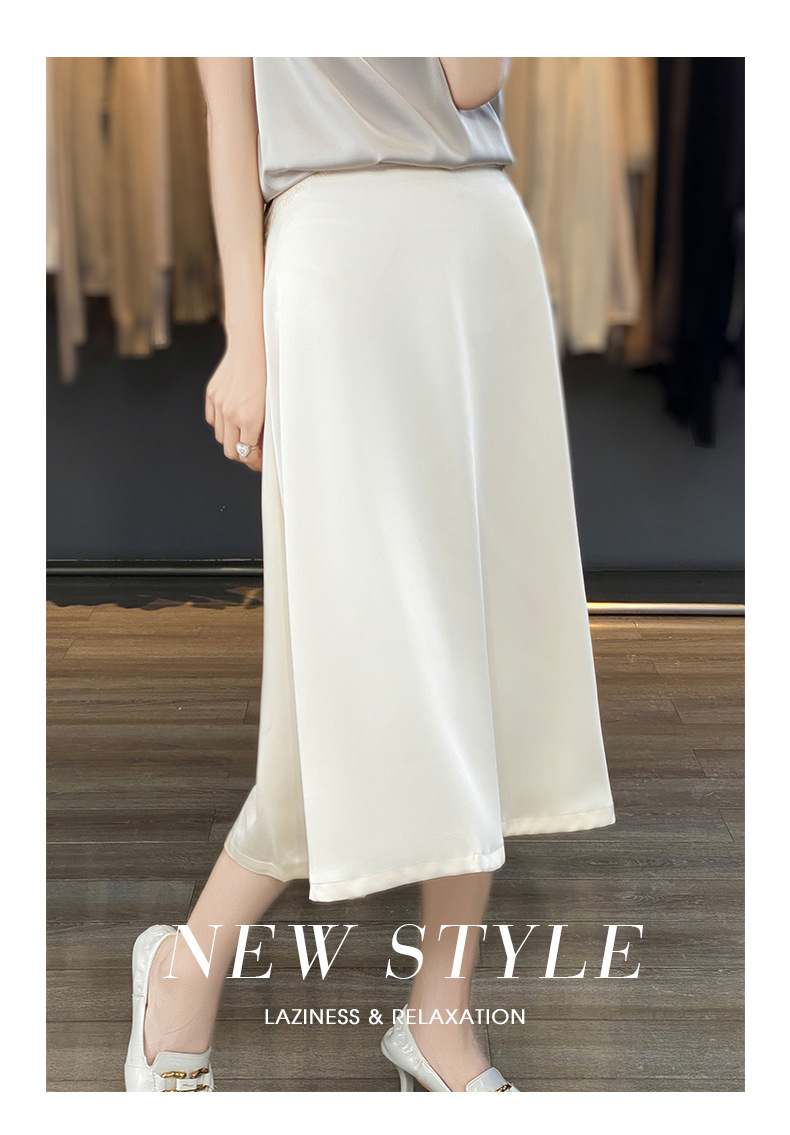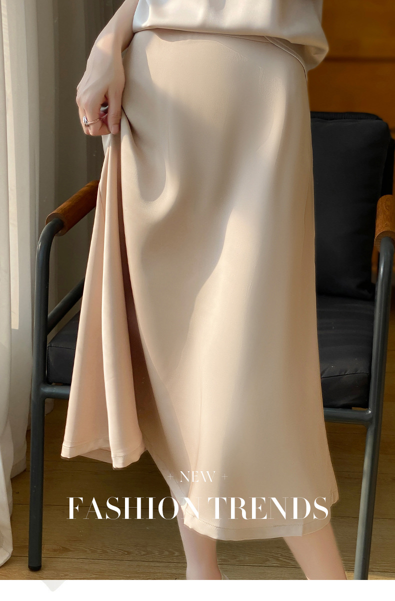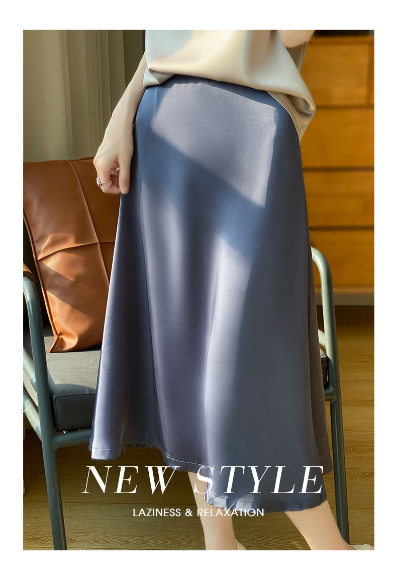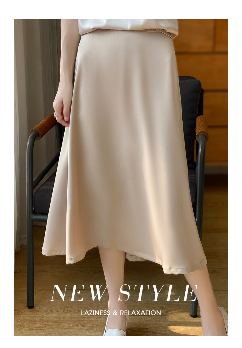 Las nuevas mujeres de primavera y verano 2024 vienen con faldas de moda de color sólido y faldas de alta cintura simuladas de satén de seda delgadas en forma de A.