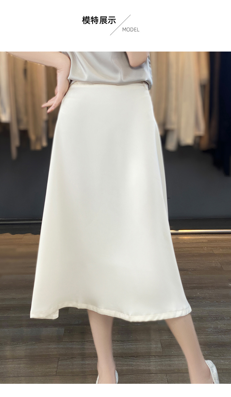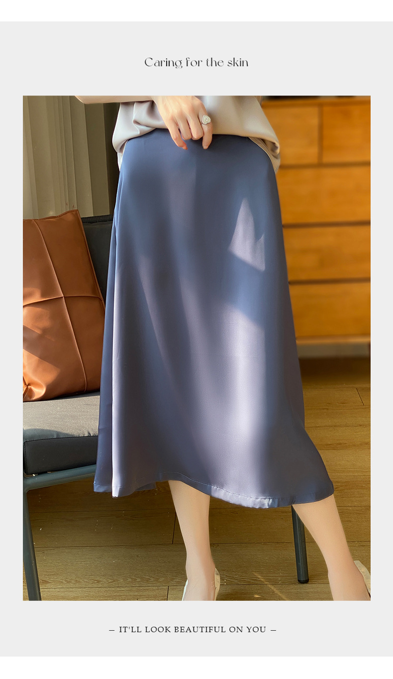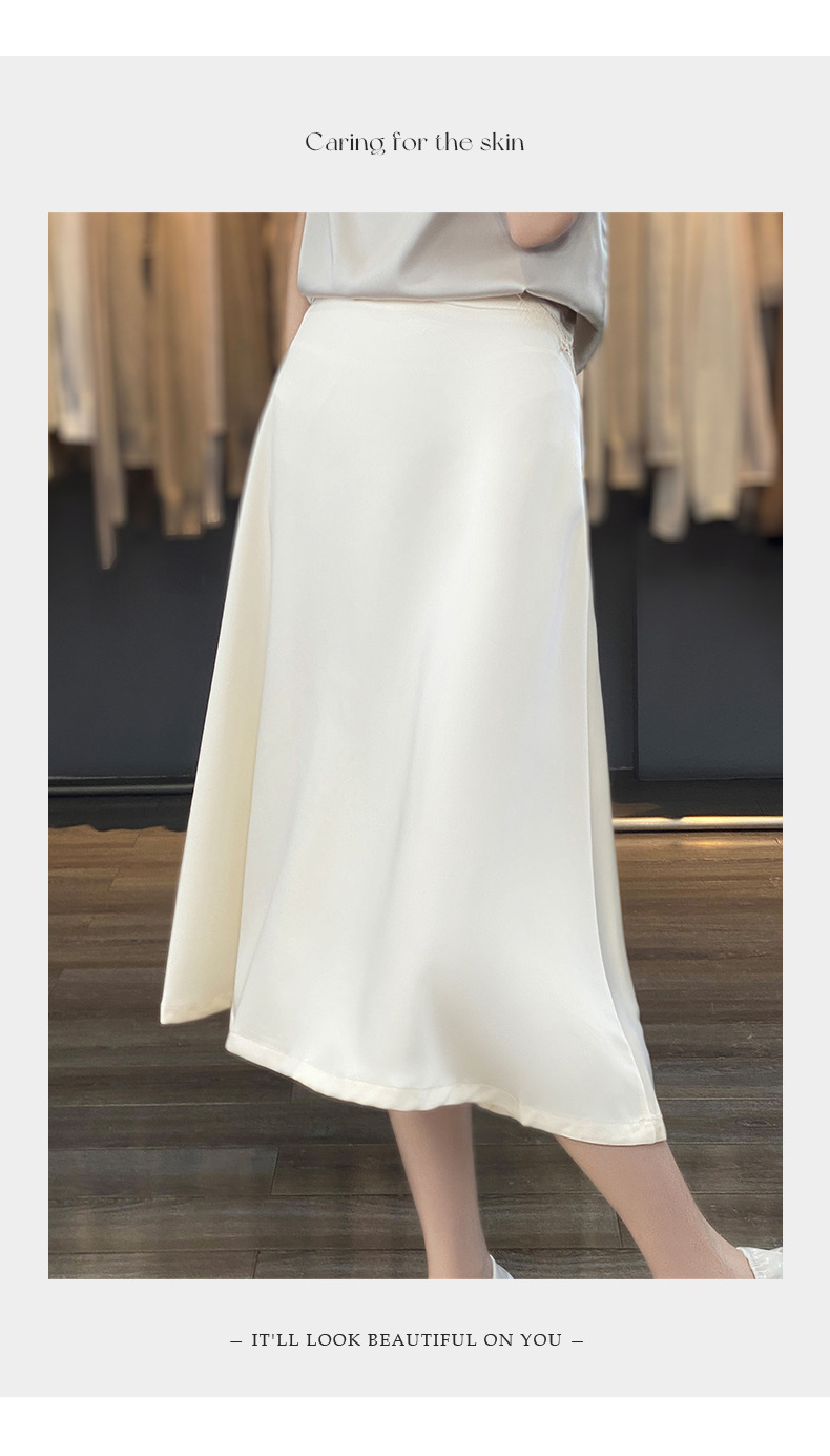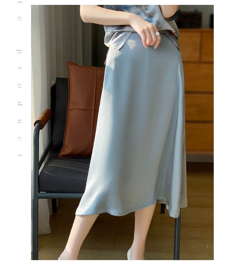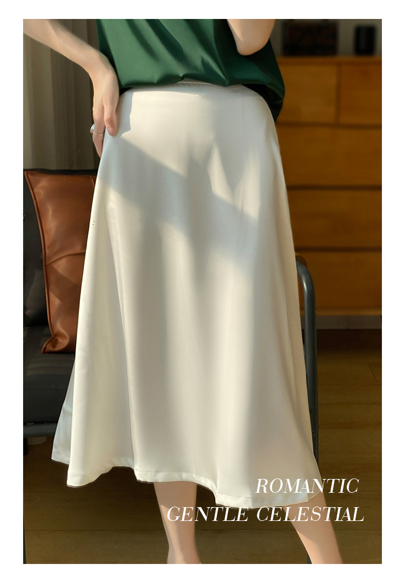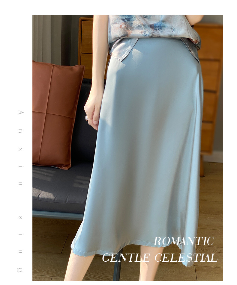Las nuevas mujeres de primavera y verano 2024 vienen con faldas de moda de color sólido y faldas de alta cintura simuladas de satén de seda delgadas en forma de A.
