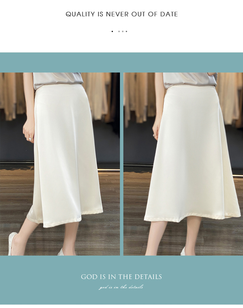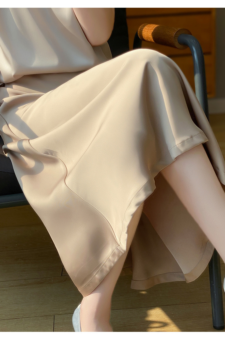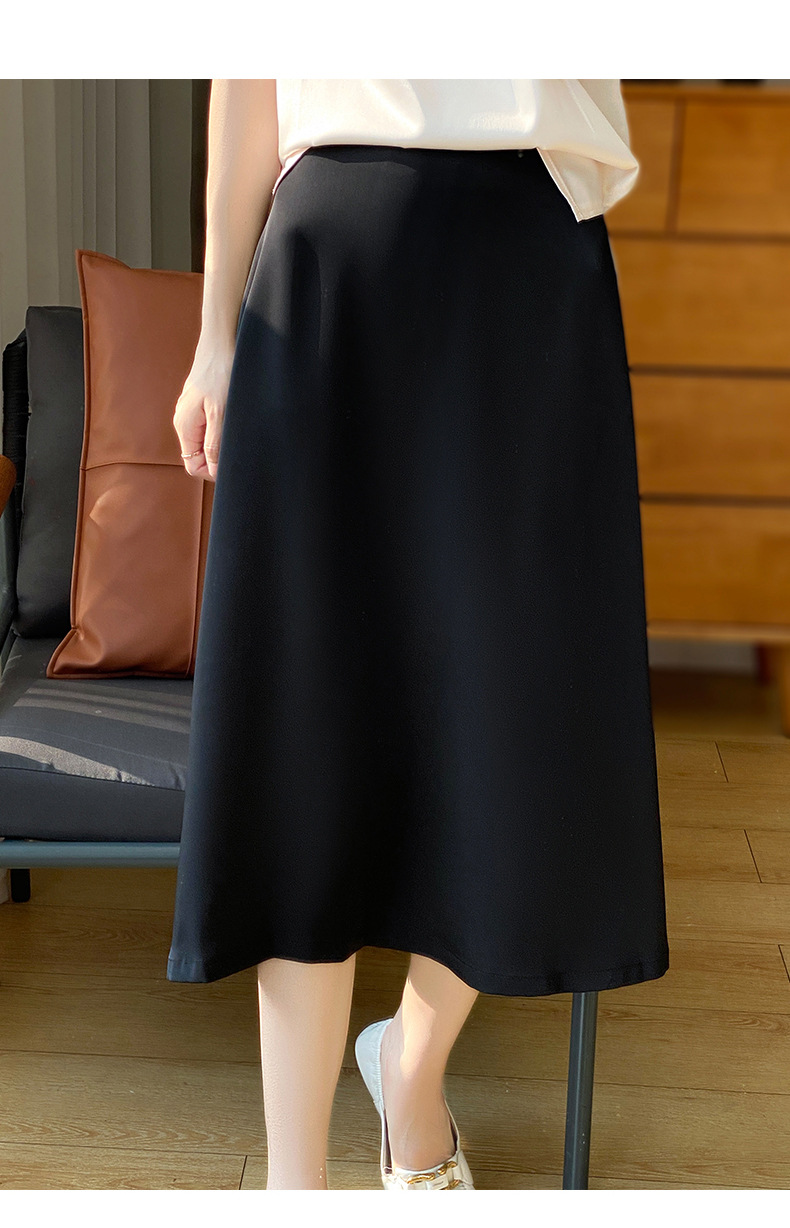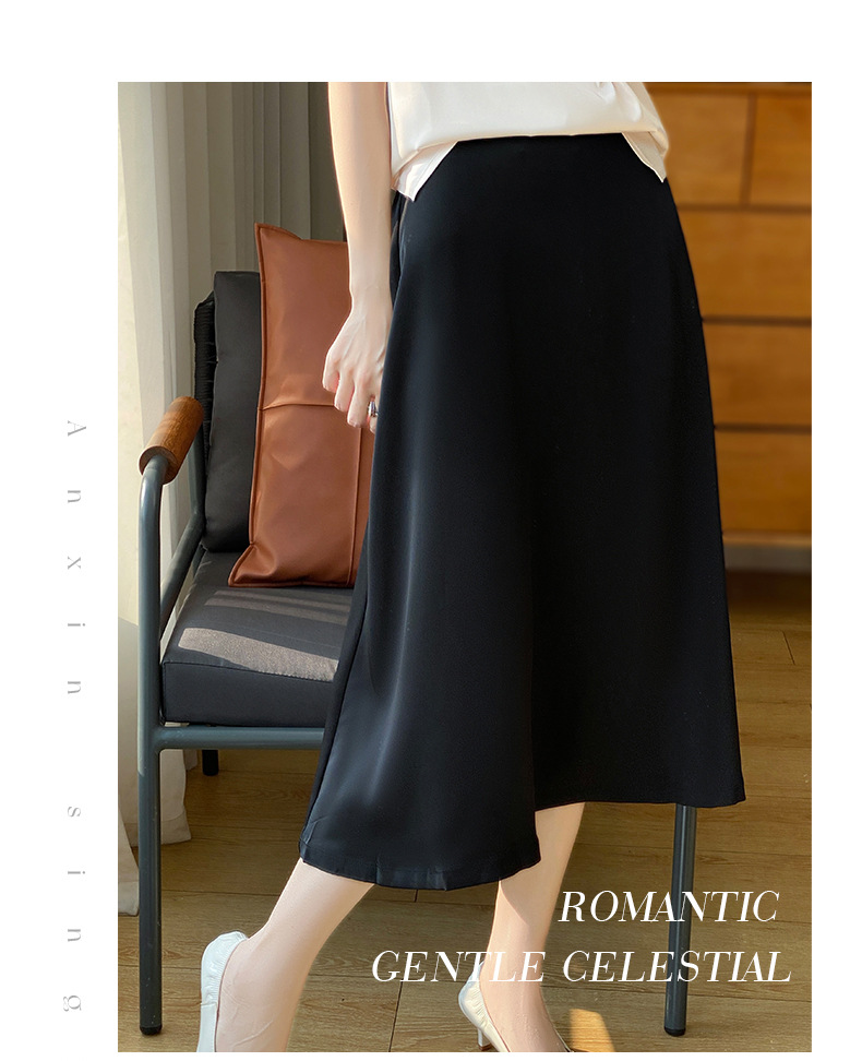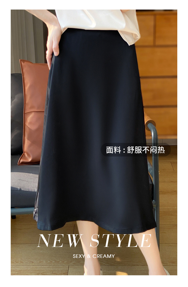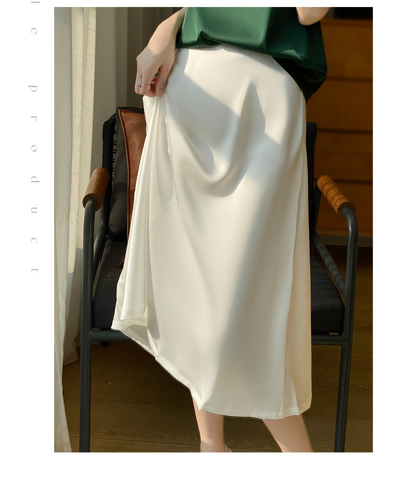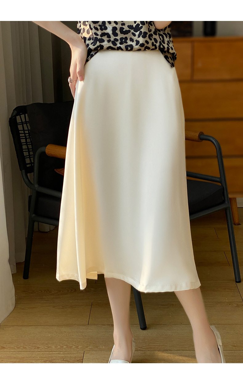 Las nuevas mujeres de primavera y verano 2024 vienen con faldas de moda de color sólido y faldas de alta cintura simuladas de satén de seda delgadas en forma de A.