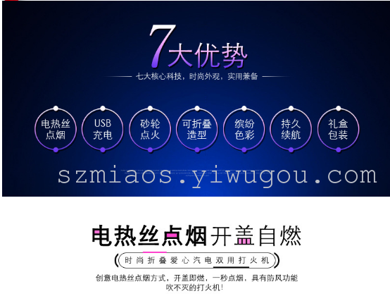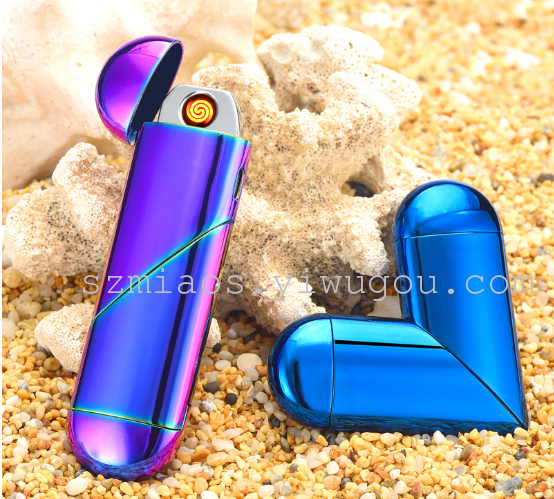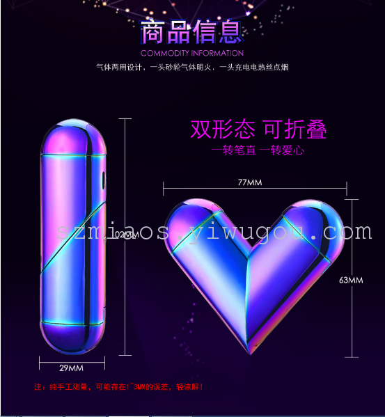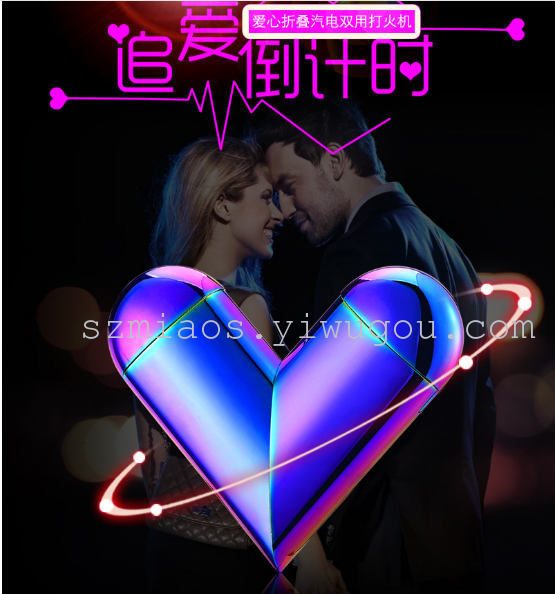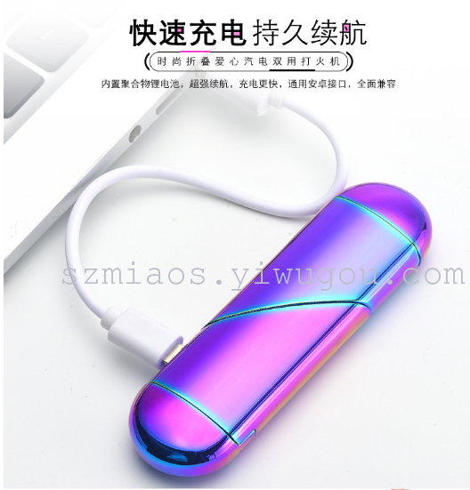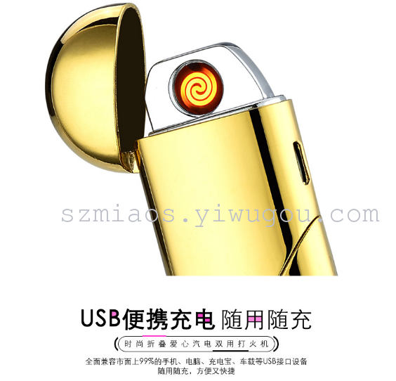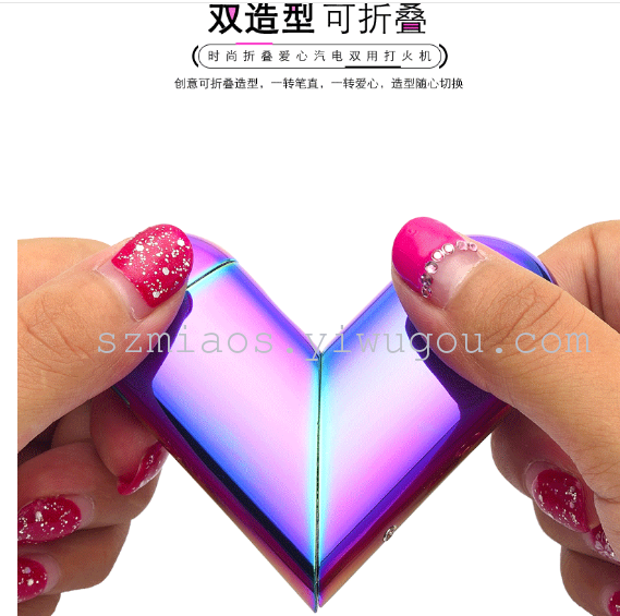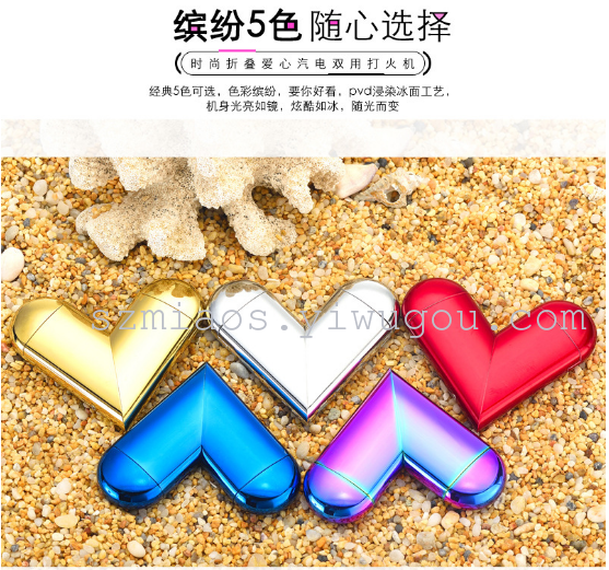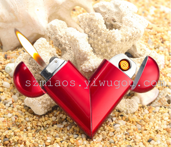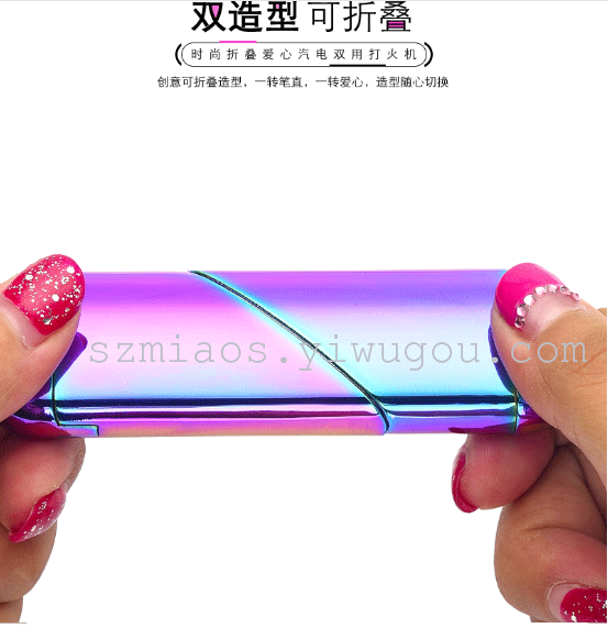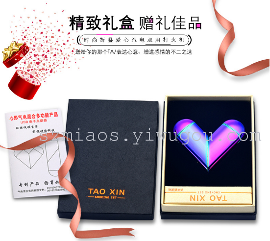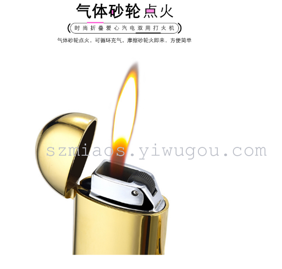 El encendedor de cigarrillos de carga USB de doble uso plegable de amor es a prueba de viento, la rueda de moler del encendedor está abierta al fuego.