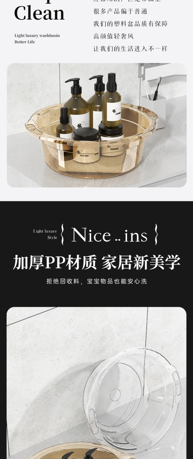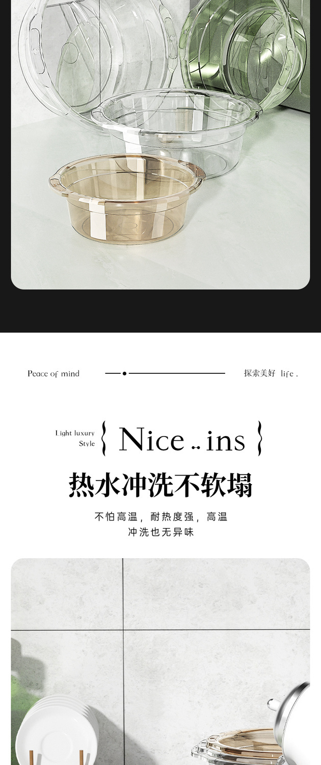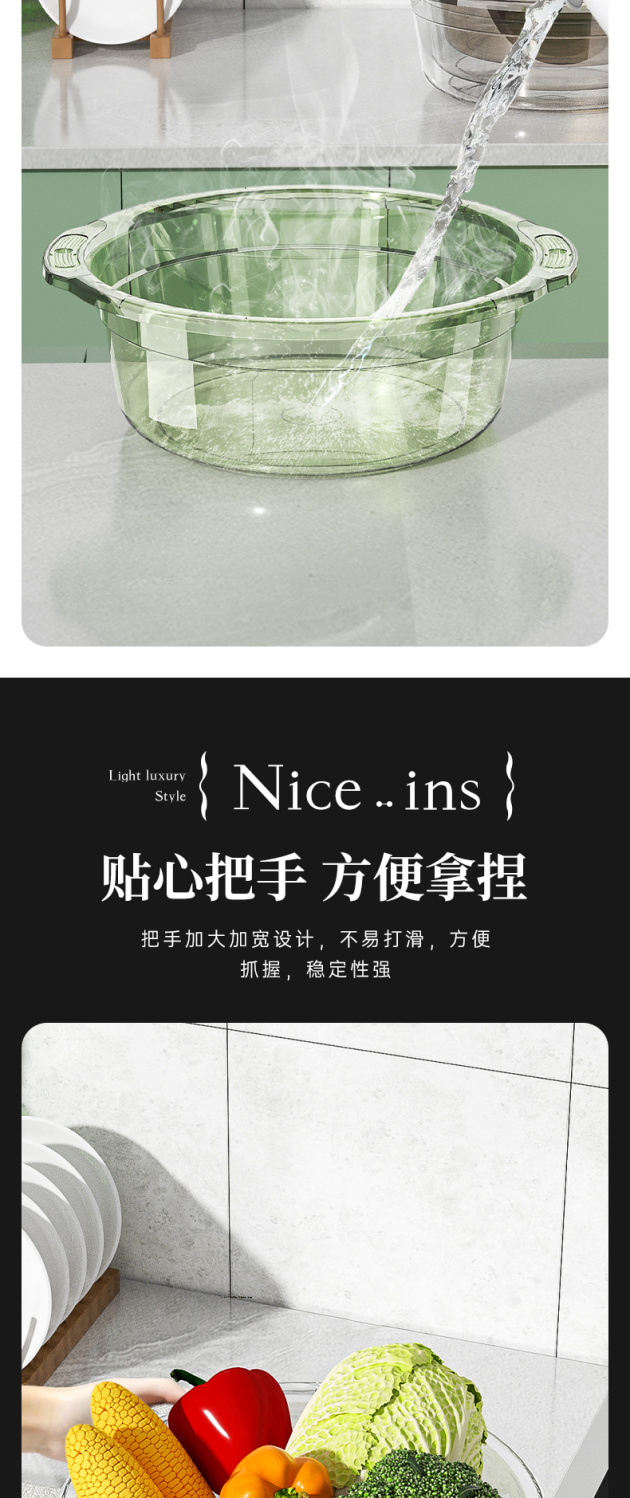 Xingou engrosa la maceta transparente, el lavabo del bebé en el dormitorio de estudiantes, el lavabo de verduras, el lavabo de frutas y el lavabo de plástico para los pies.