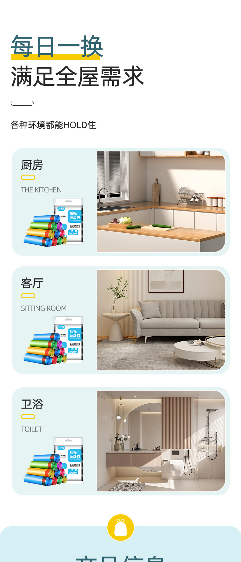 Bolsa de basura de cuerda de extracción bolsa de basura negra de cocina portátil mediana y grande engrosada por el hogar, aumento de la bolsa de plástico asequible