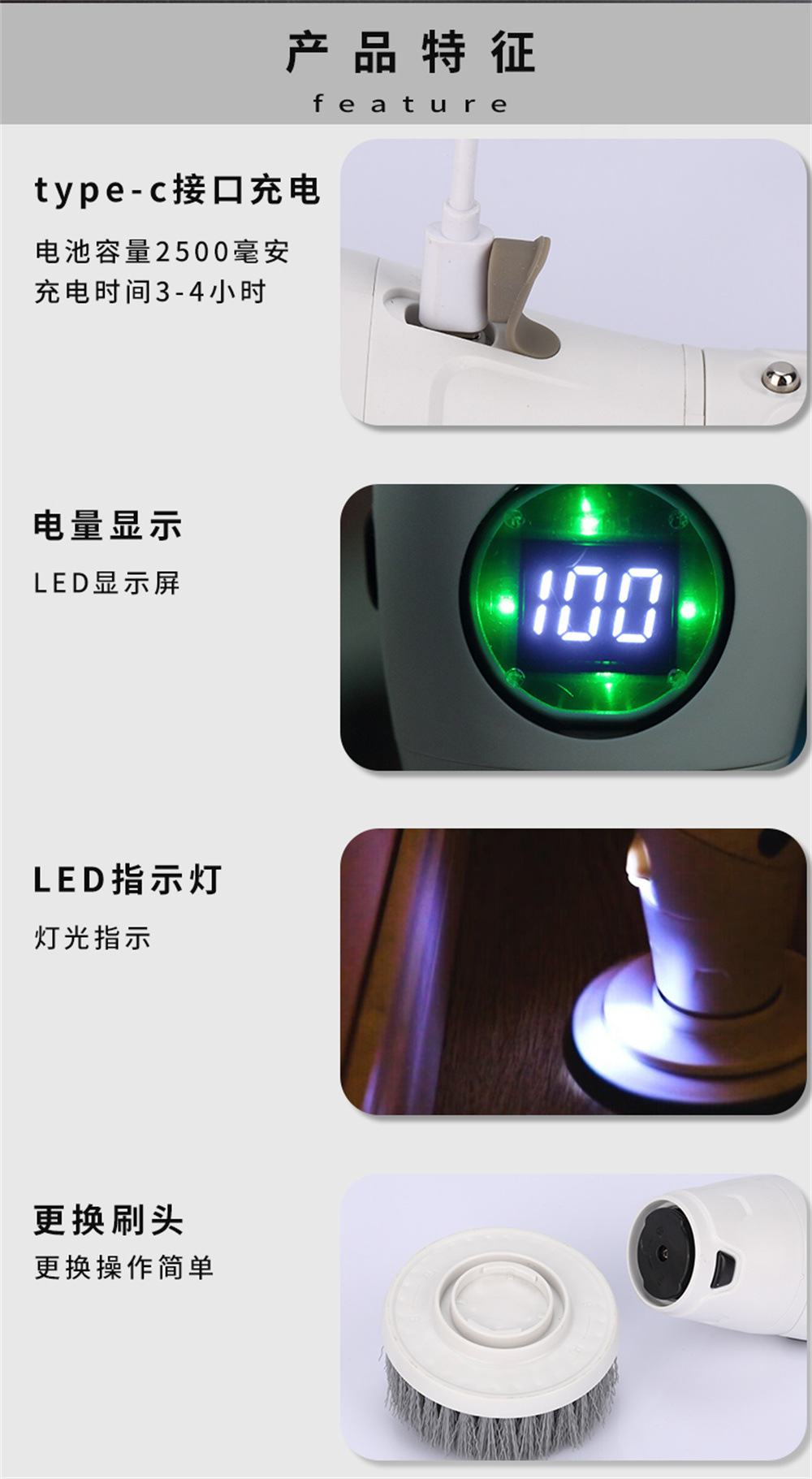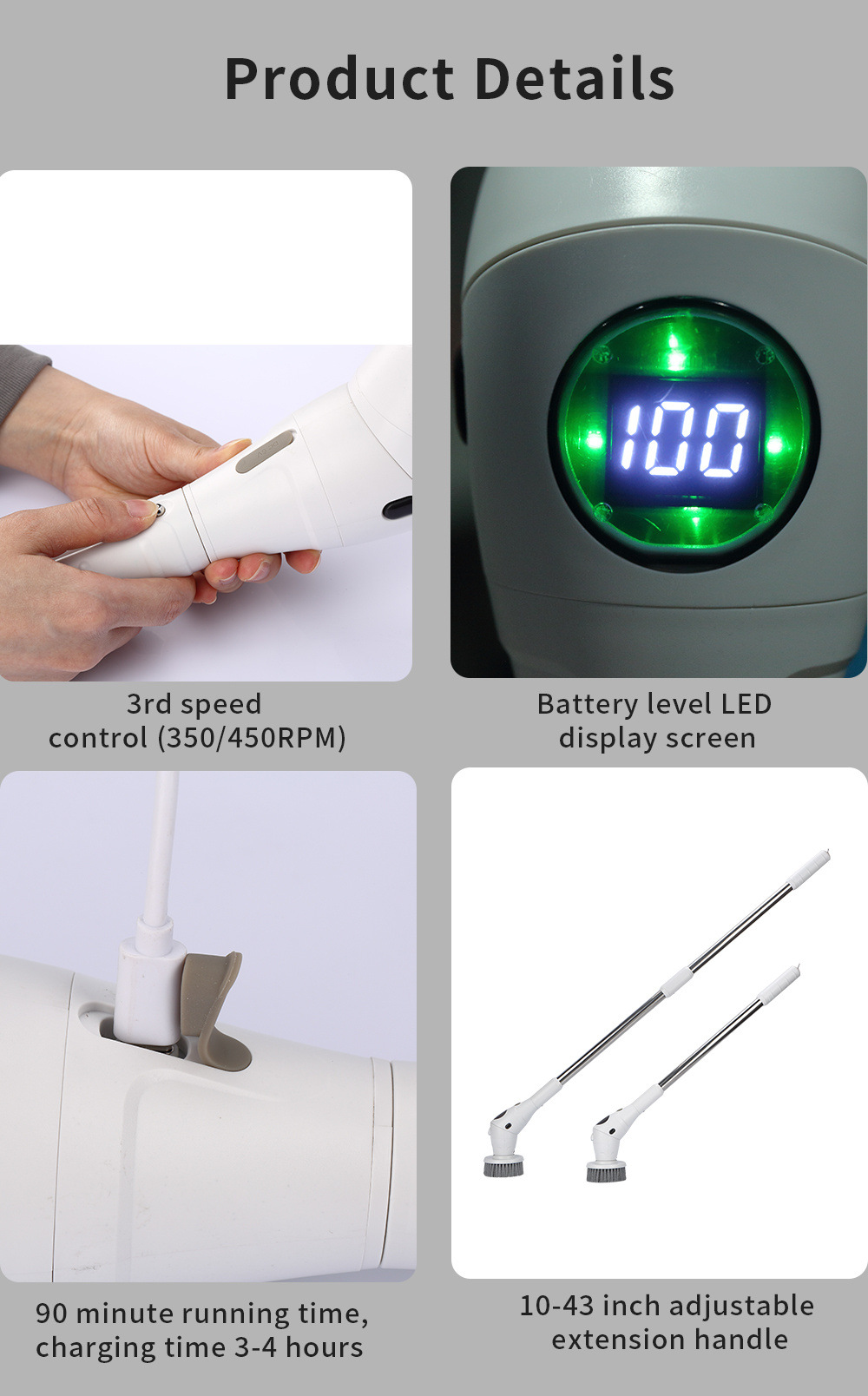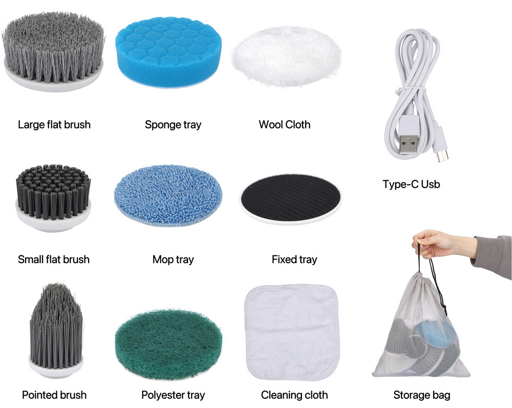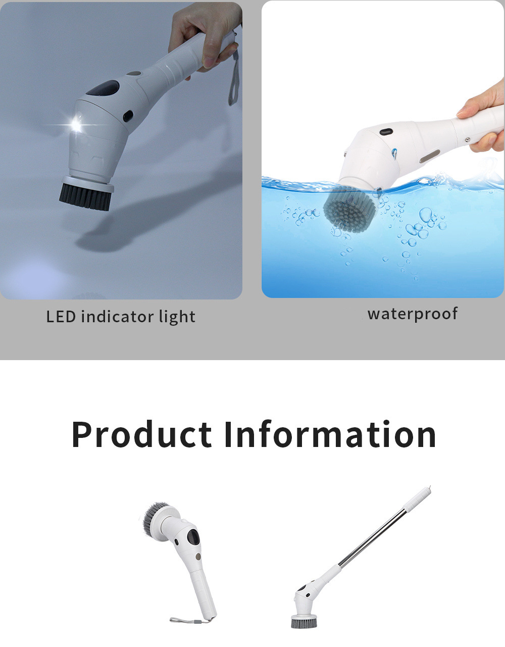 Nuevo cepillo de limpieza eléctrico, ocho en una pantalla, tres marchas, luz nocturna giratoria, cepillo de limpieza inalámbrico impermeable multifuncional
