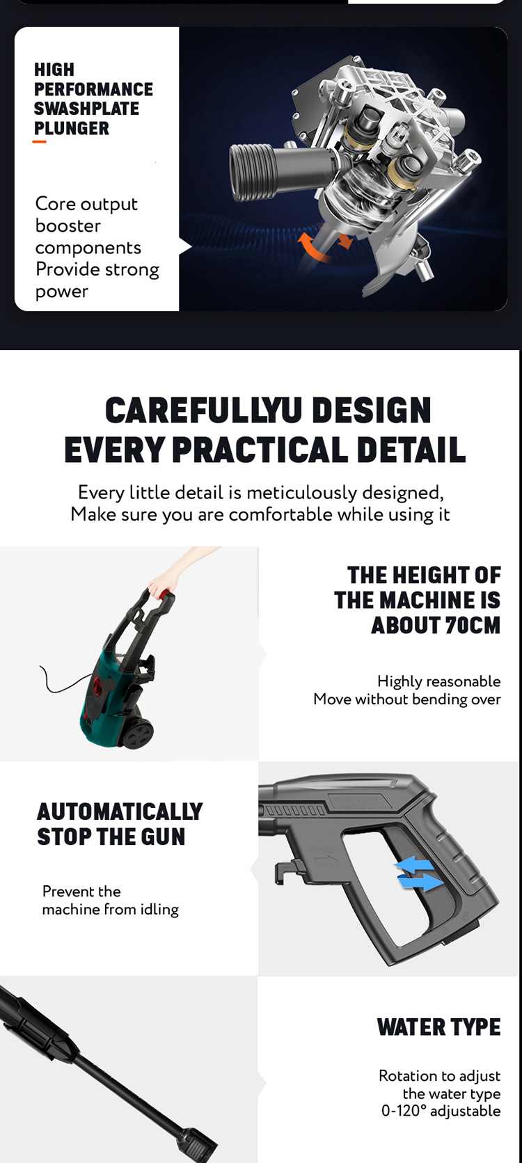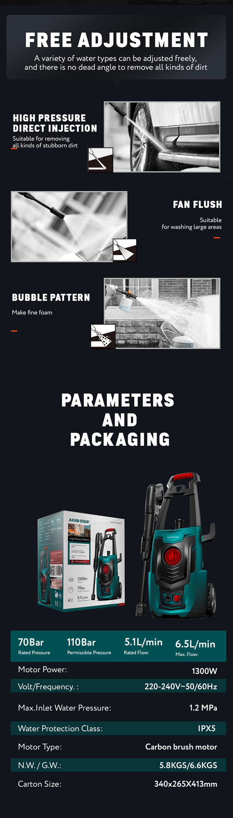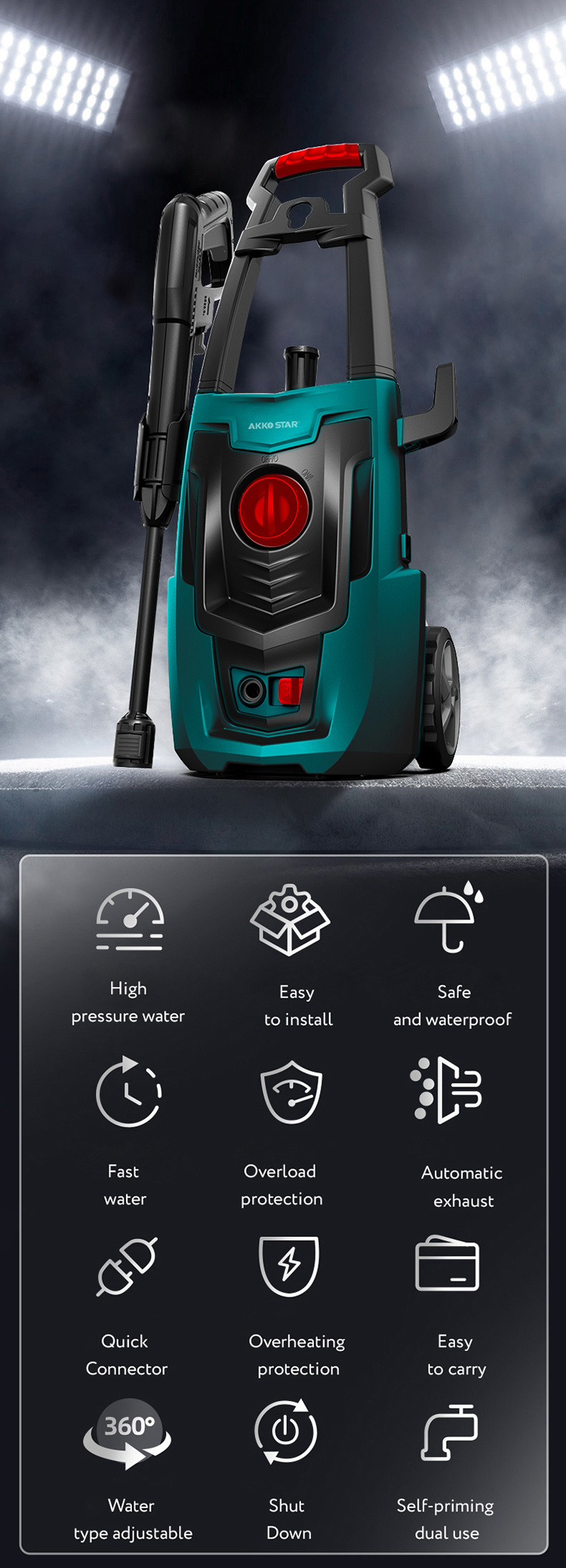 Akkostar 1300w 220V artefacto portátil de lavado de automóviles de bomba de agua de alta presión para uso doméstico