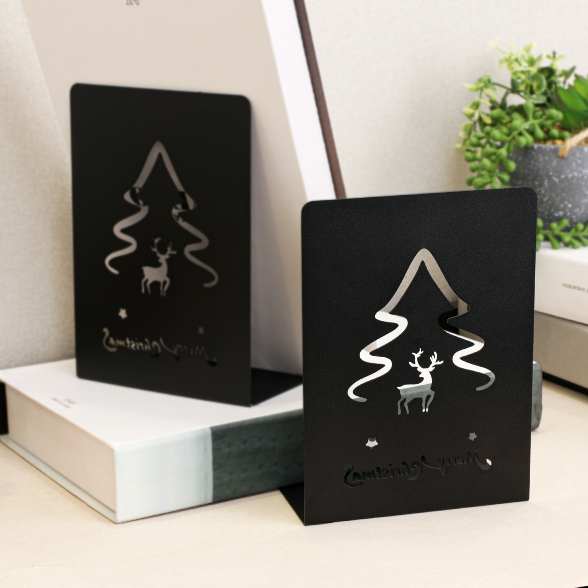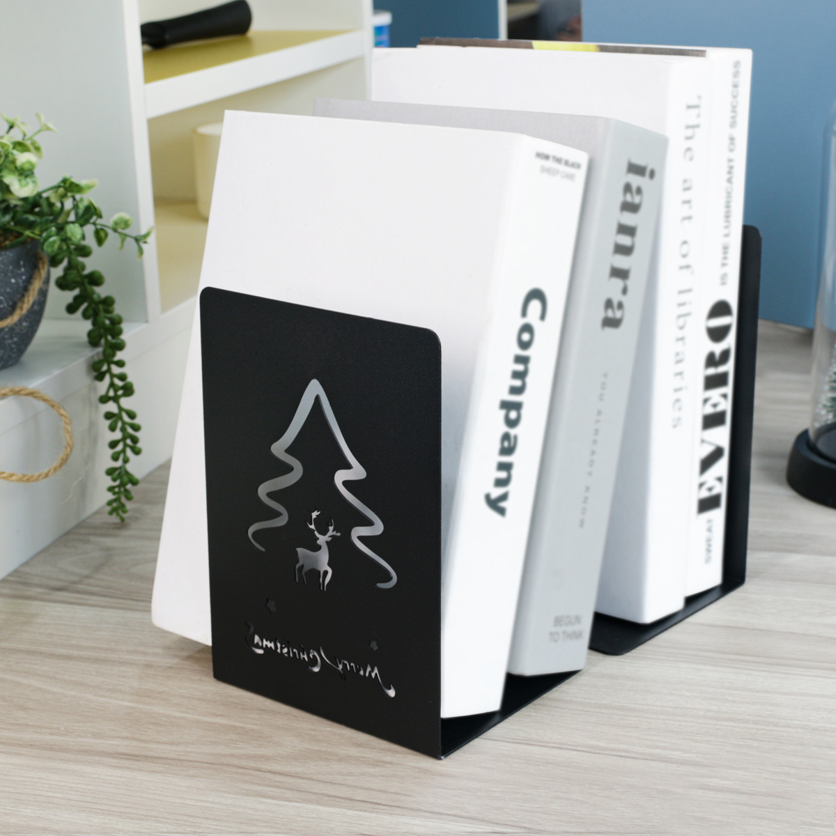 2pcs Black Metal Decoration bookstore Creative Christmas tree ELK Pattern Design Book archive Creative Black Metal Book