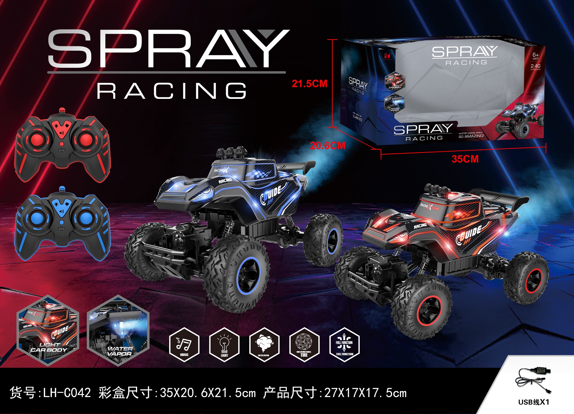 Nuevo producto spray de iluminación coche de juguete eléctrico para niños coche de juguete eléctrico de cuatro ruedas de control remoto coche de escalada todoterreno música yhc042