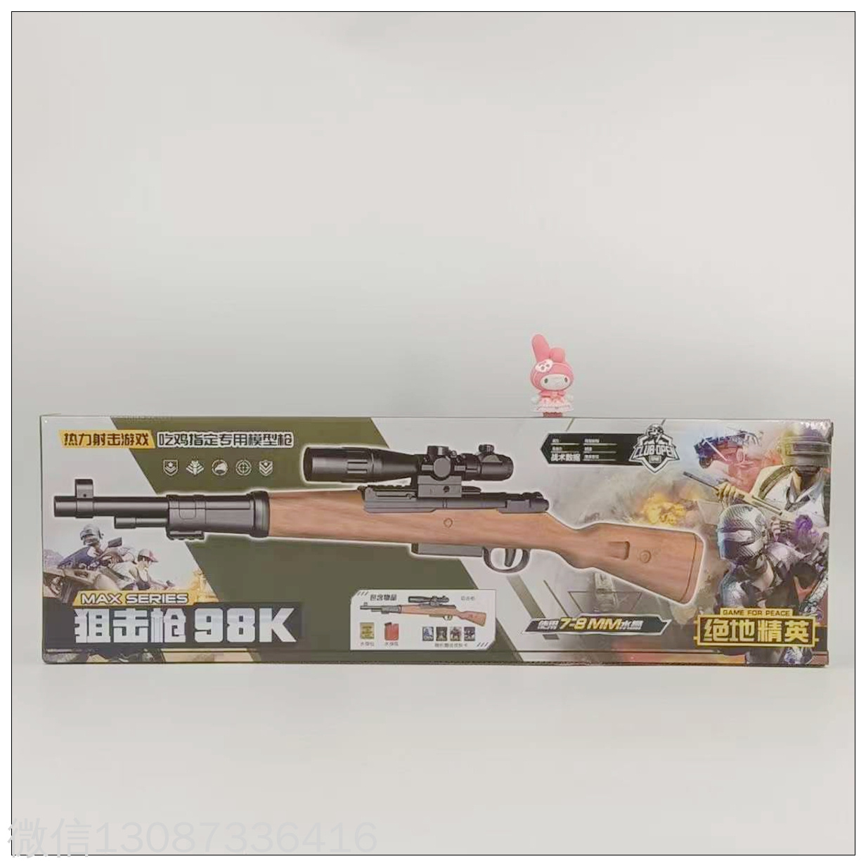 备注: 产品名称:98K狙击枪,吃鸡游戏专用枪 产品外包装尺寸:62*20*5厘米 包装方式:彩盒,带开窗 外箱尺寸:69*63*79.5公分 毛重/净重:23公斤/20公斤 型号:S3344 装箱方式:48件/箱,一箱起批 运输:发物流,运费到付,批发不包邮,拍下后直接填写运费0即可。 报价不含税,更多新奇特产品请加微信 13087336416.