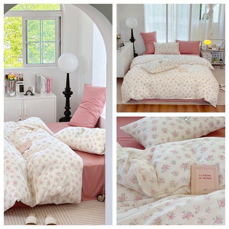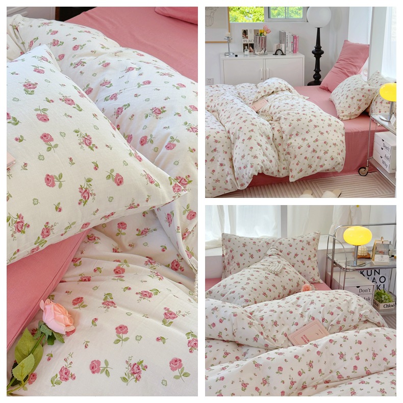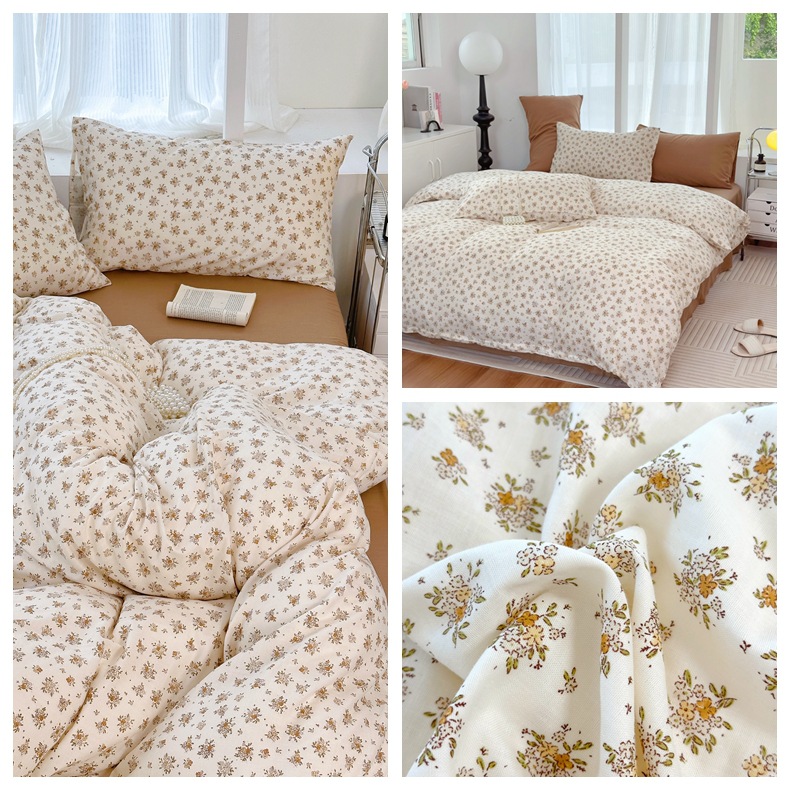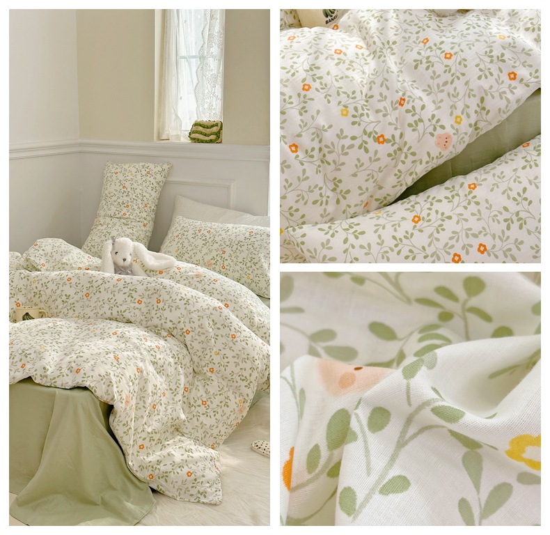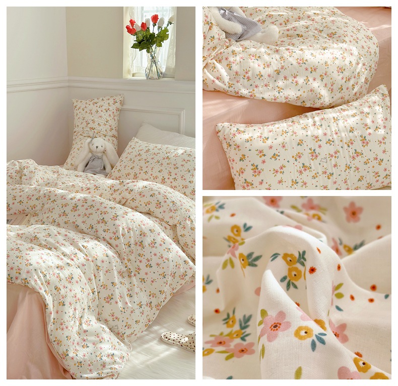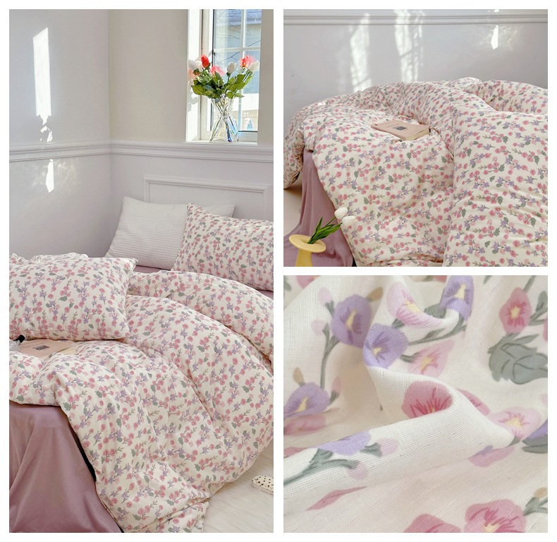 Clase a madre, bebé, bebé, hilo de doble capa de algodón puro, cuatro juegos de ropa de cama de Flores rotas de algodón de primavera y verano, flores de dibujos animados del dormitorio