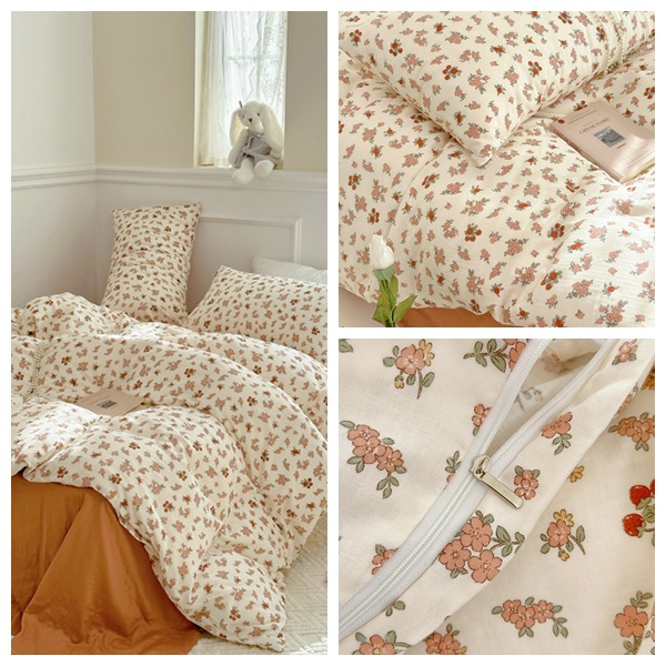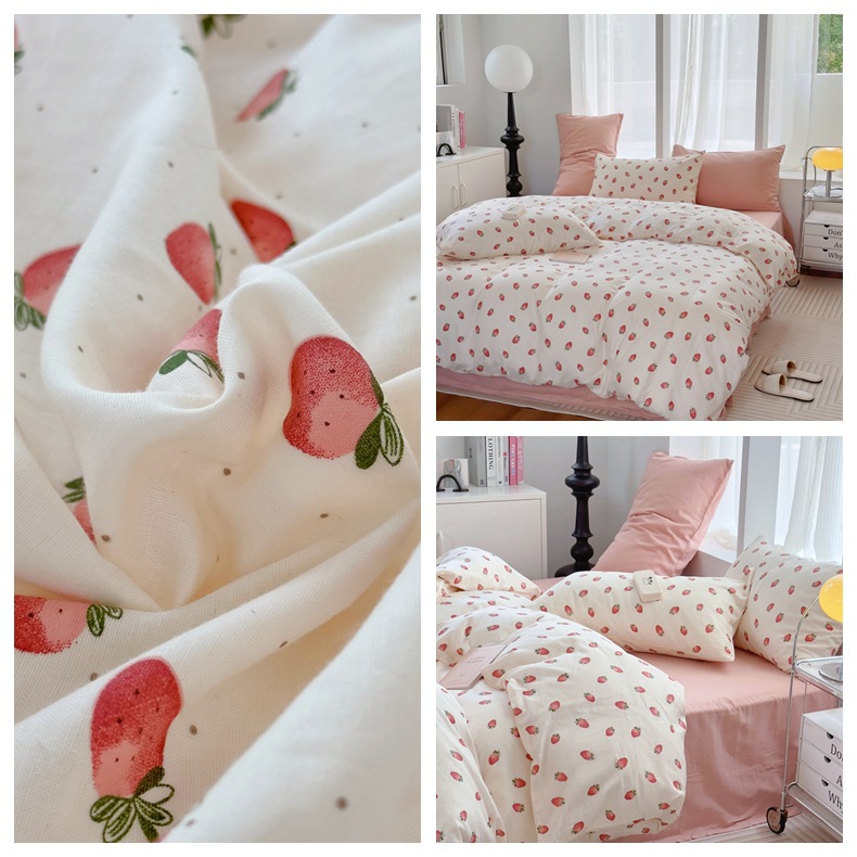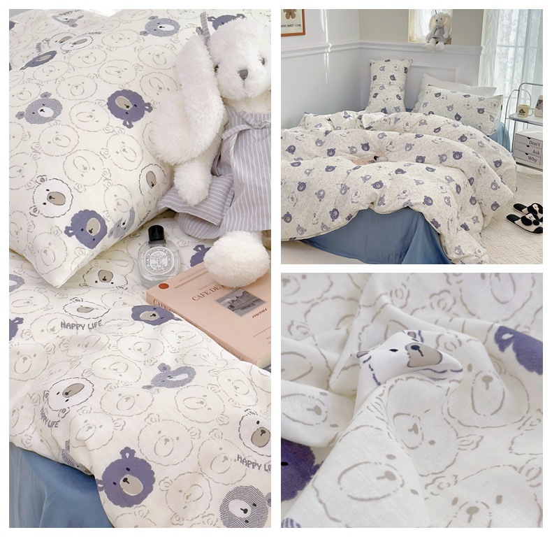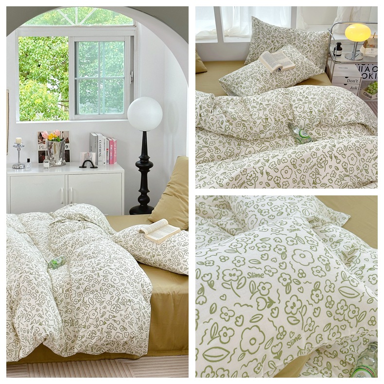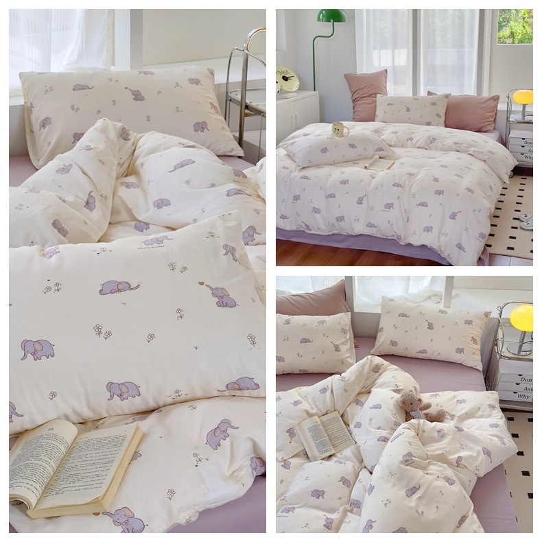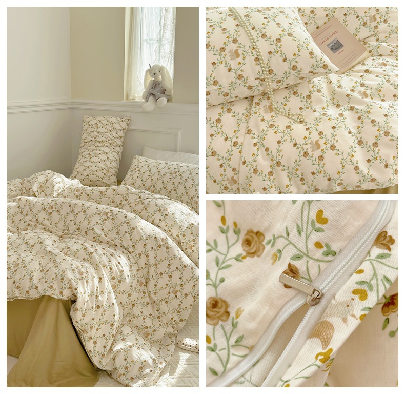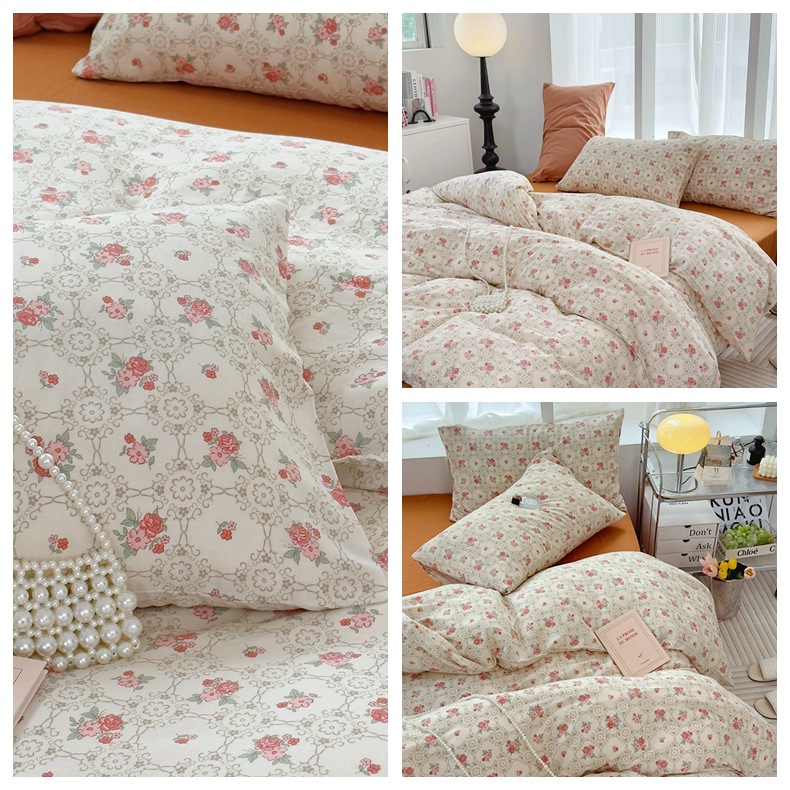 Clase a madre, bebé, bebé, hilo de doble capa de algodón puro, cuatro juegos de ropa de cama de Flores rotas de algodón de primavera y verano, flores de dibujos animados del dormitorio