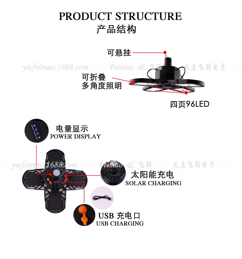 Lámpara de burbuja de bola de carga solar trébol 78led cuatro hojas 104led lámpara de emergencia multifuncional