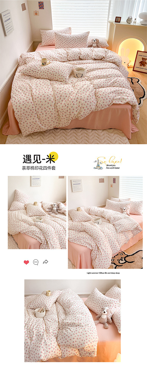 Juego de ropa de cama de cuatro piezas de hilo de doble capa de clase a juego de ropa de cama encantadora de dibujos animados juego de sábanas, edredones, edredones, dormitorios de algodón y lino de tres piezas