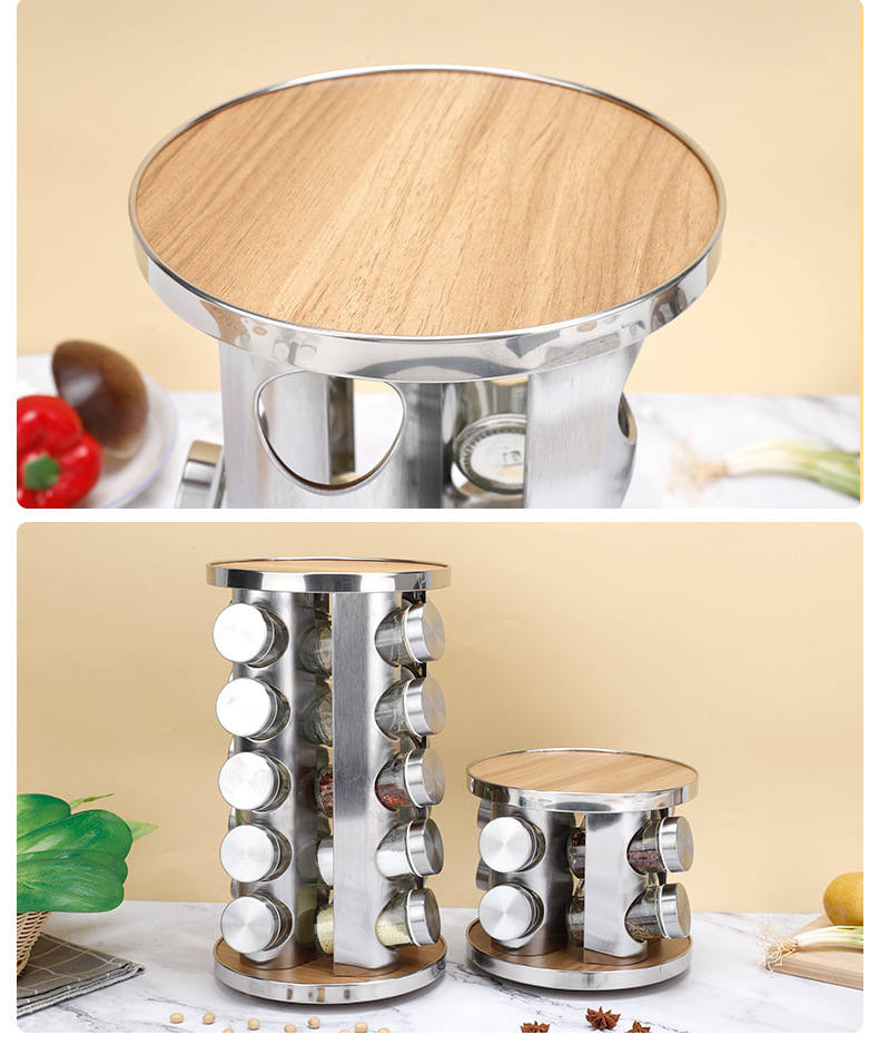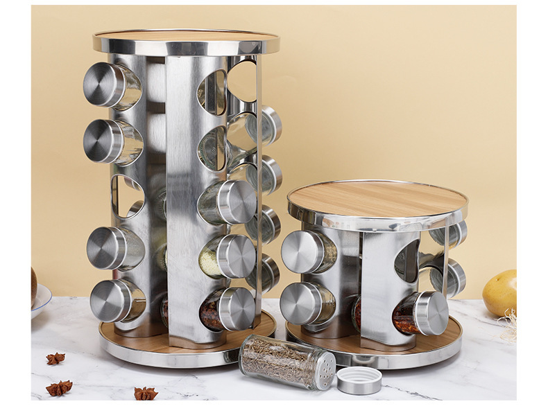 Nuevos estantes de botellas de condimento giratorias de cocina estantes de especias multifuncionales estantes de almacenamiento de cocina de acero inoxidable poroso al por mayor