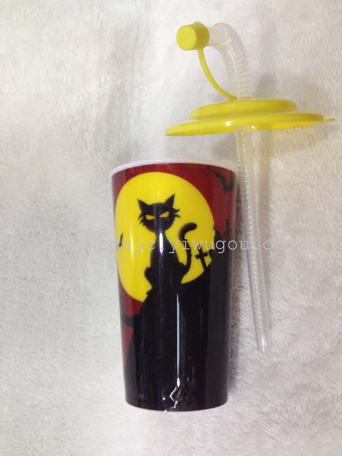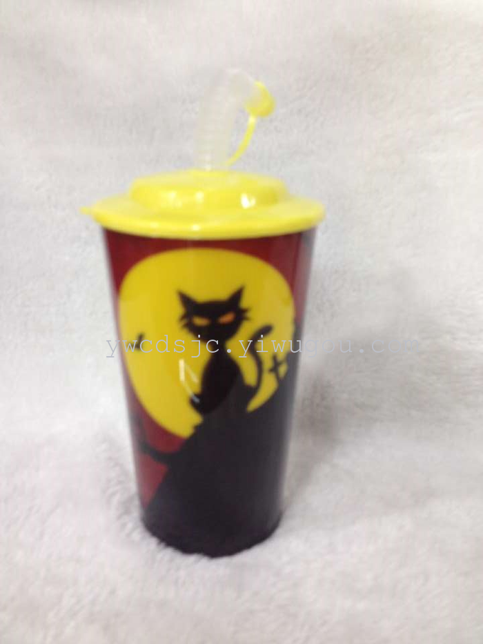 Vasos de plástico de una sola planta con tapa, vasos de agua para estudiantes, vasos de bebidas para halloween, vasos de necesidades diarias