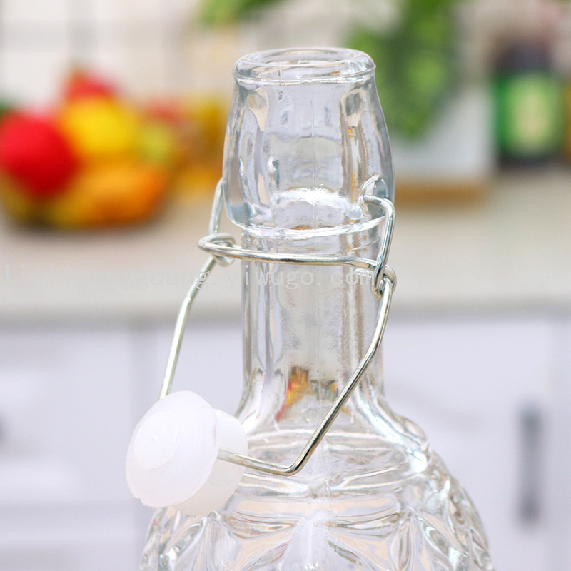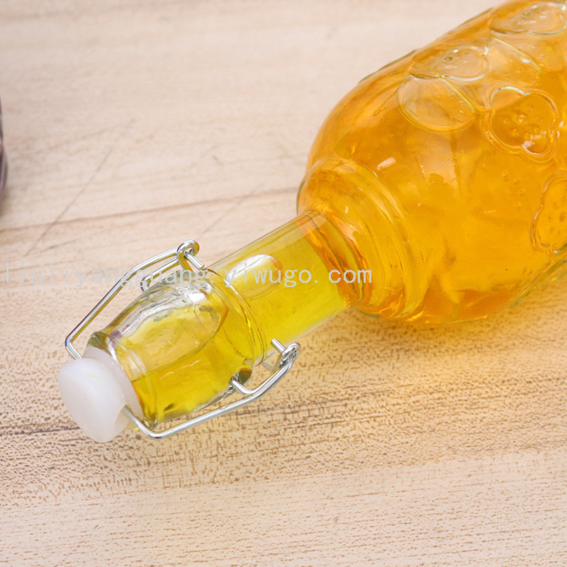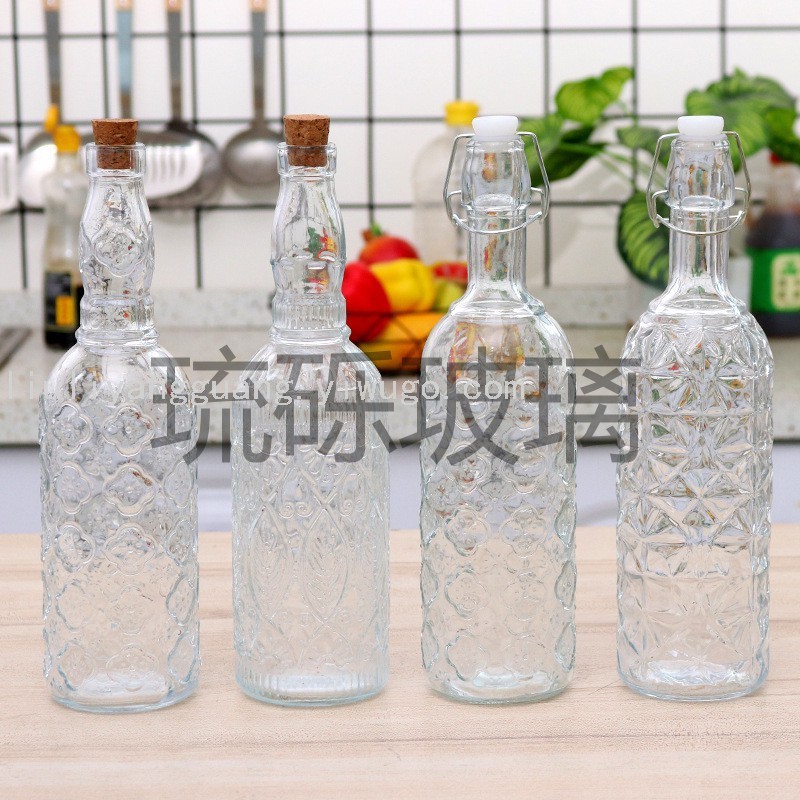 Nueva botella de bebida de vidrio con tapa de bayoneta sellada con tapón de madera de cocina, botella de salsa y vinagre