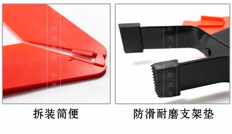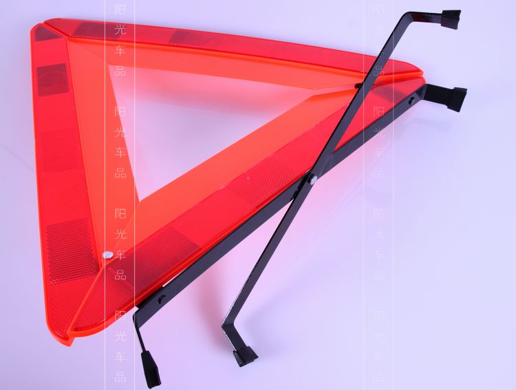 2、边长大三角型,带反光材料,绝对够醒目,牢固的折叠式金属底座支架,可平整贴合路面,稳定性好。