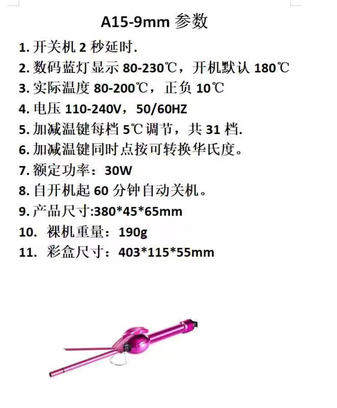 Barra de pelo rizado de ajuste de temperatura directo y digital