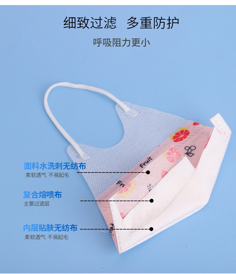 Máscaras desechables impresas tridimensionales para niños anti - gotas y anti - polvo 10 / paquete de máscaras para niños