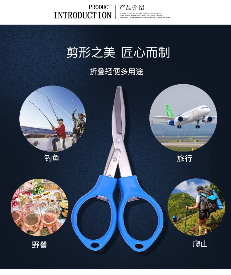 Tijeras plegables de hilo de pescado, aparejos de pesca retráctiles de acero inoxidable, tijeras de 8 caracteres para facilitar el transporte de tijeras de pesca de viaje
