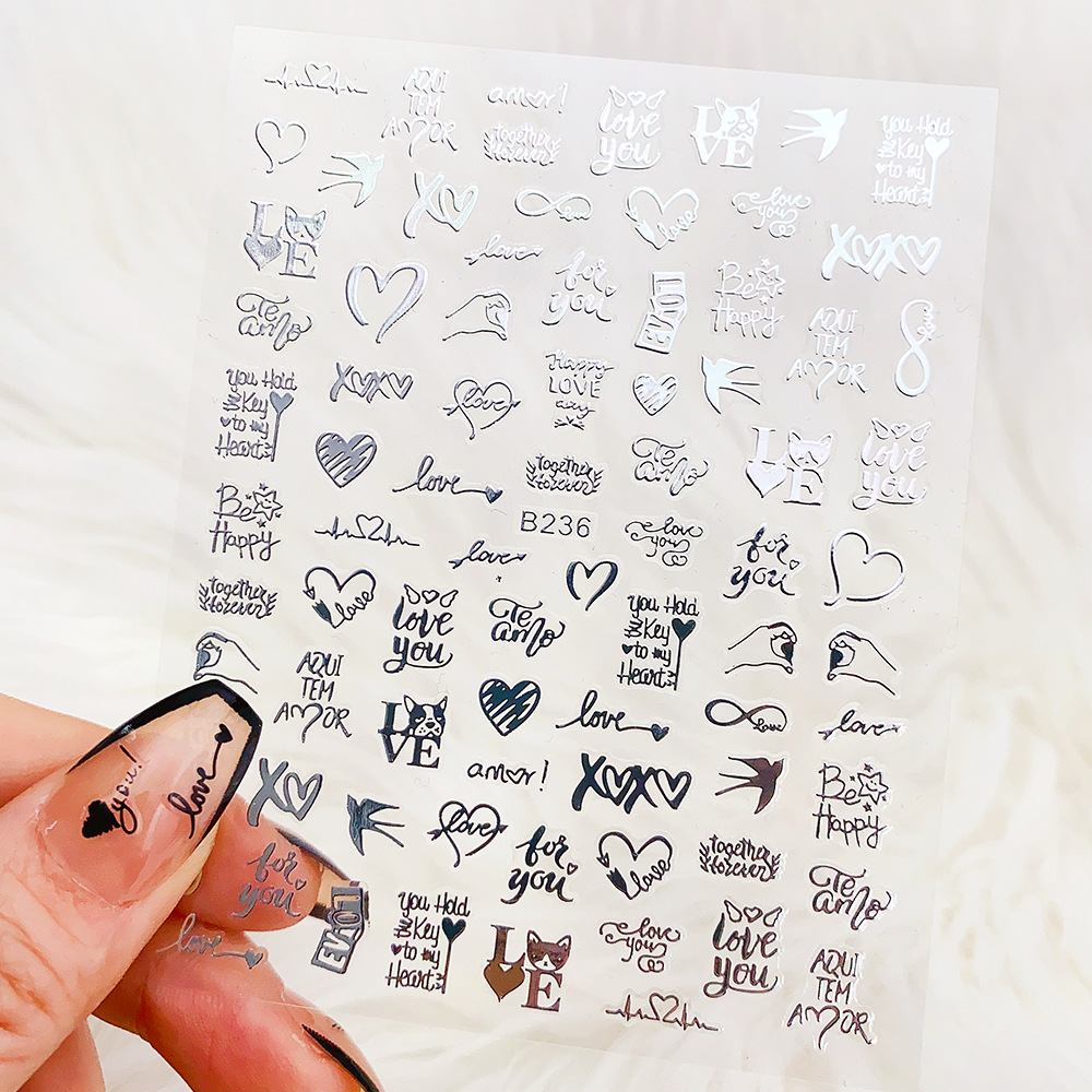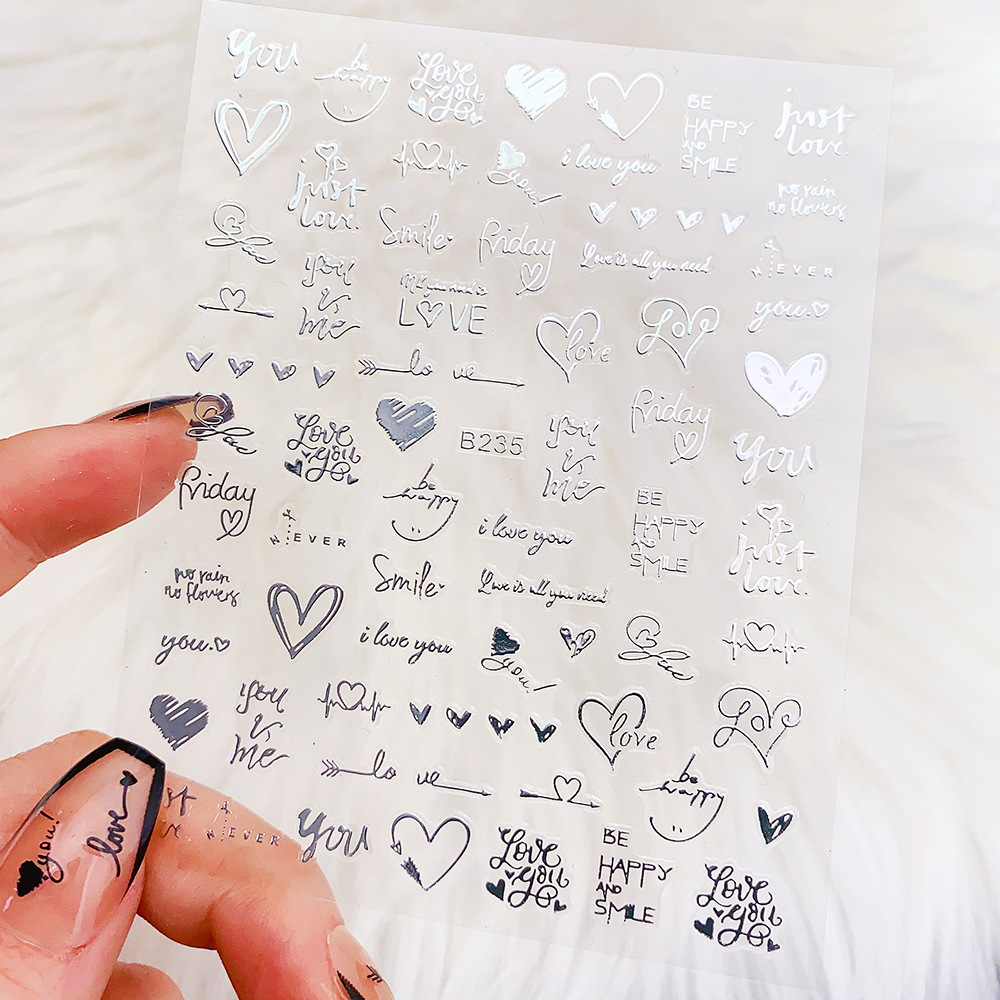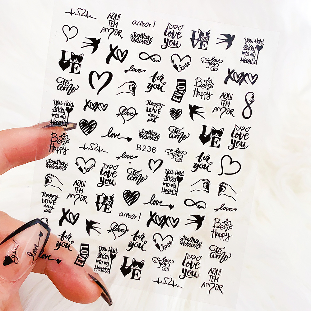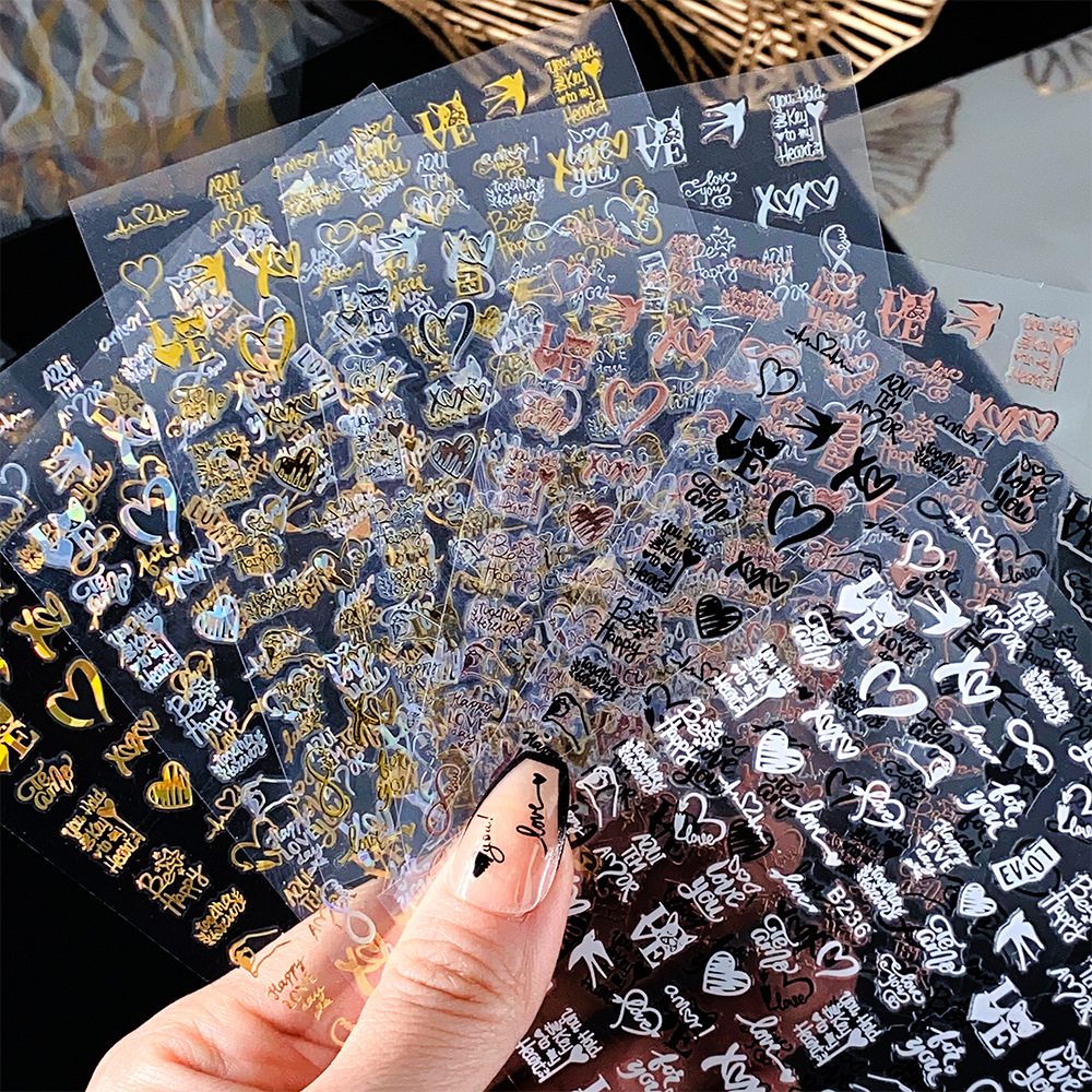 Comercio Exterior caliente pegatinas de manicura con letras love en forma de corazón INS viento líneas sólidas pegatinas decorativas de uñas