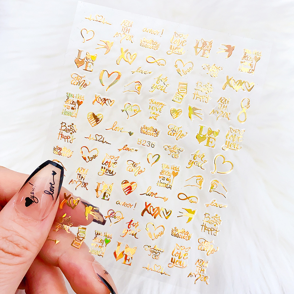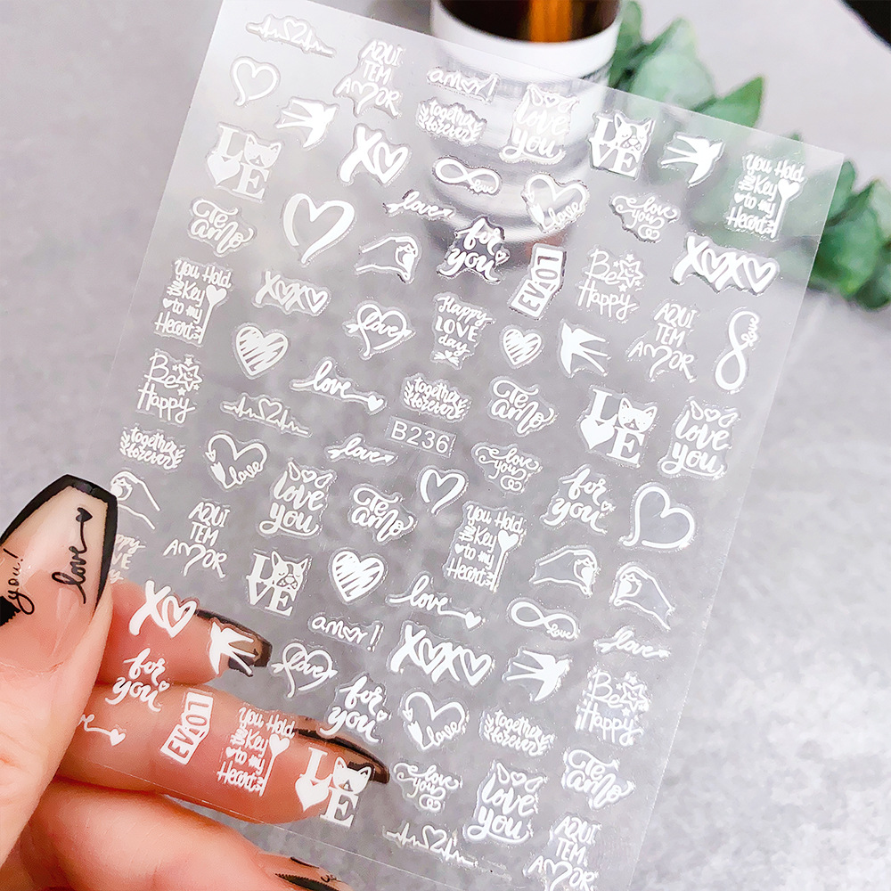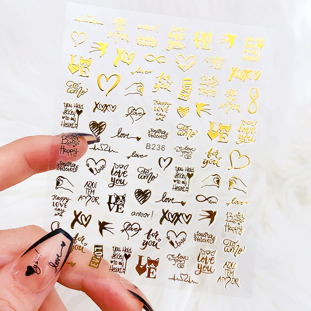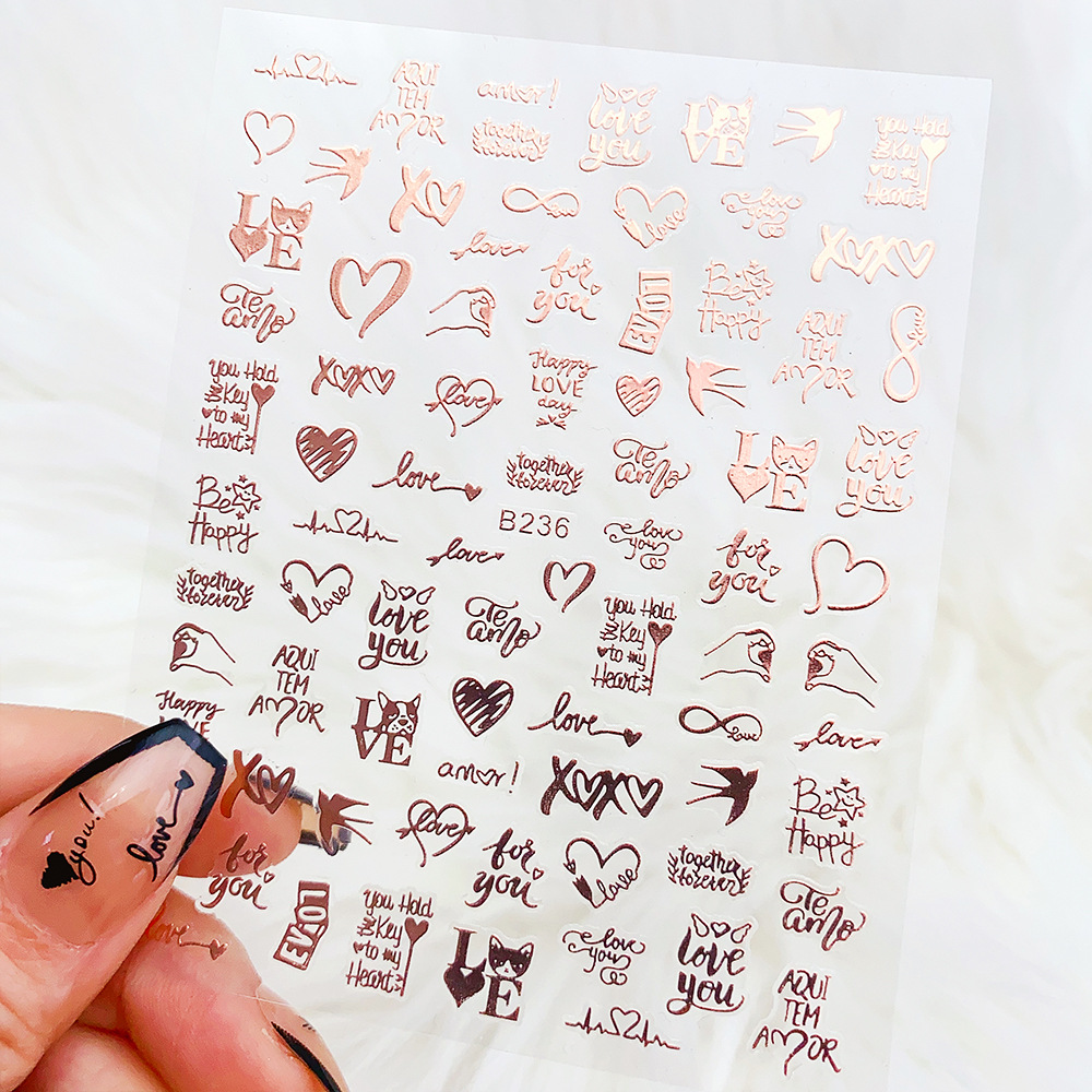 Comercio Exterior caliente pegatinas de manicura con letras love en forma de corazón INS viento líneas sólidas pegatinas decorativas de uñas