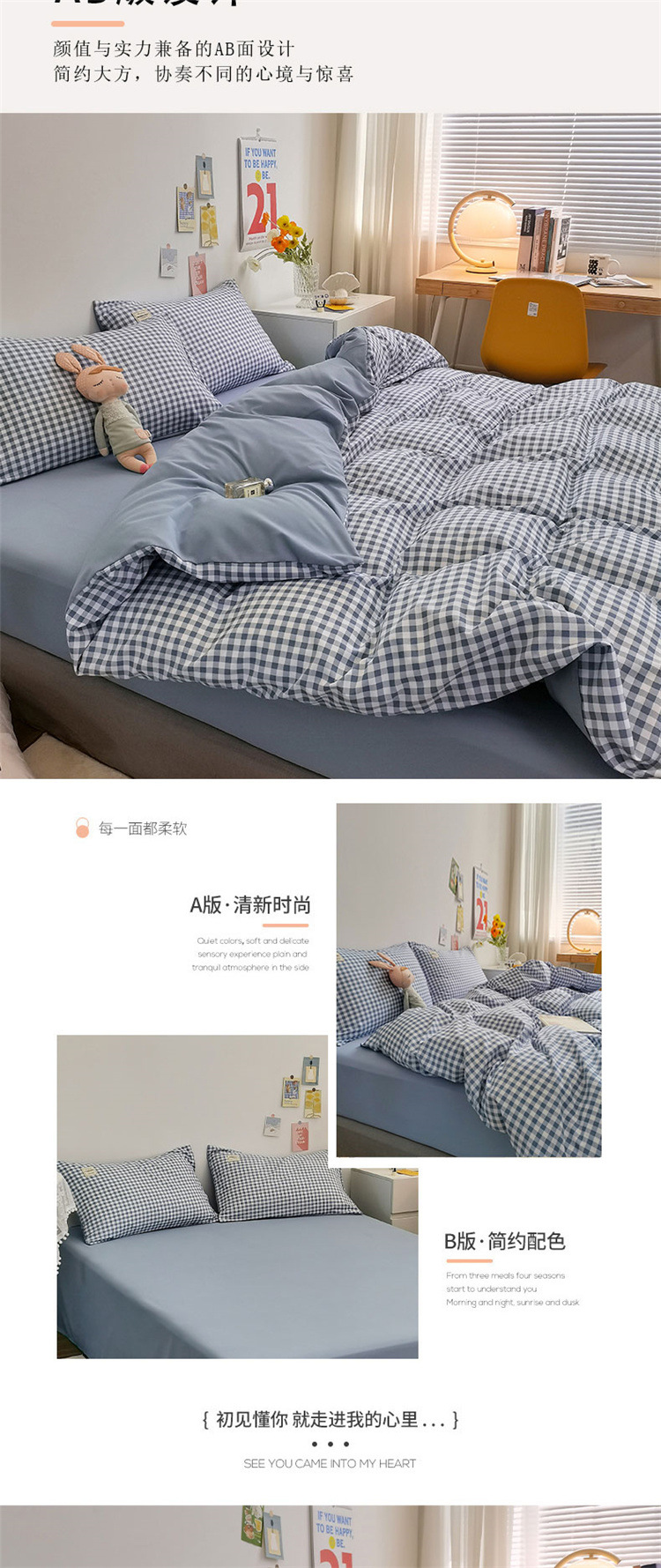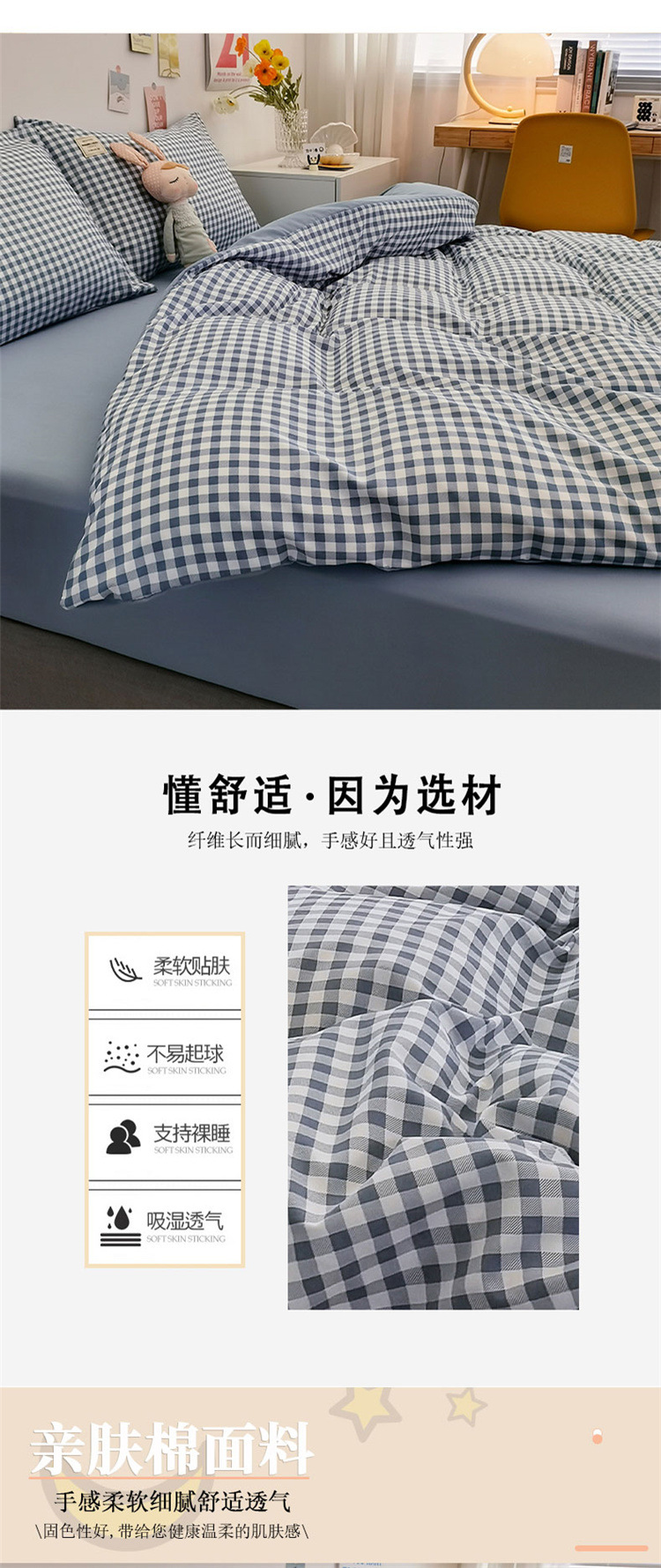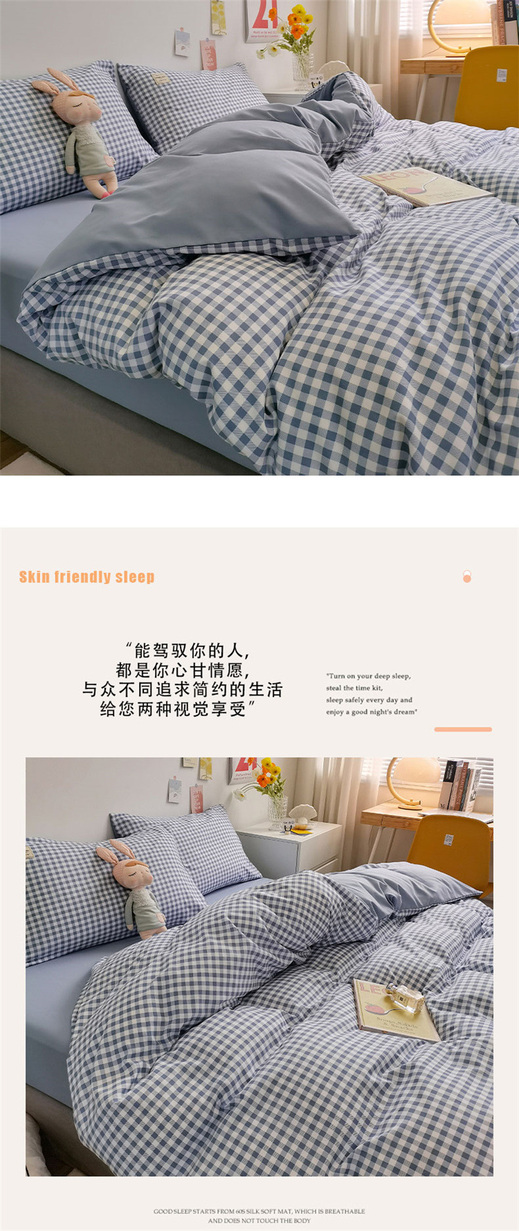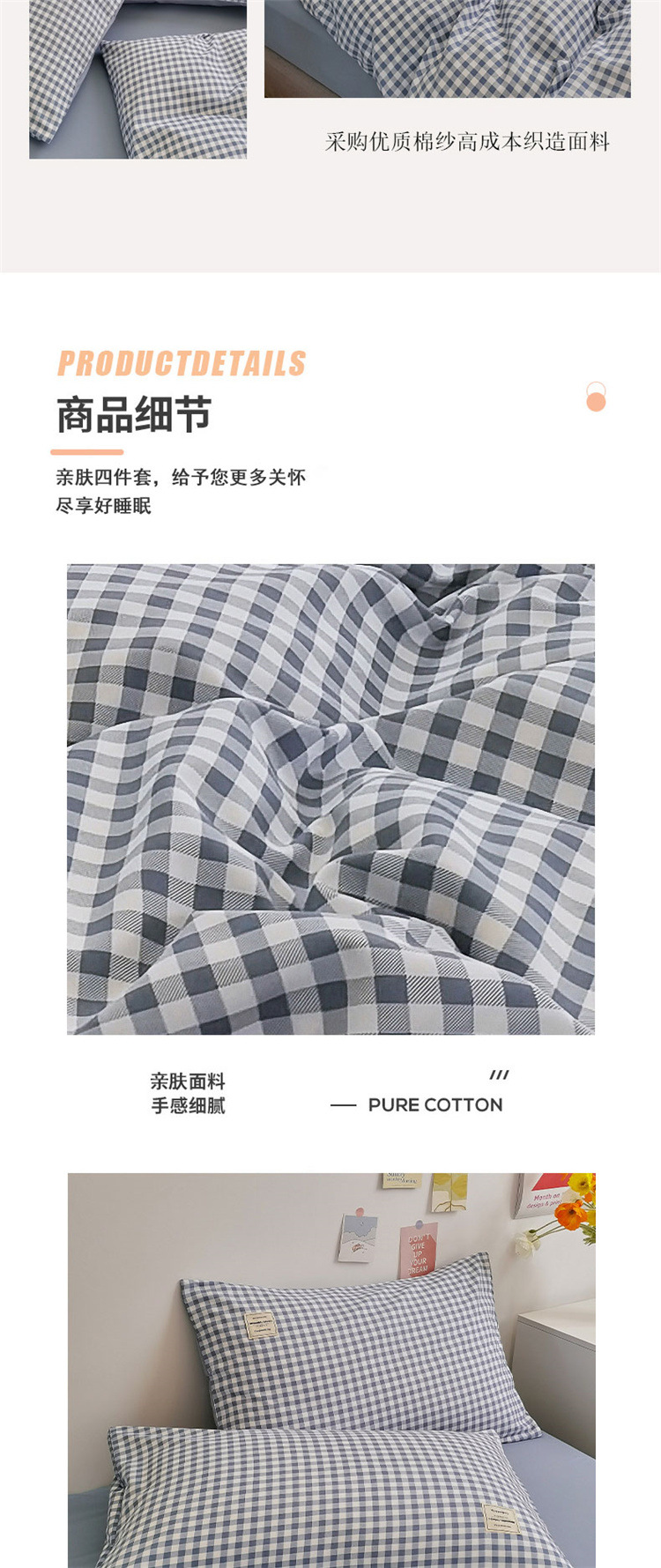 Liangpin japonés cuatro juegos de hojas de cama, celosía, ropa de cama de algodón lavada con agua, sin impresión, sábanas y edredones del dormitorio estudiantil