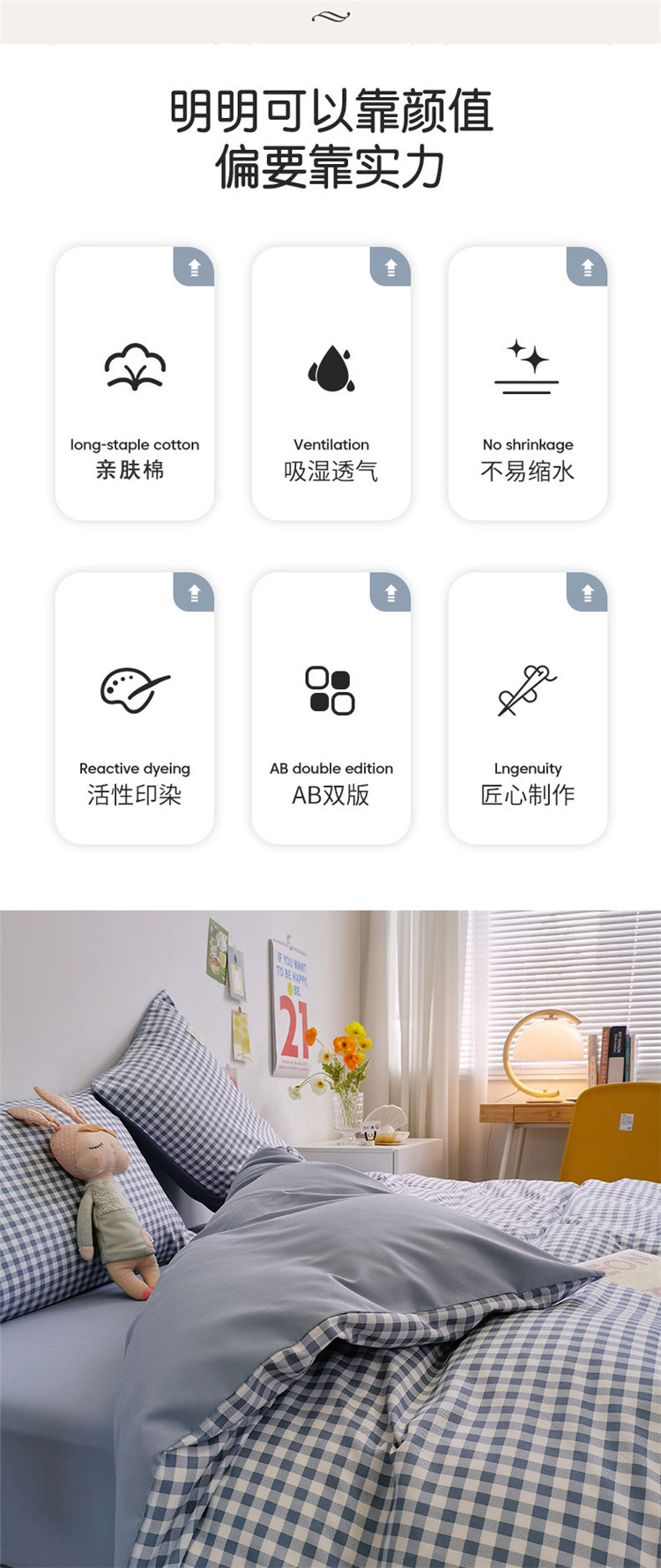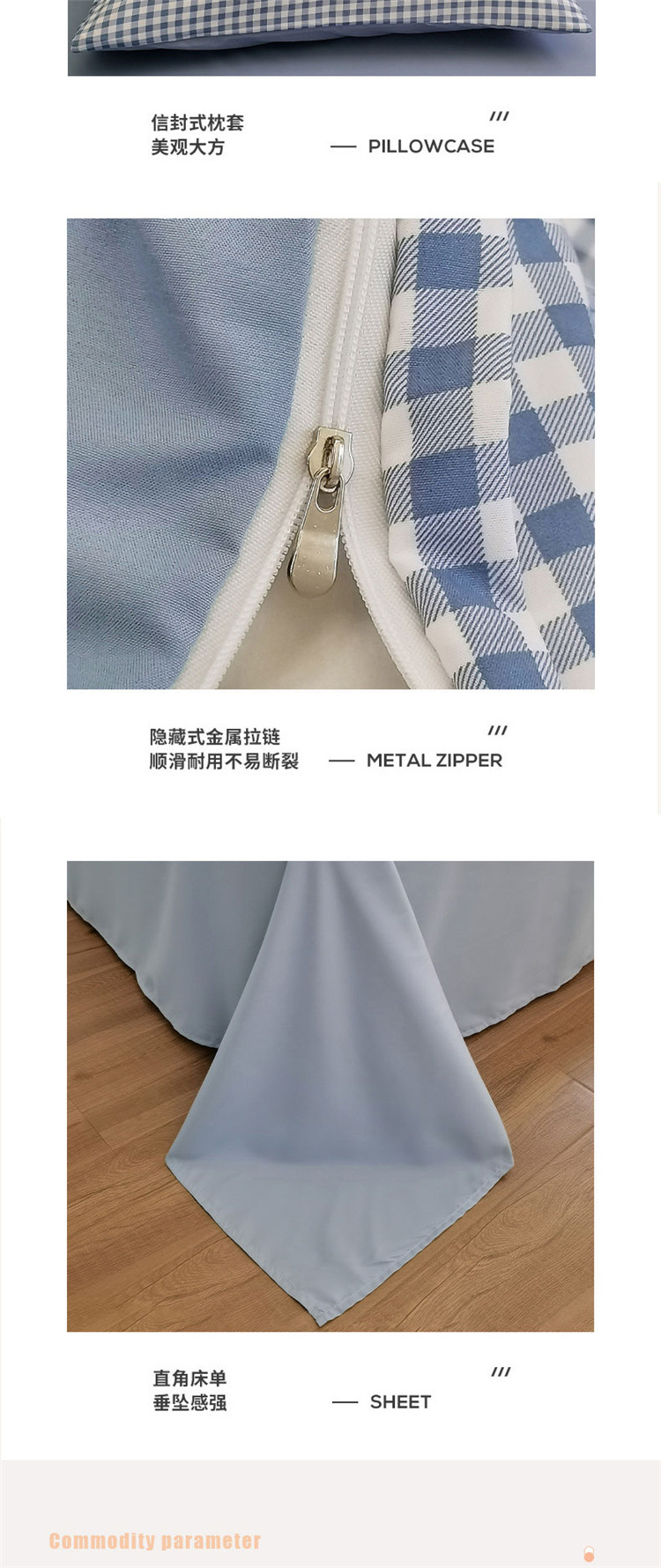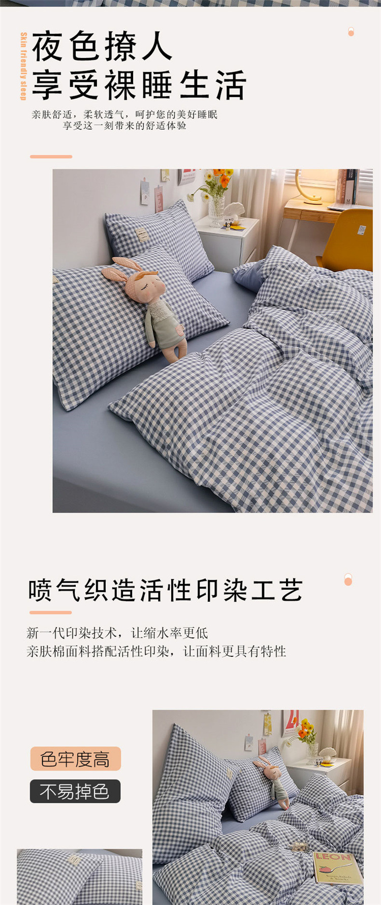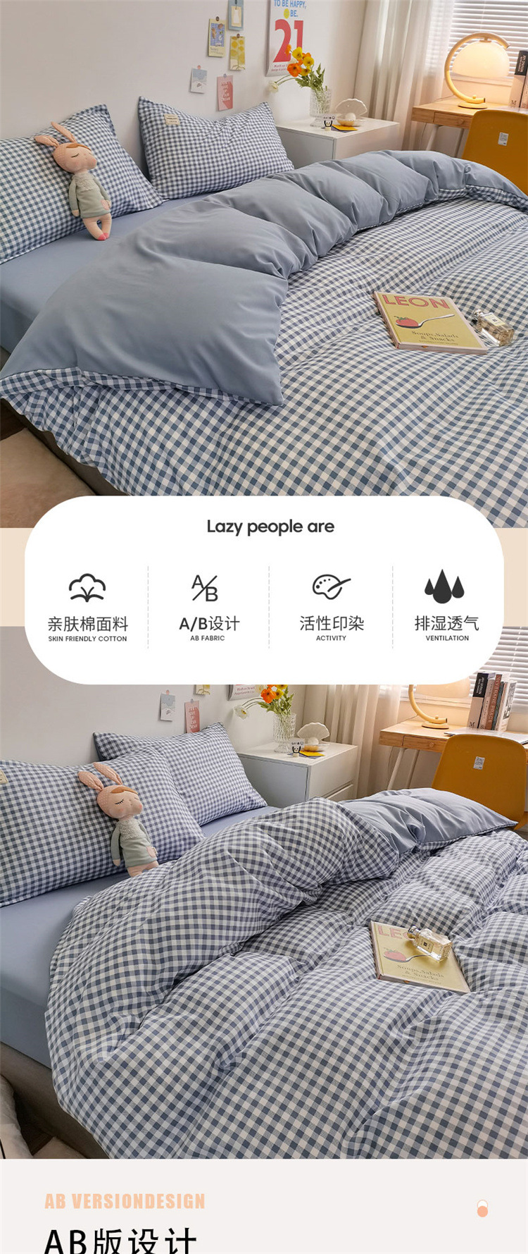 Liangpin japonés cuatro juegos de hojas de cama, celosía, ropa de cama de algodón lavada con agua, sin impresión, sábanas y edredones del dormitorio estudiantil