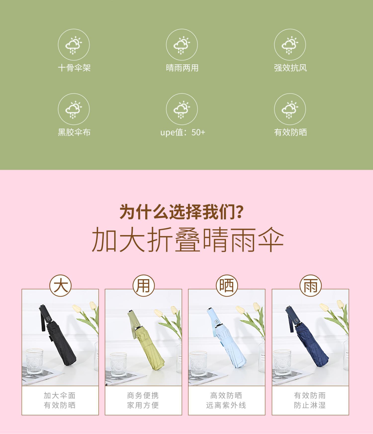 10 huesos y dos huesos engrosan automáticamente el pegamento negro, el protector solar, el paraguas de 12 huesos, el paraguas de 8 huesos y el paraguas de sol grande imitan el Paraíso.