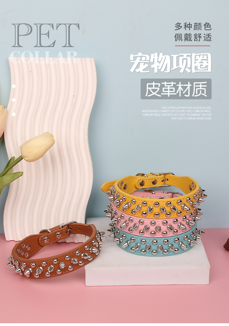 Xindu xiaodudu xdl - 001 collar de perro y gato, remache, cuello de cuero, collar de perro mascota multicolor