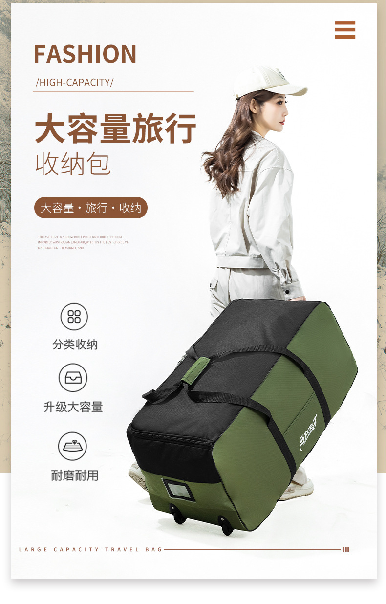 24 nuevas bolsas de almacenamiento de equipaje de mudanza bolsas de almacenamiento de ropa plegables bolsas de almacenamiento de ropa portátiles multifuncionales bolsas de viaje de ruedas de gran capacidad