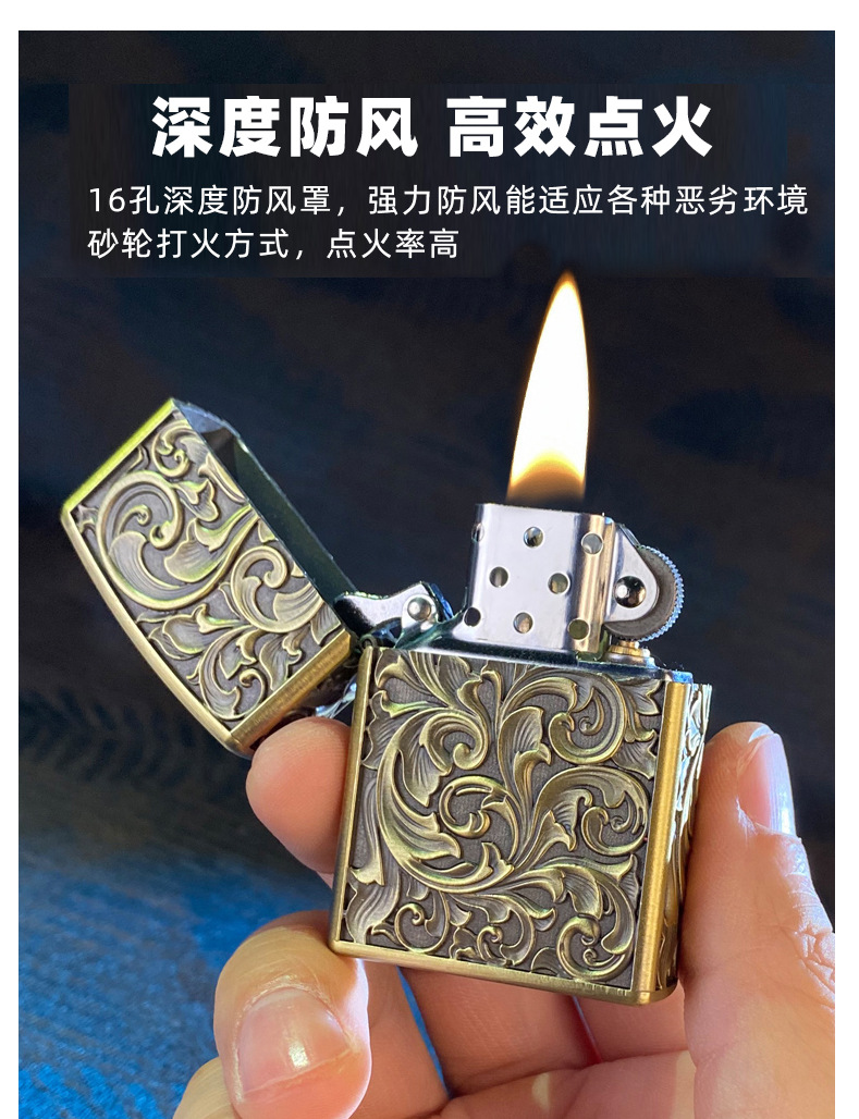 Encendedor de queroseno Tang Cao Pi Xiu Yu Hualong Teng Wanli tendencia mayorista personalidad encendedor de rueda de moler antiguo